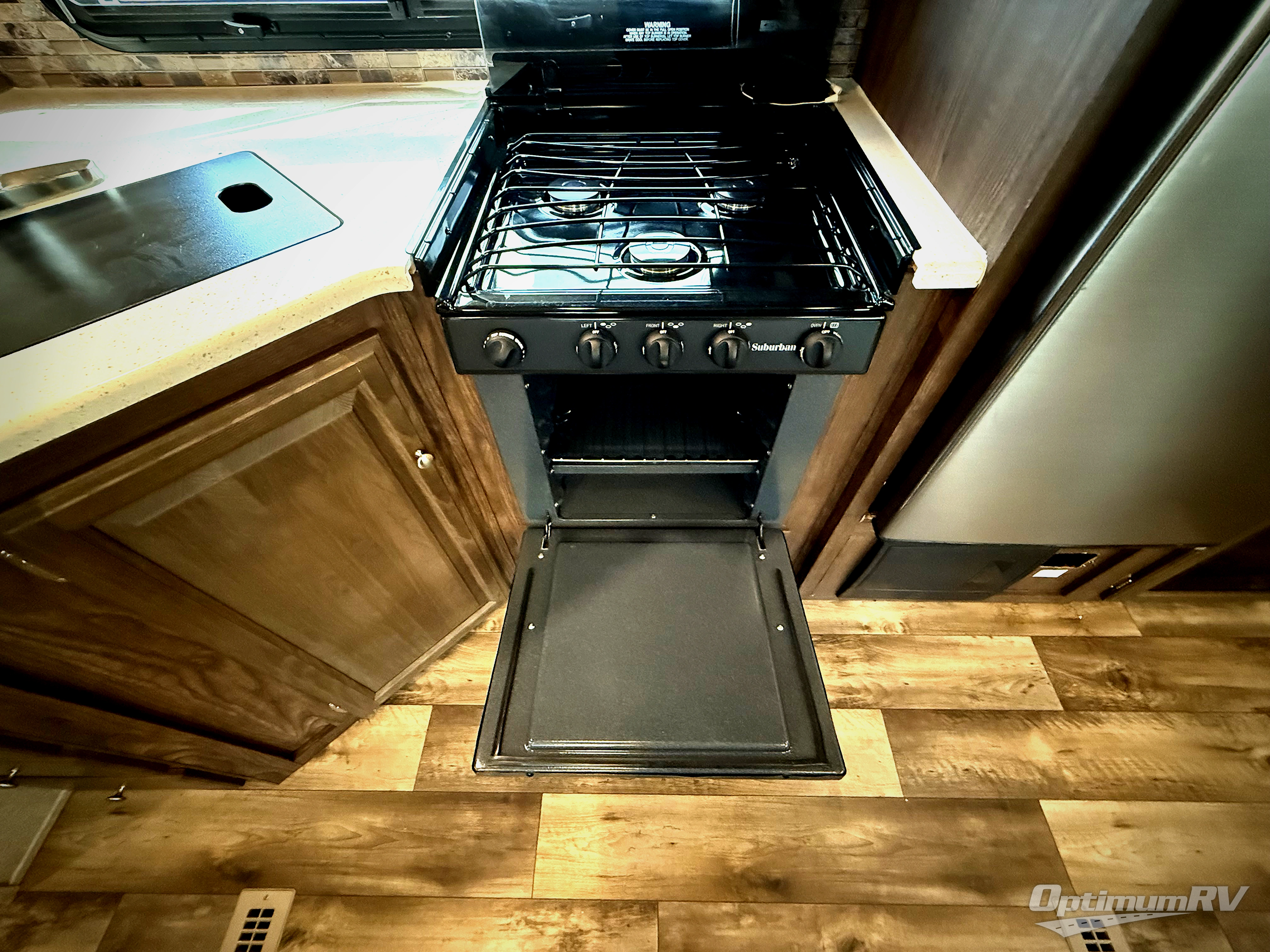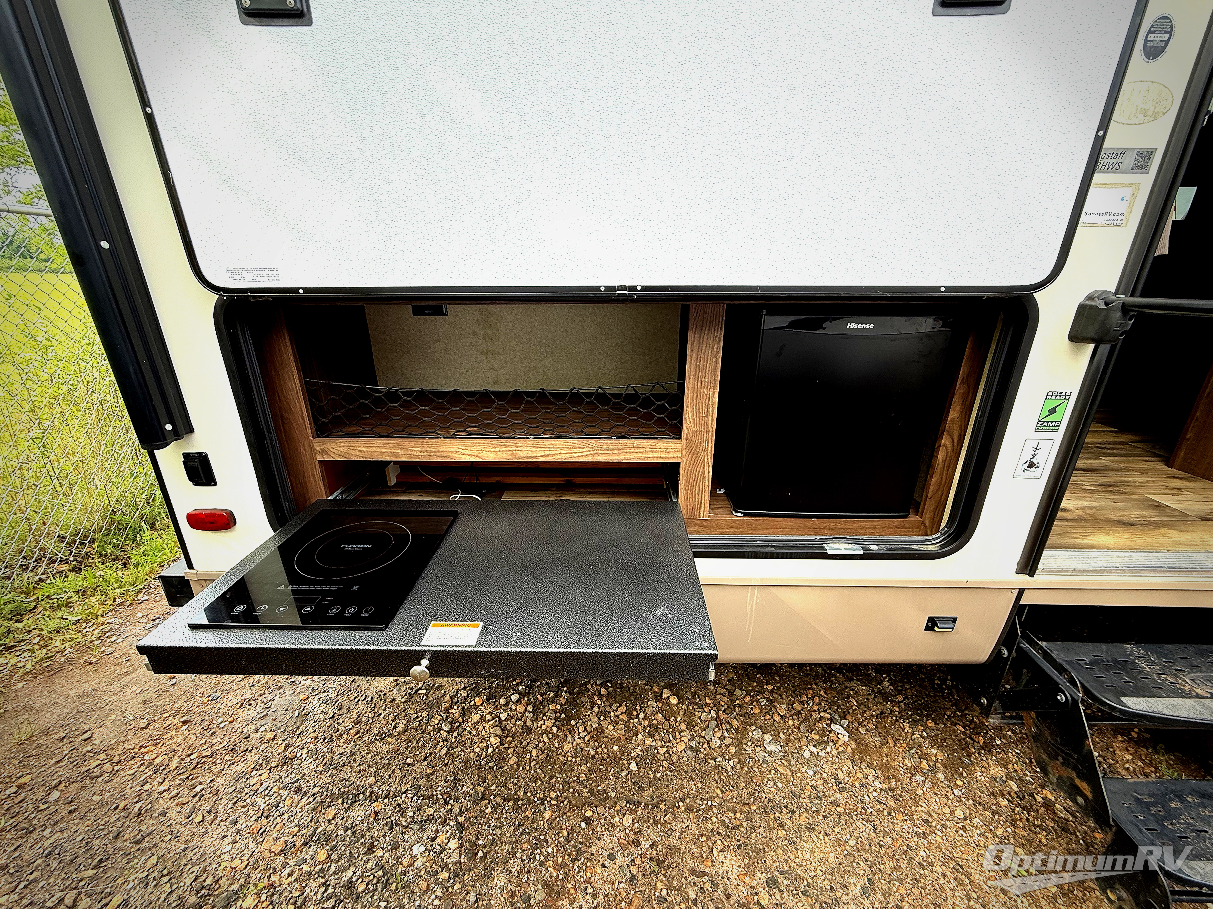 On the outside you will enjoy the pass-through storage in front for all of your extra camping gear, a 21' awning for a bit of outdoor living space, and a gas grill along with a pull-out cook-top and refrigerator.