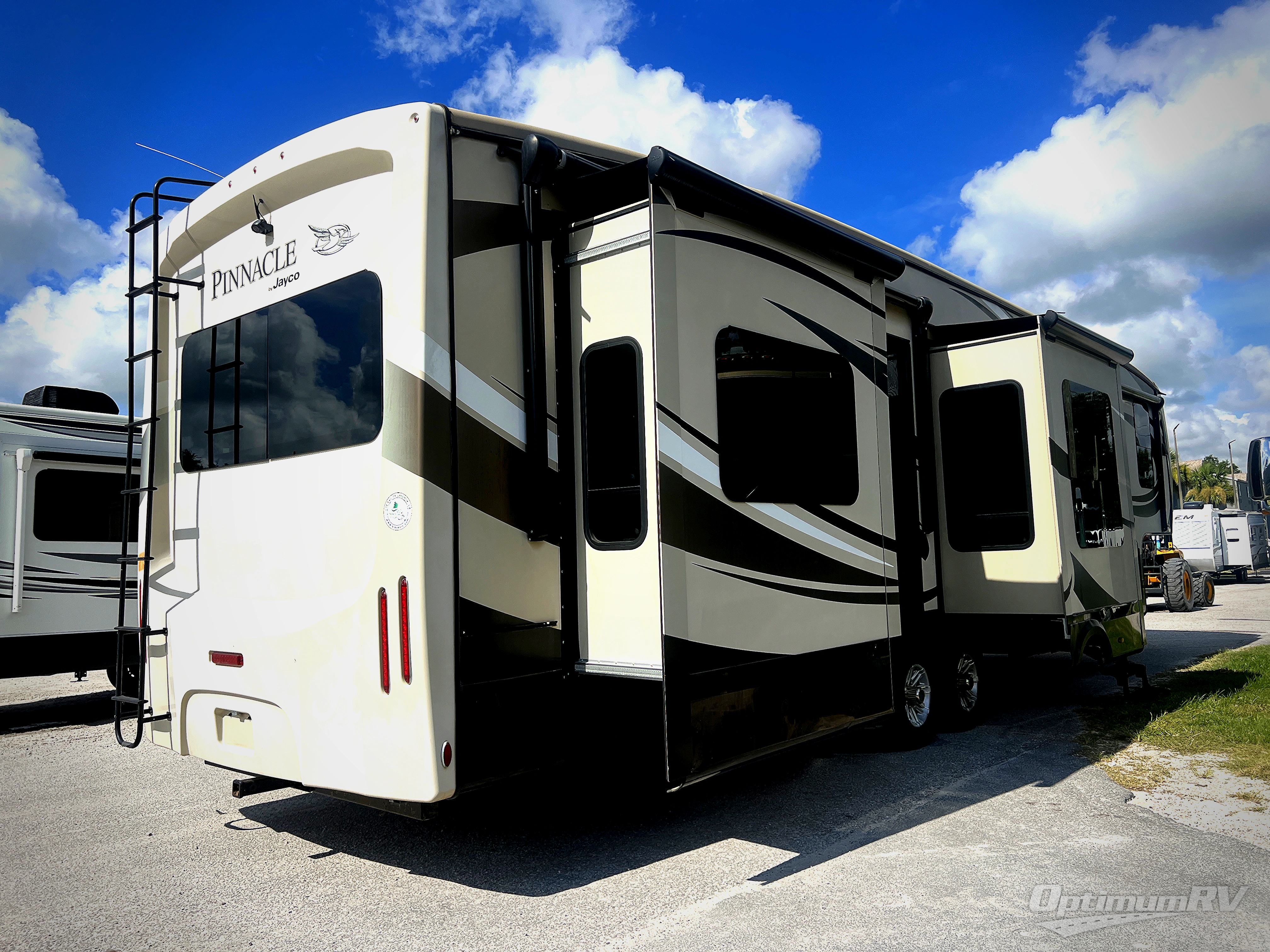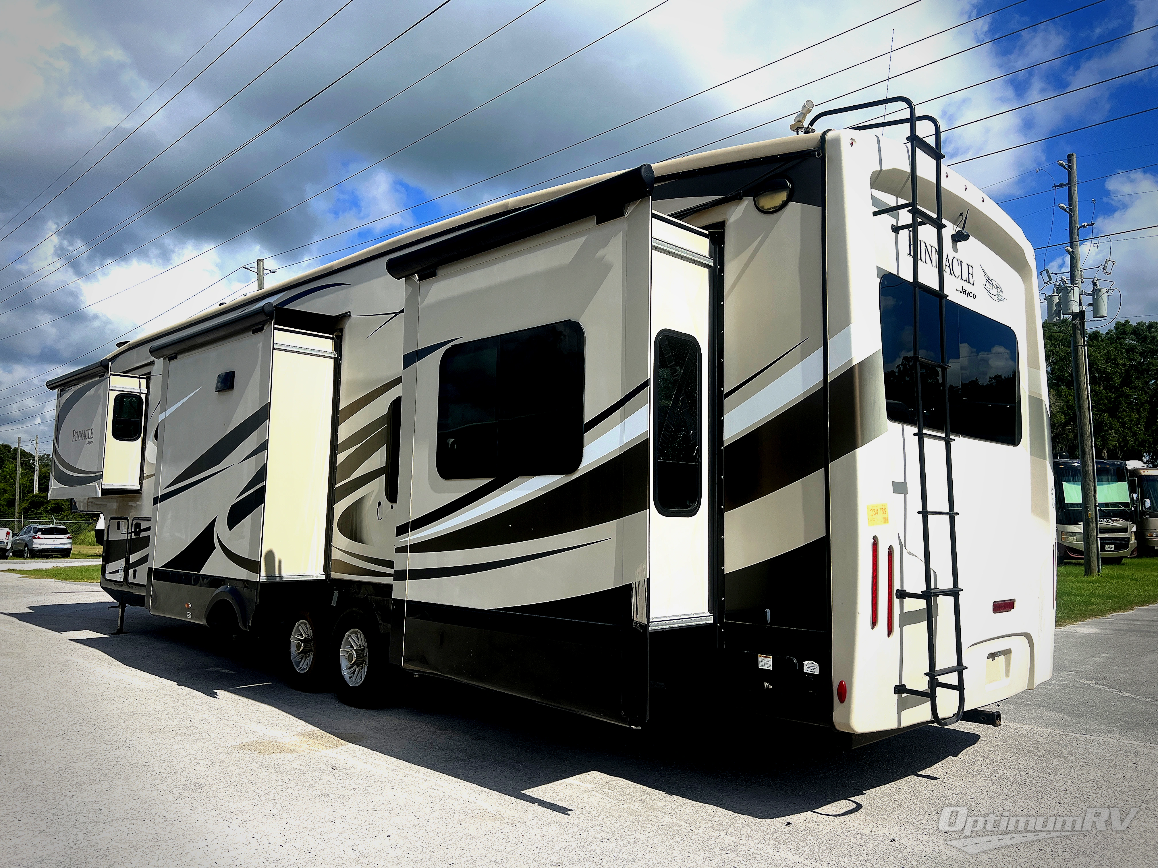 This Jayco Pinnacle 38REFS will be the party spot in the campground. You will certainly enjoy all of the space inside thanks to FIVE slide outs! This unit features a rear entertainment layout, dual entry doors, a fireplace, and residential refrigerator, and that is just getting started! There are many more features and options to impress any avid traveler!