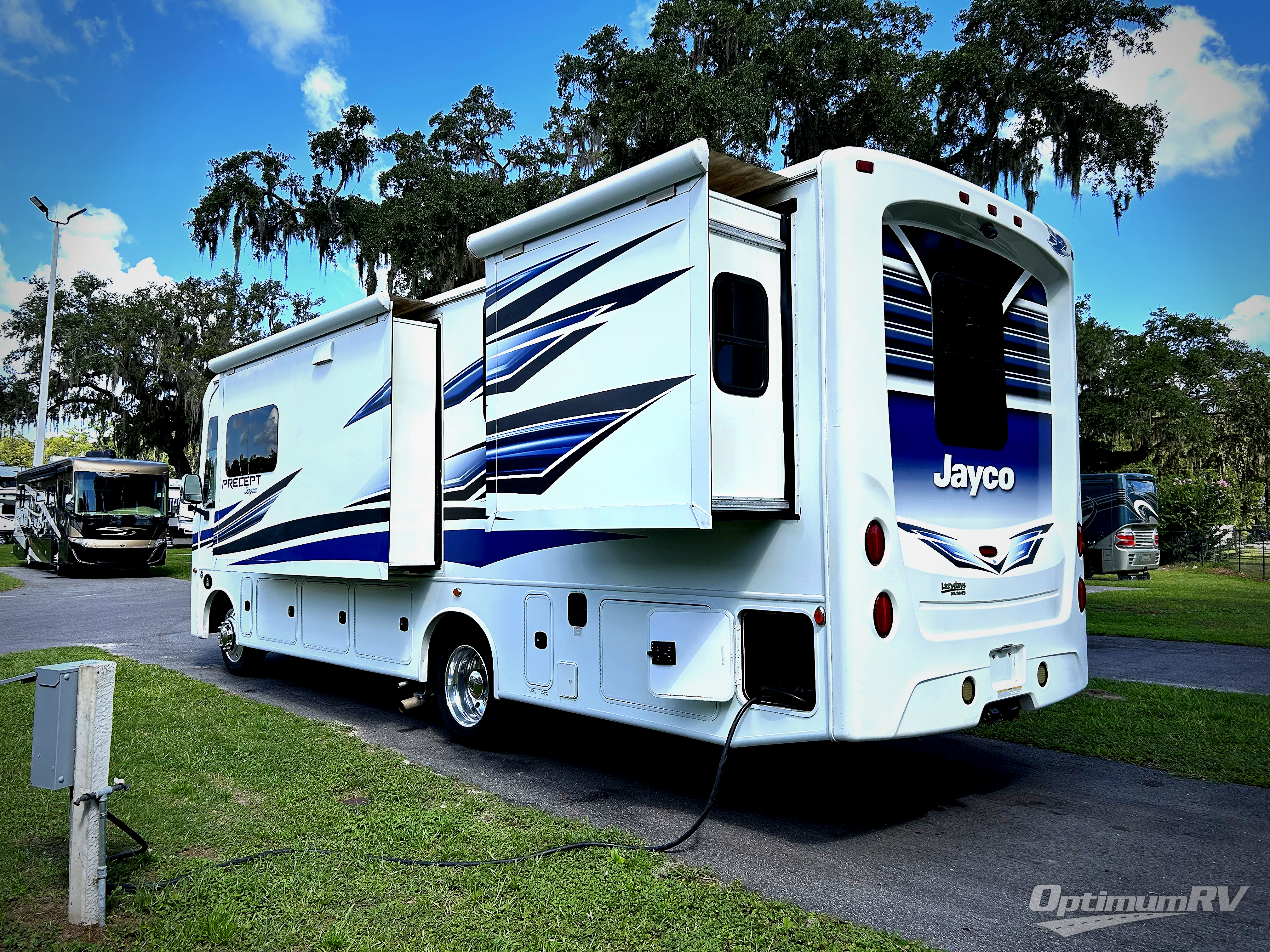 Let this Precept 31UL class A motor home by Jayco take you on your next cross-country adventure! This motor home has a rear bedroom, triple slide outs, and plenty of room for all of your belongings!