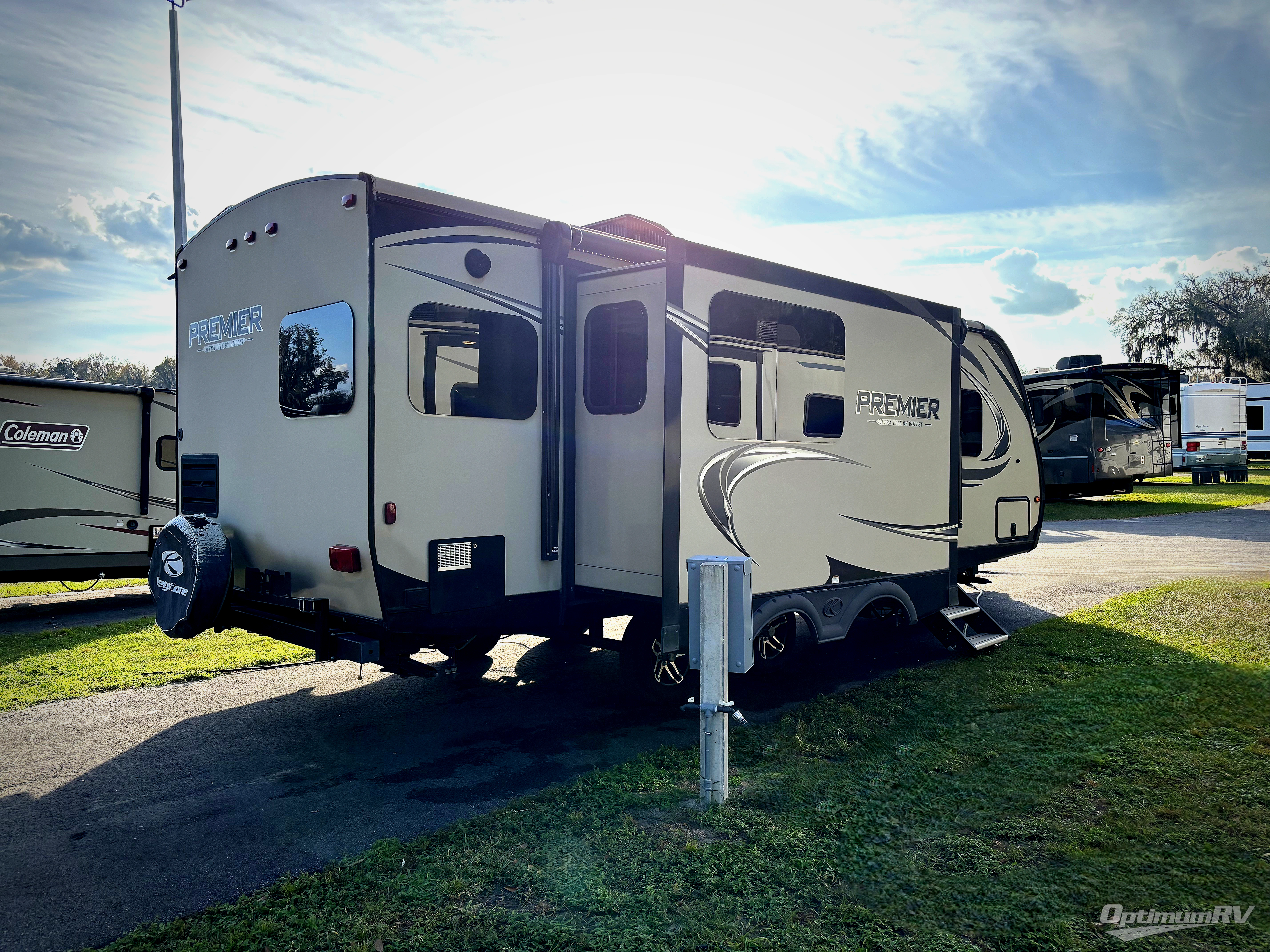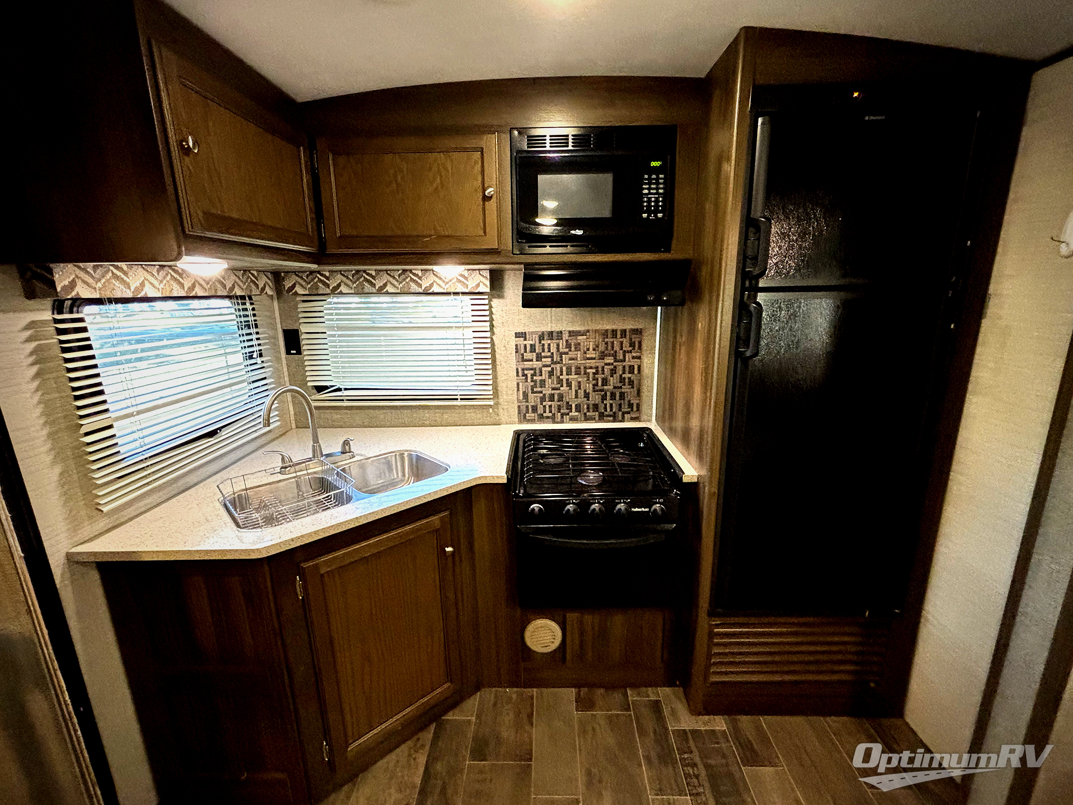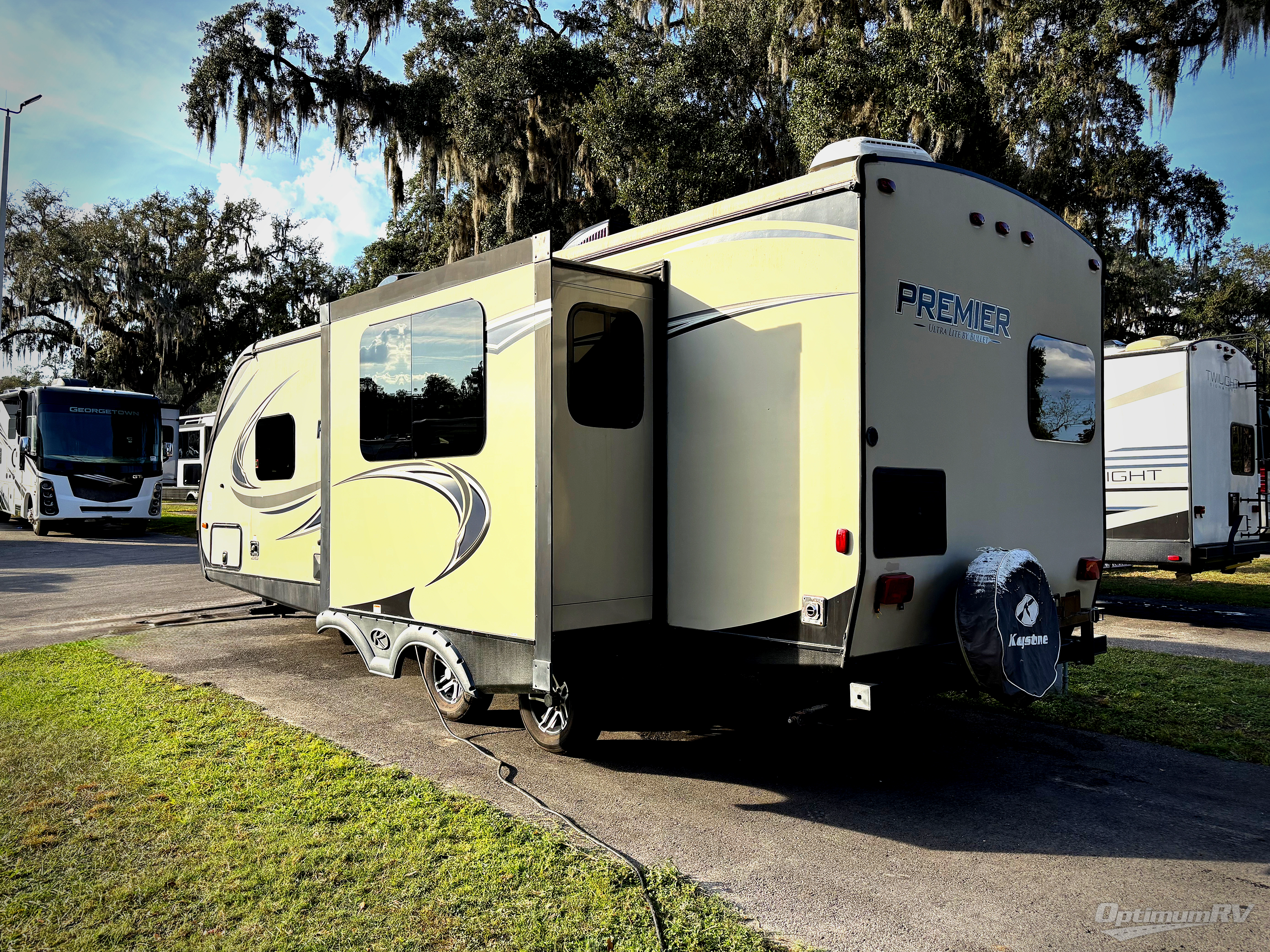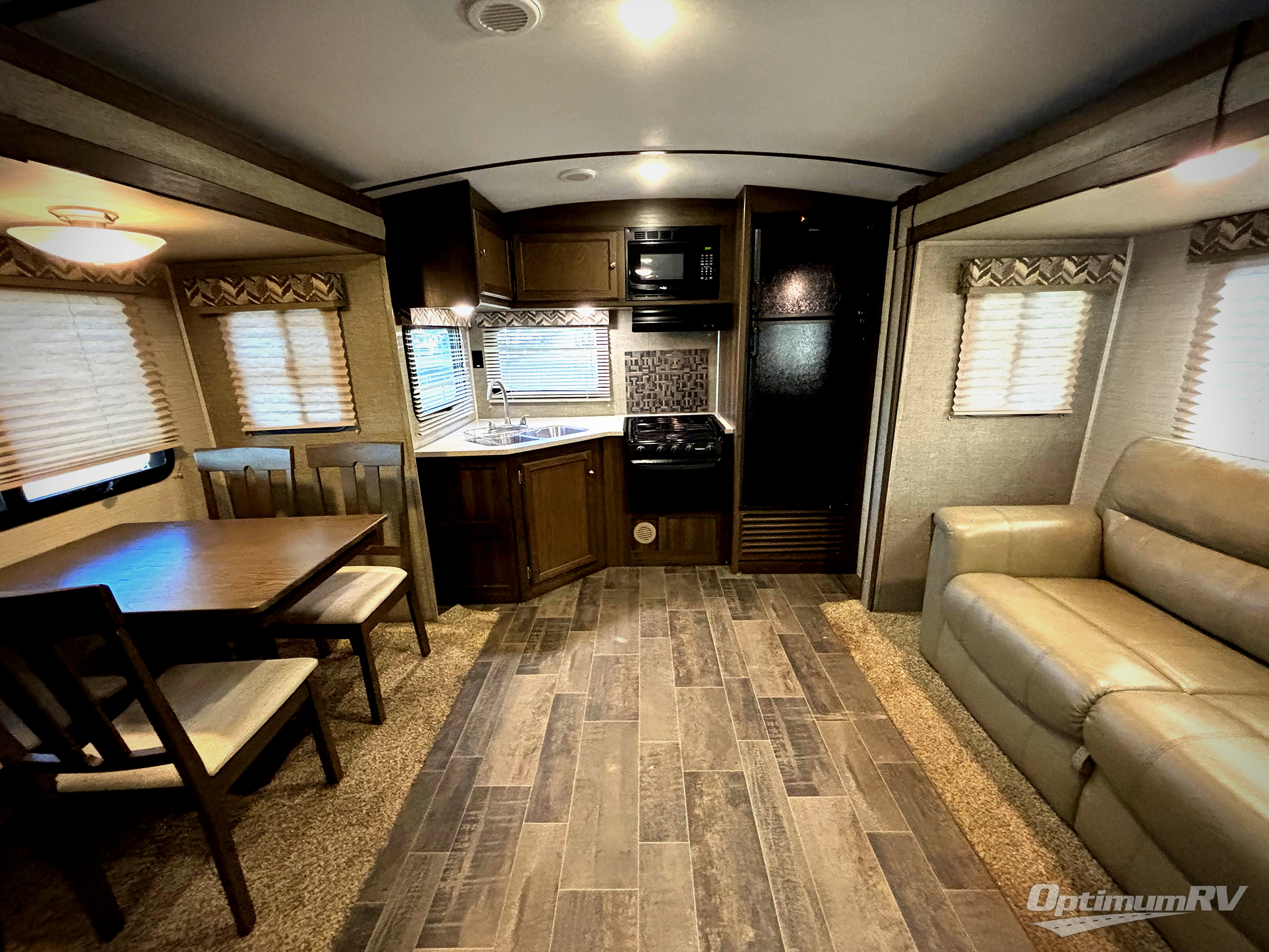 If you are looking for a rear kitchen layout, dual slides in the main living space, and a free standing dinette, then take a look inside this Keystone Premier Ultra Lite 24RKPR travel trailer.