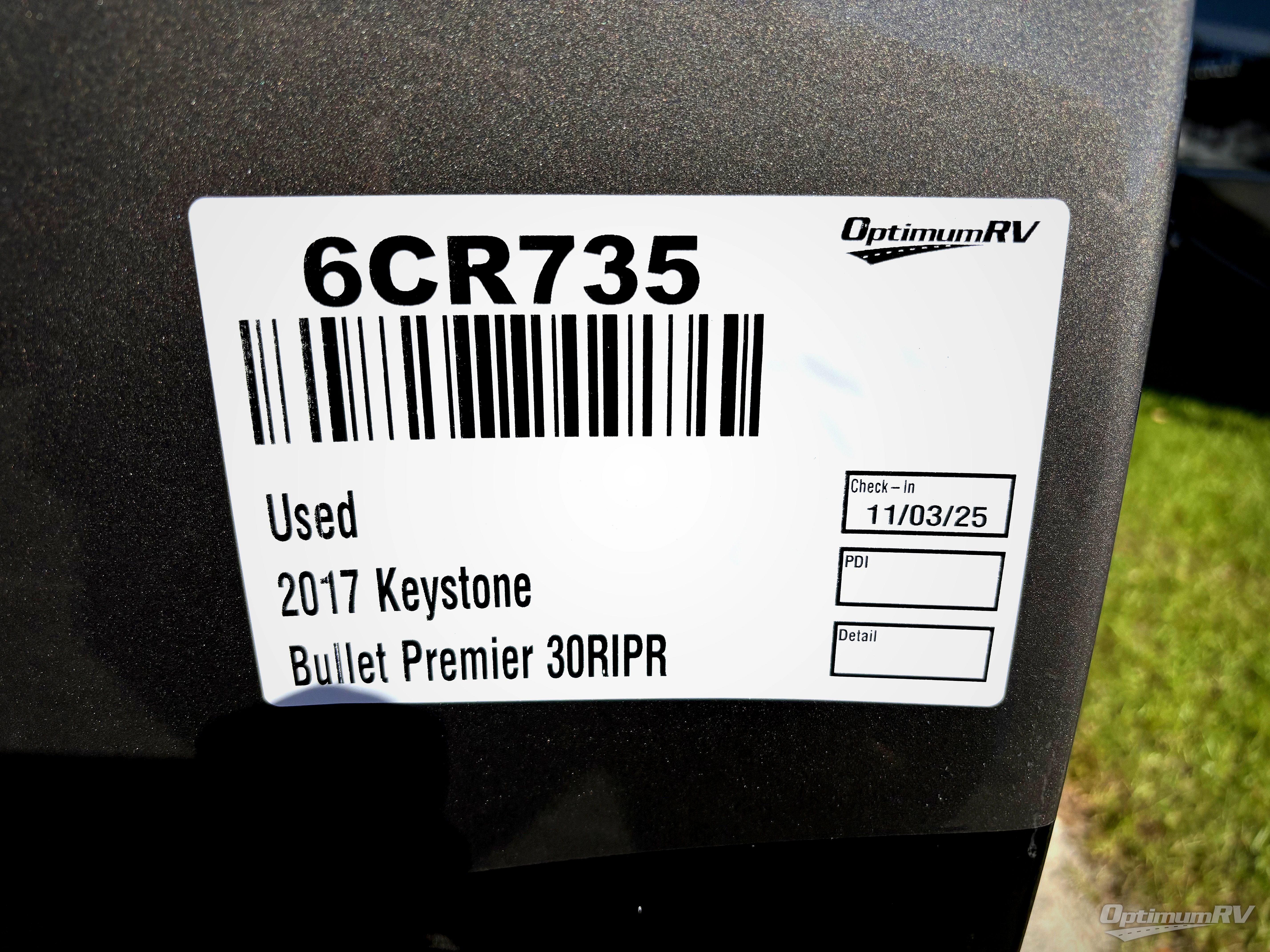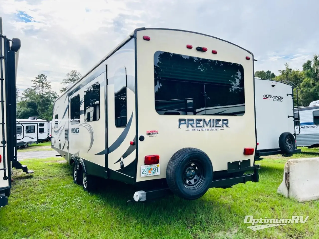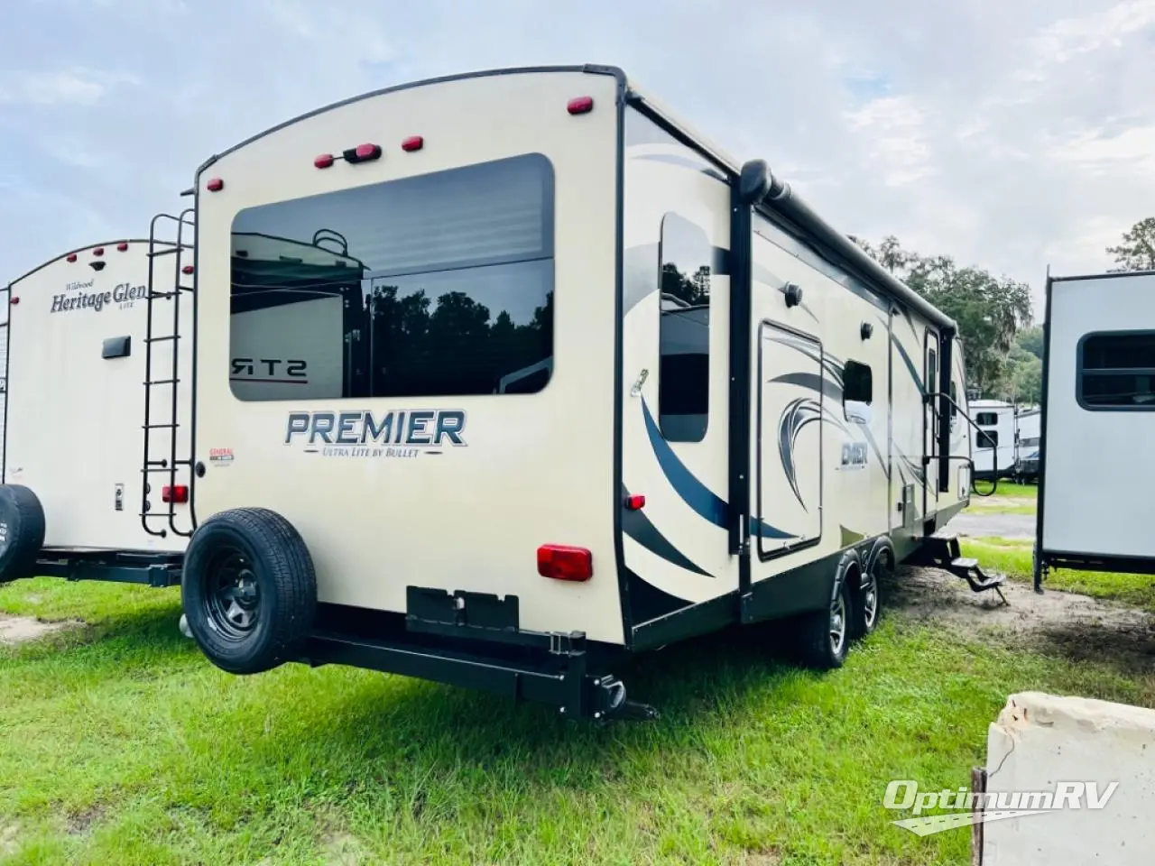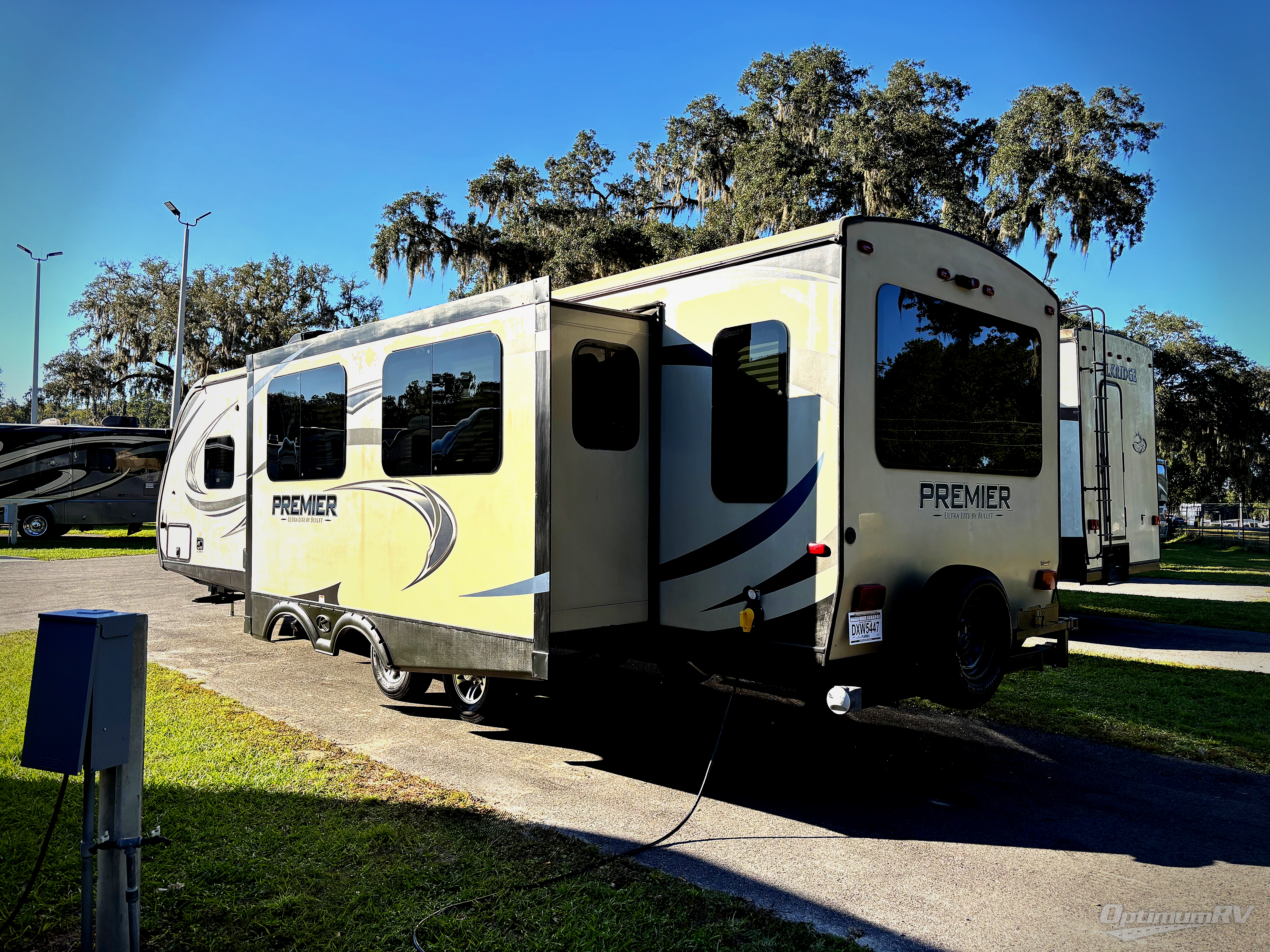Step inside this Premier Ultra Lite travel trailer 30RIPR by Keystone RV. It features a rear living layout, double slides, luxury cinema recliners, and a convenient kitchen island.