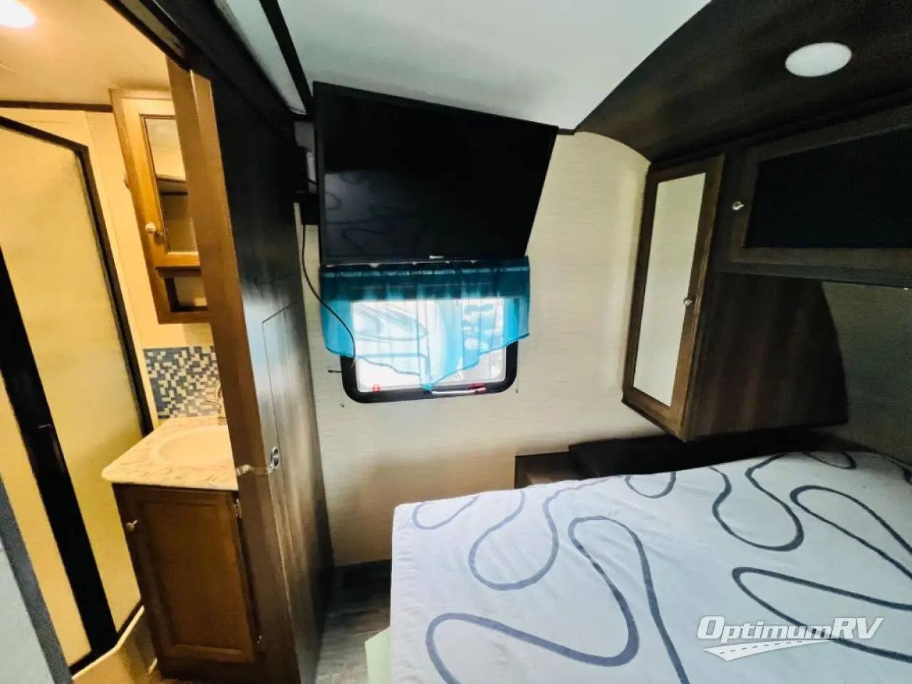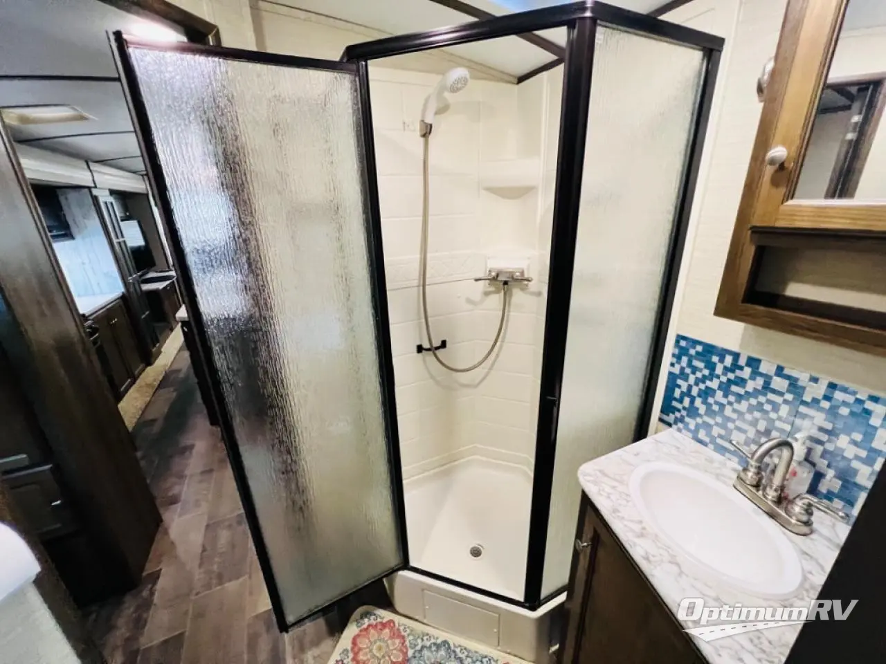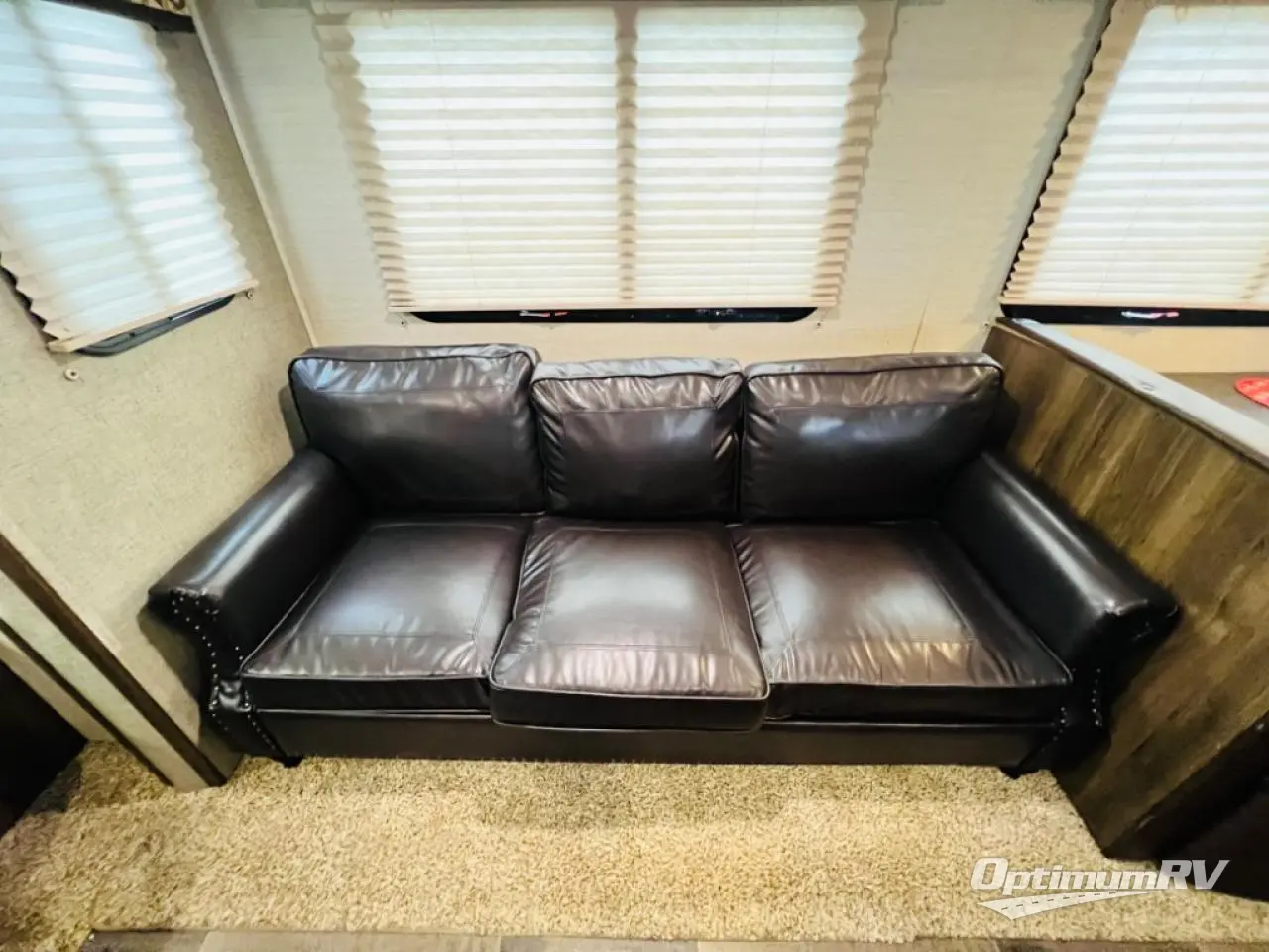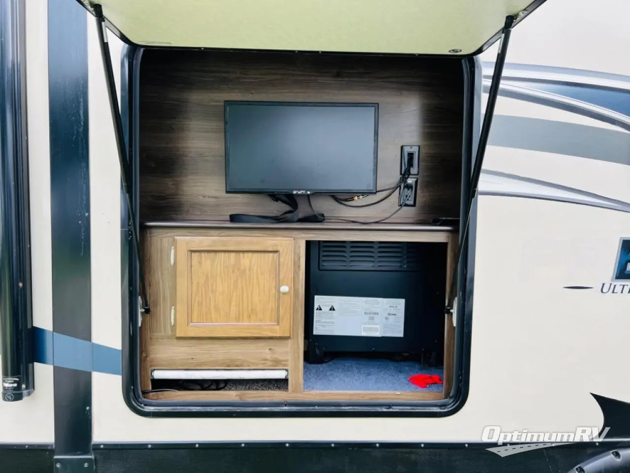 There is no lack of storage on the inside of this trailer, and the outside features a pass through compartment with access on either side, plus an outdoor kitchen, and so much more!