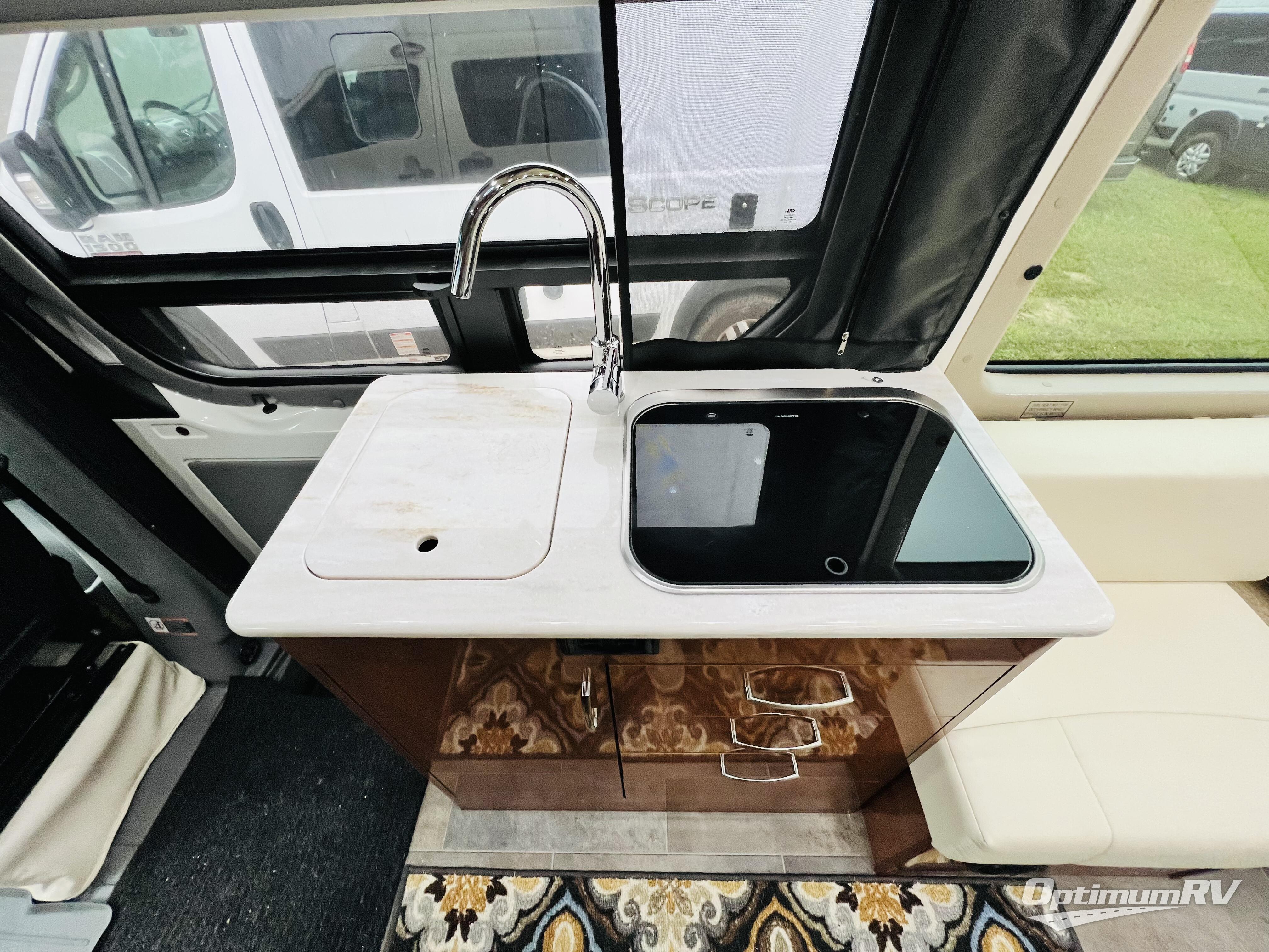 As you walk into this Ascent motor home by Pleasure-Way you will find a convenient way to travel. The kitchen area begins on the entry side offering a sink and two burner range. Across from the range is a microwave that is located above the refrigerator. You are able to cook up any type of meal while you are on vacation. There is a furnace below the refrigerator as well.