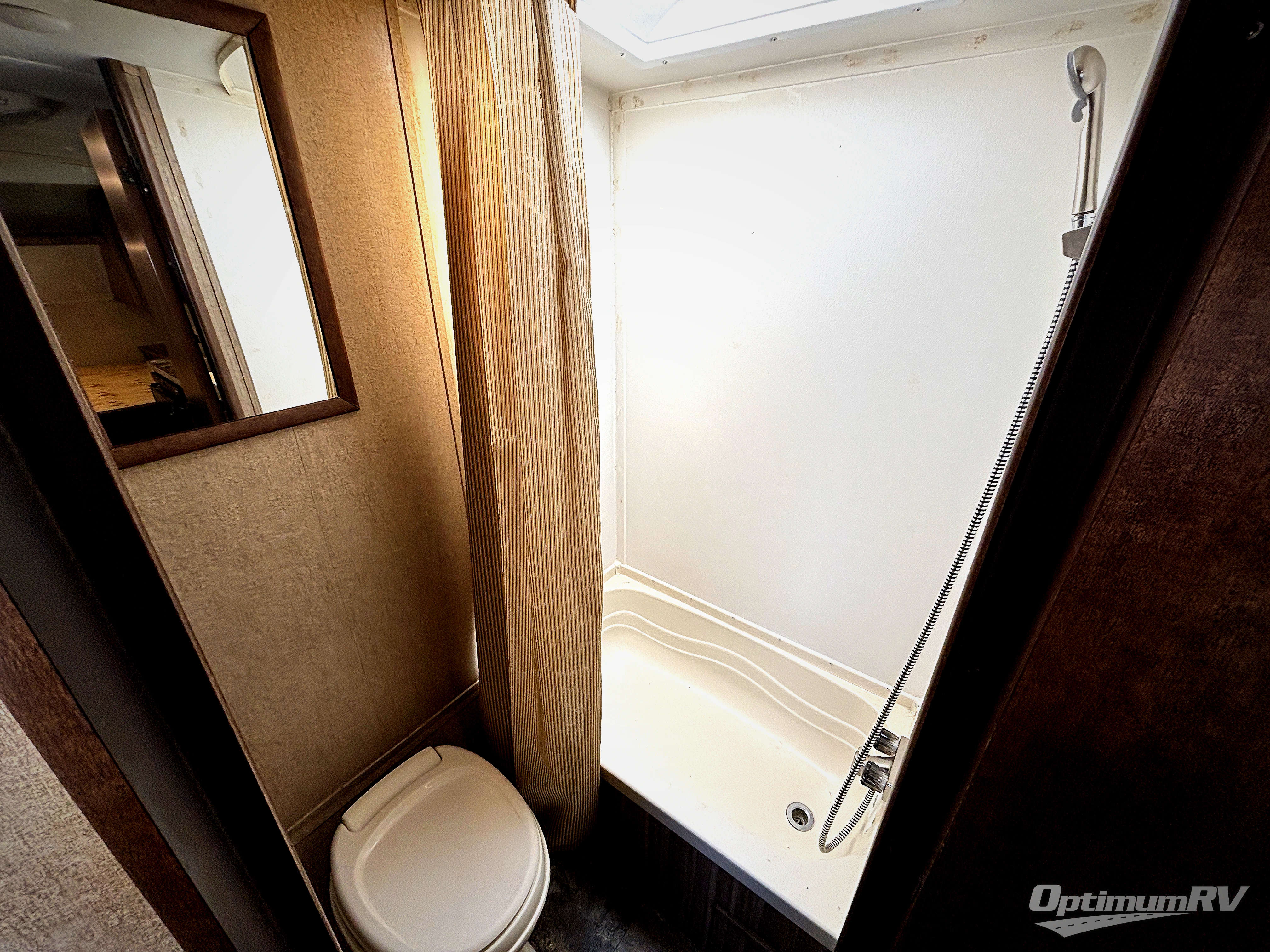 As you enter notice the handy wardrobe to your left. Straight ahead in the rear road side corner there is a private toilet and tub/shower. Just outside the bathroom door there is a TV area above a pantry for dry and canned good storage.