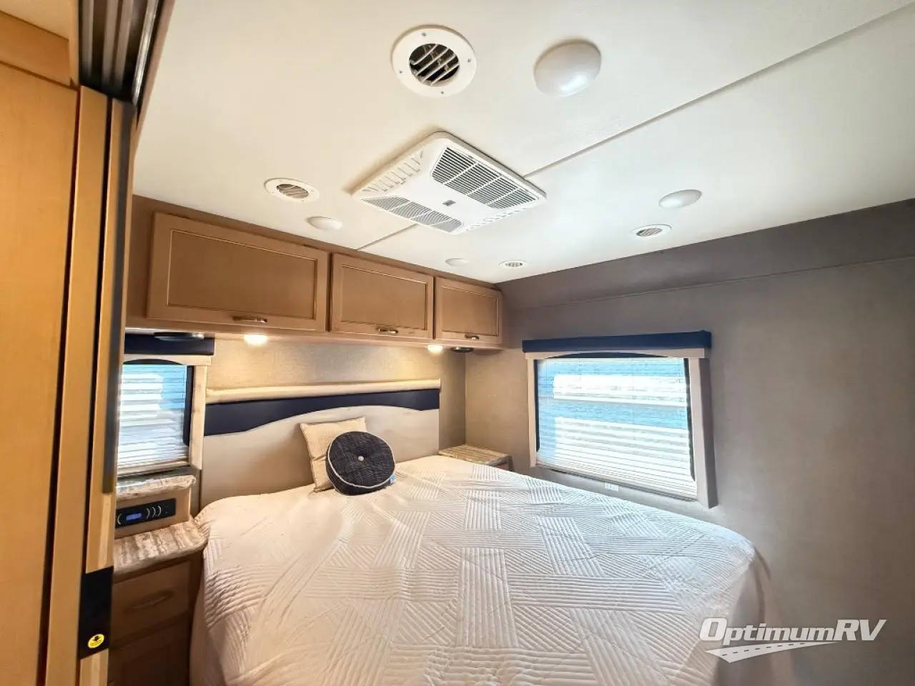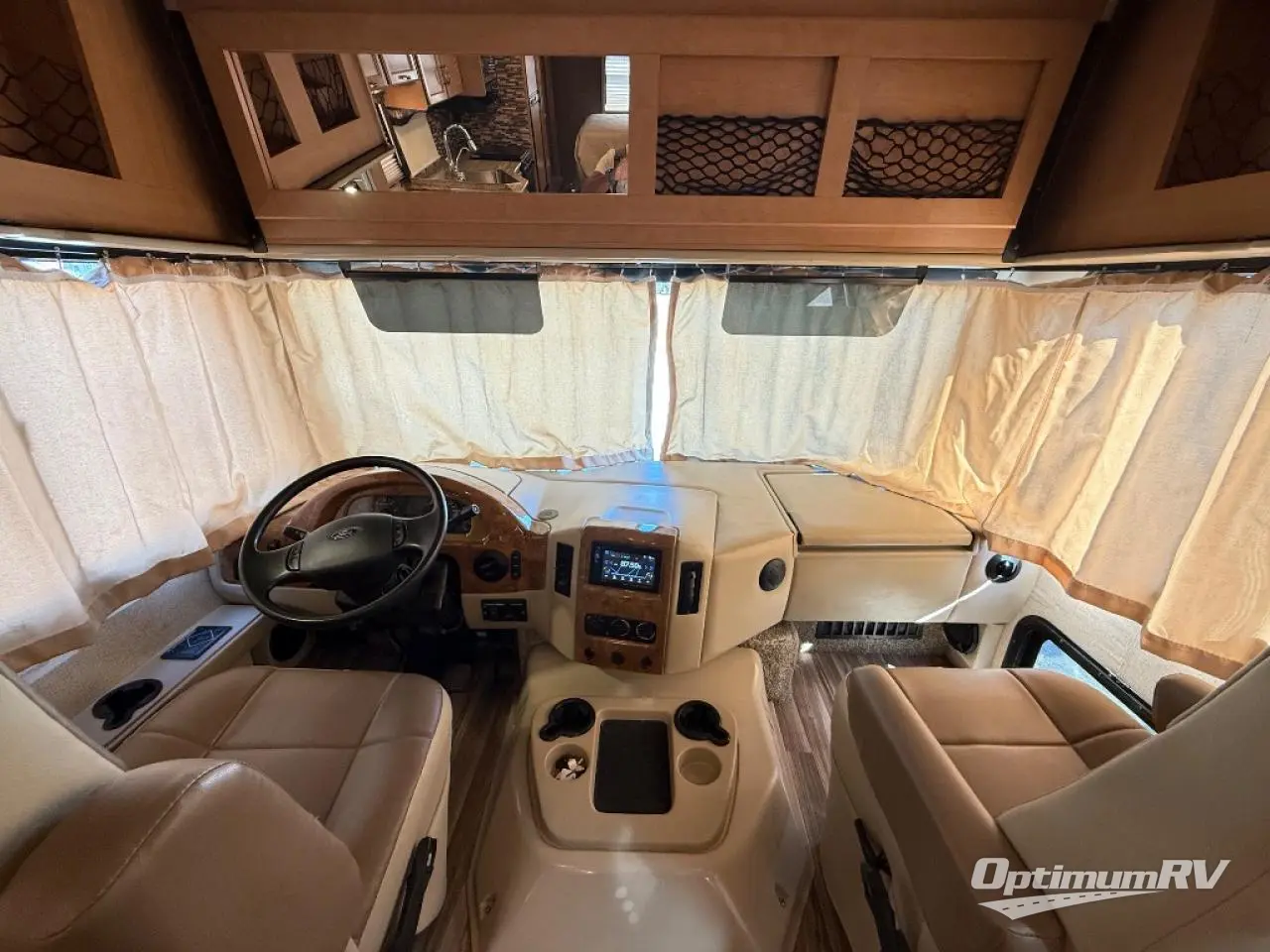 At the front, there is a drop-down overhead bunk for extra sleeping space. Also in the front cab area you will find a coffee table where you can sit and enjoy your morning cup of Joe.