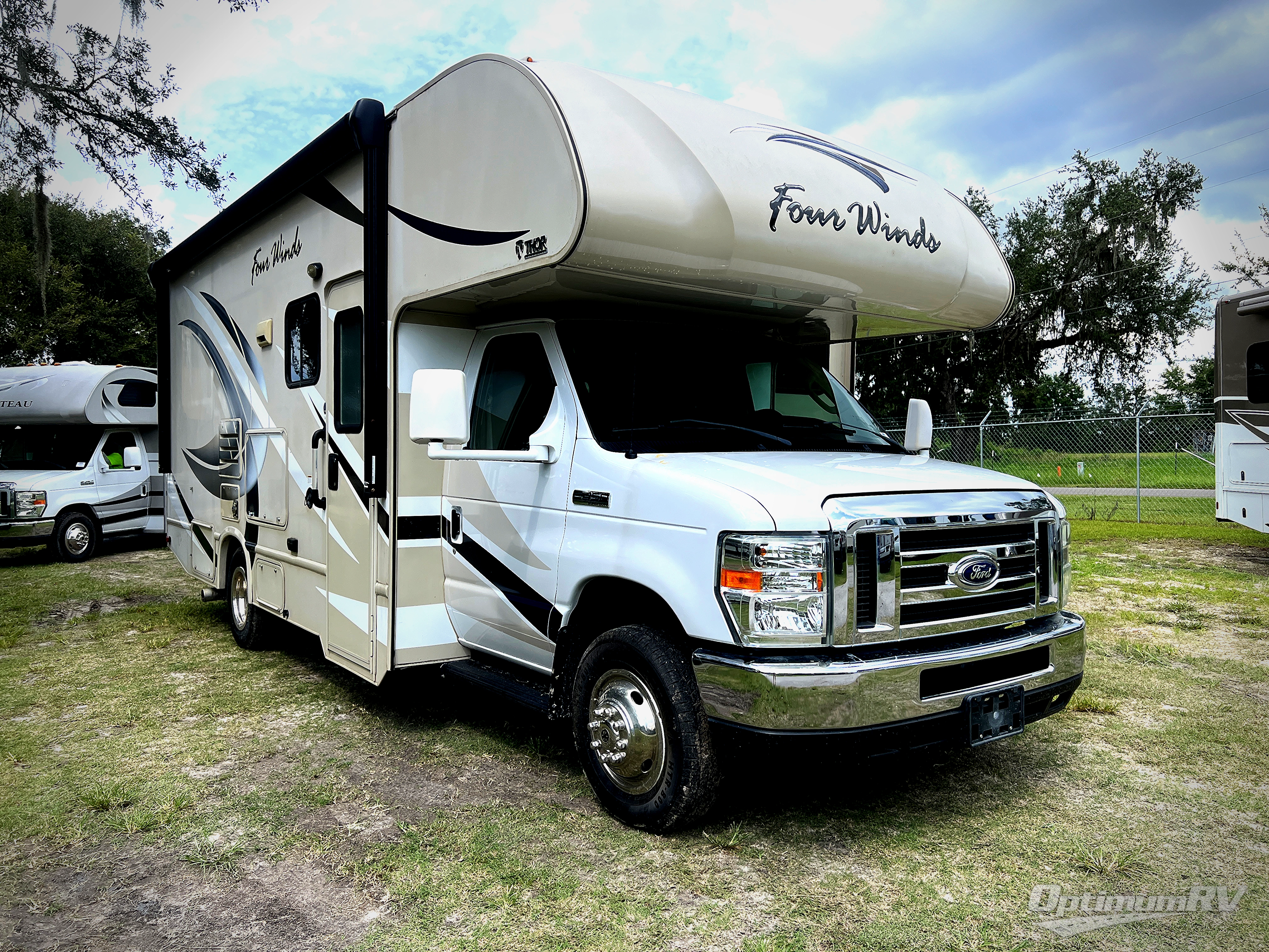This Four Winds class C gas motorhome by Thor Motor Coach will get you excited about any road trip you are planning! Model 24F offers a full wall slide out, sleeping for six, and a rear corner bath for added convenience.