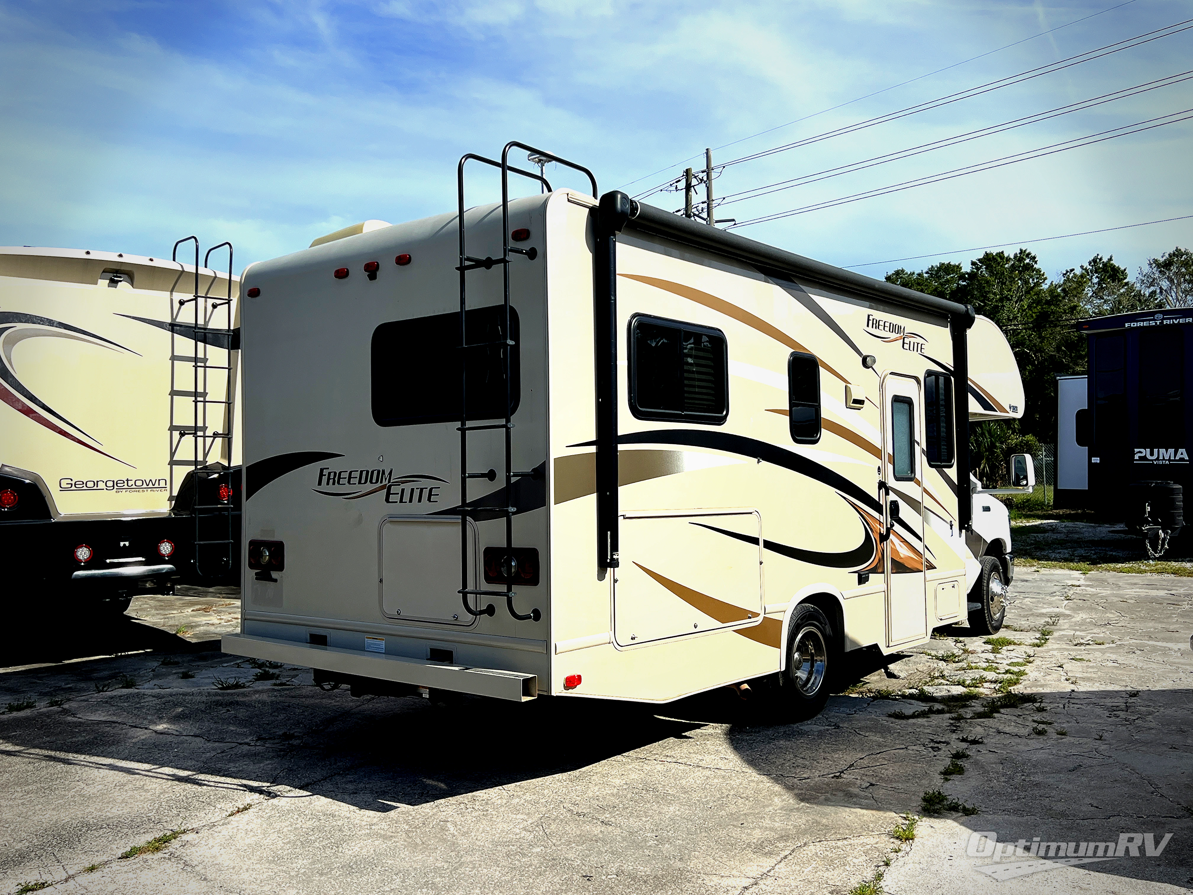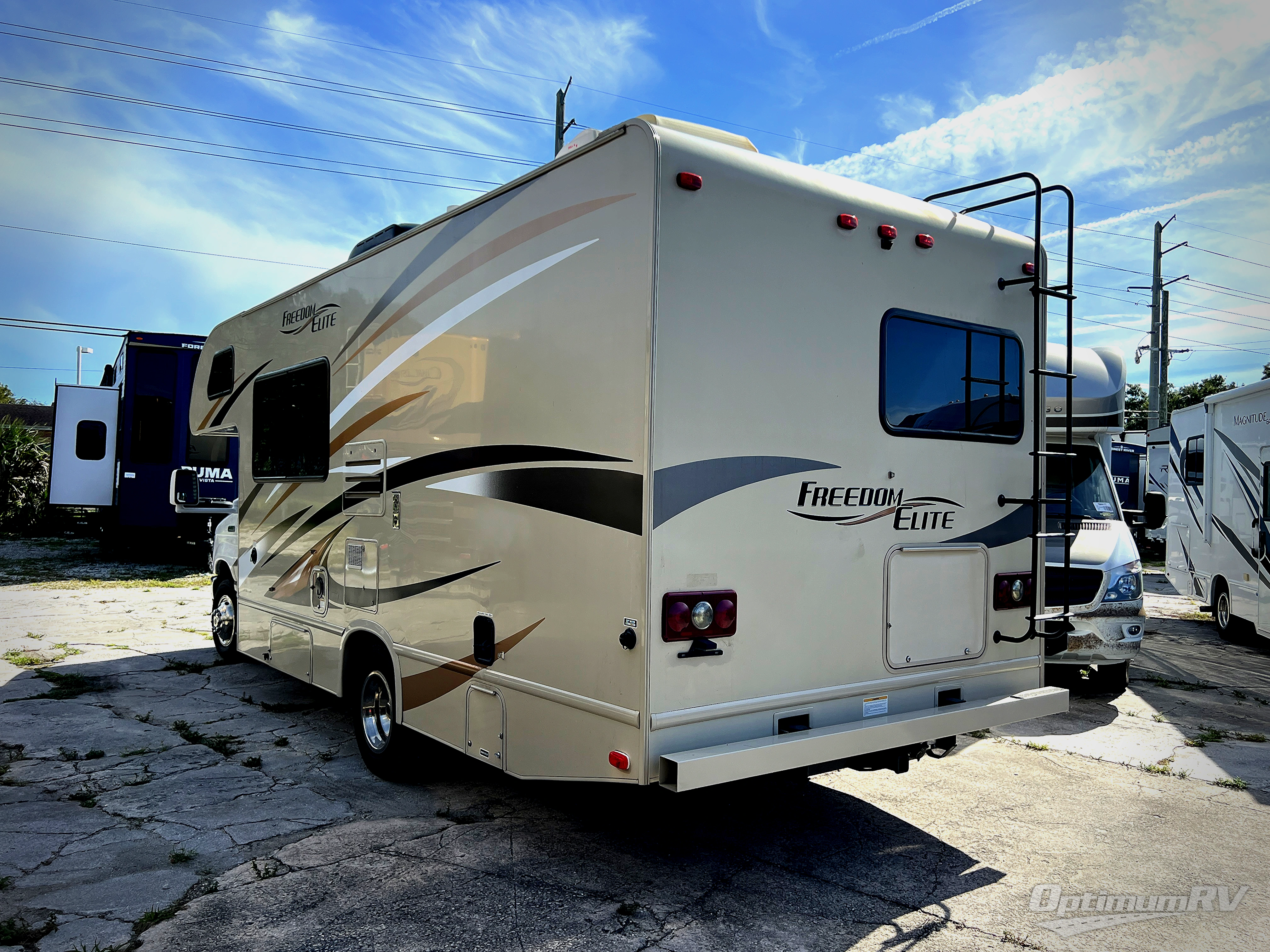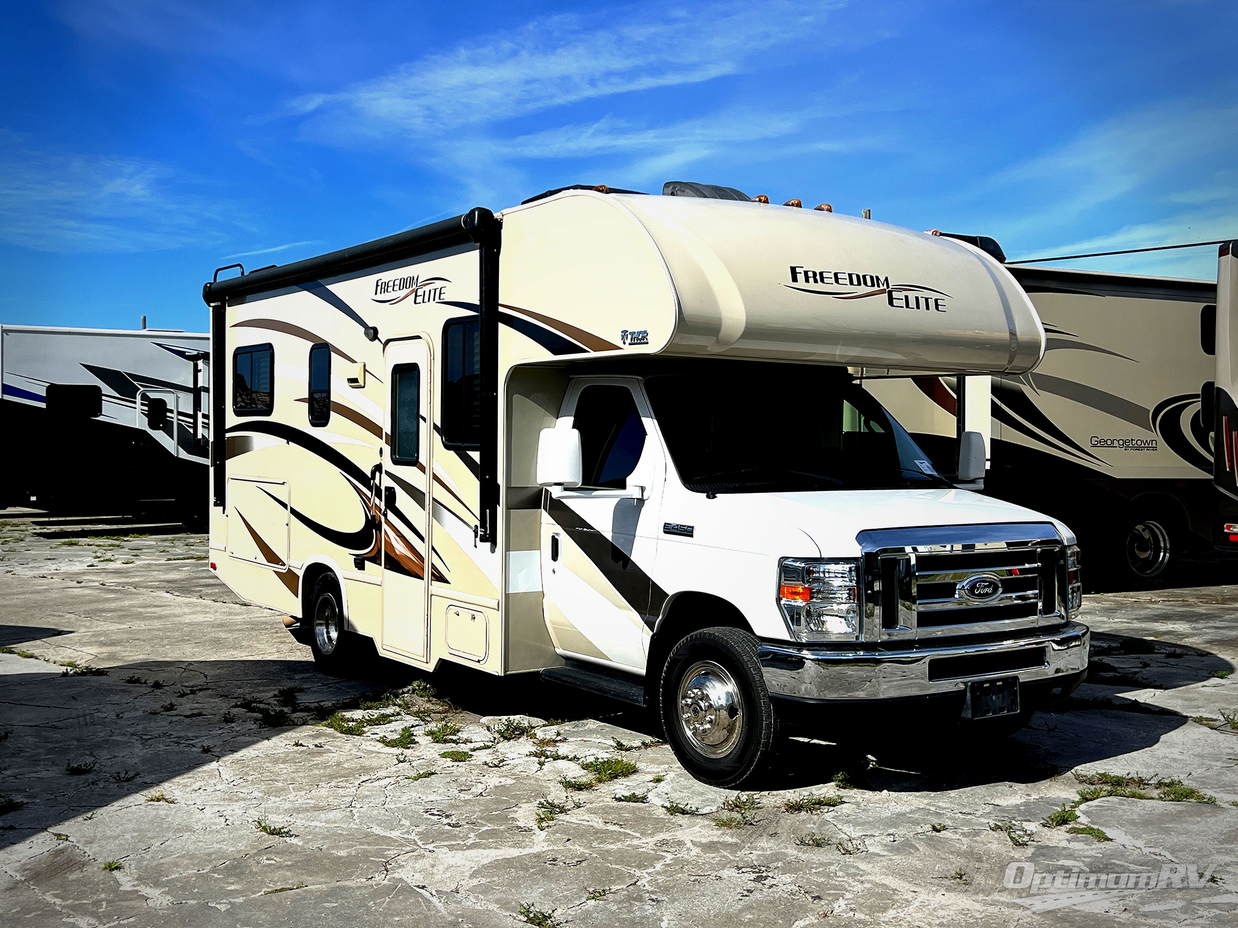 A rear queen bed, the convenience of your own bathroom, plus a cab-over bunk are just a few of the features that you will find throughout this 23H Freedom Elite class C model by Thor Motor Coach.