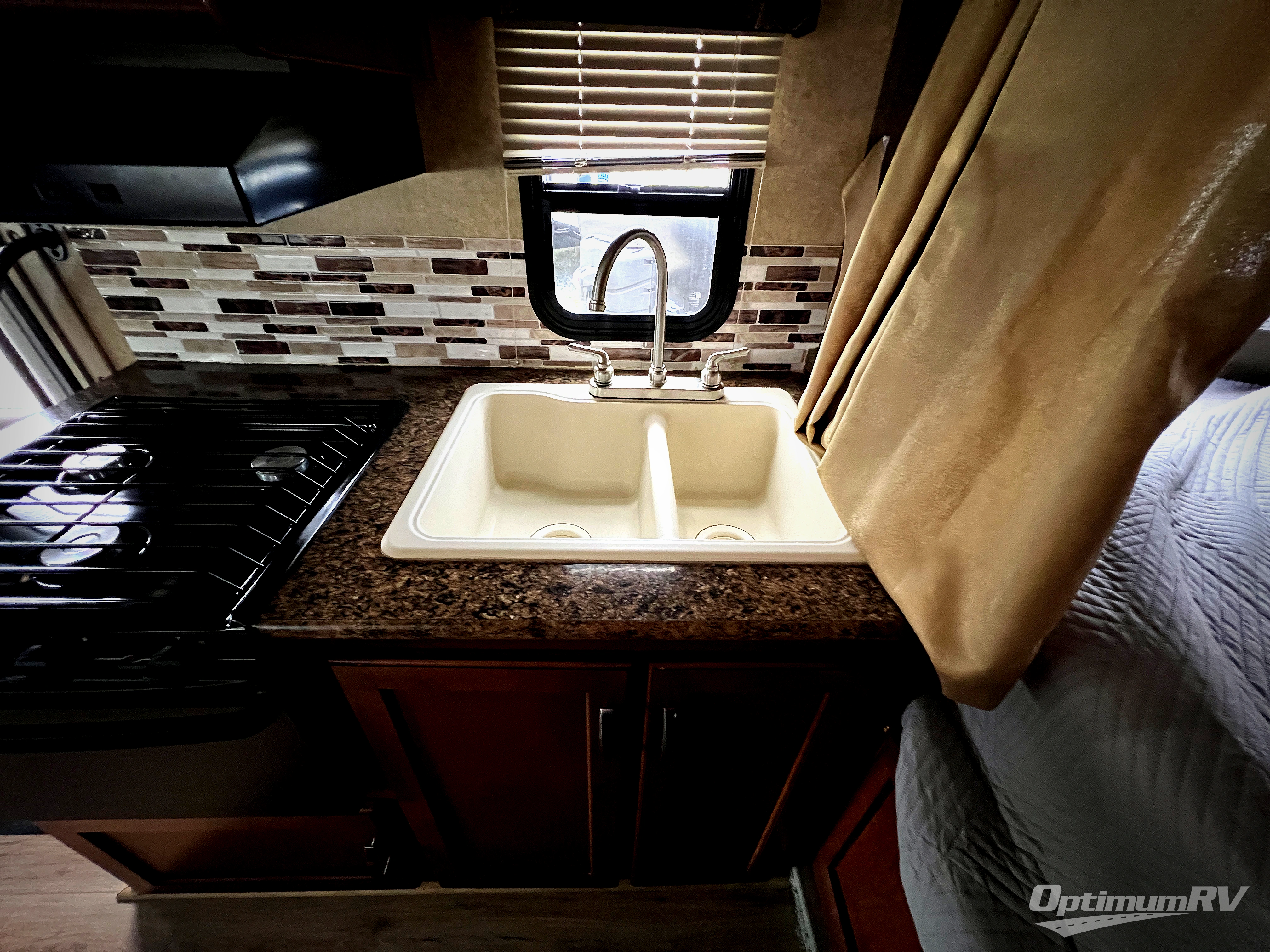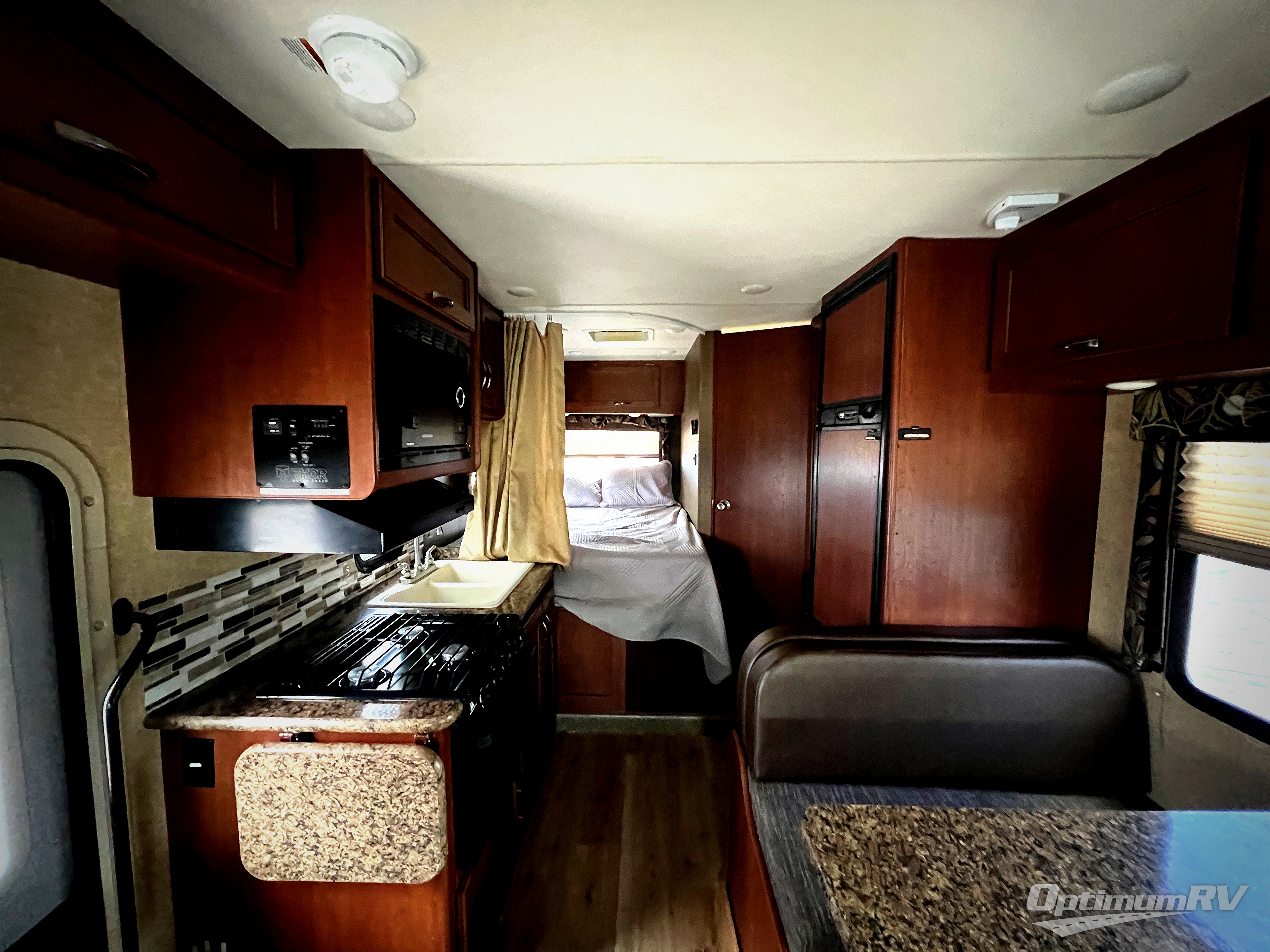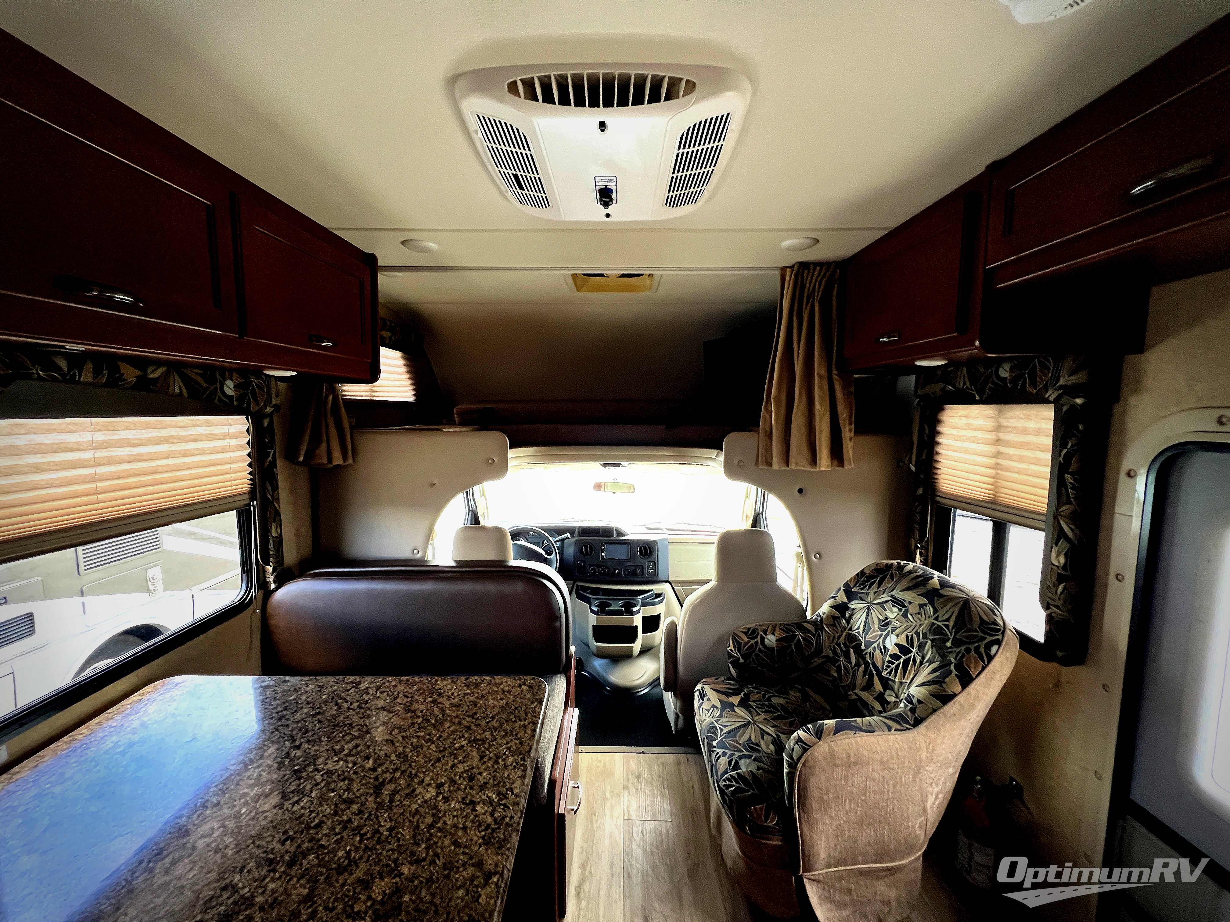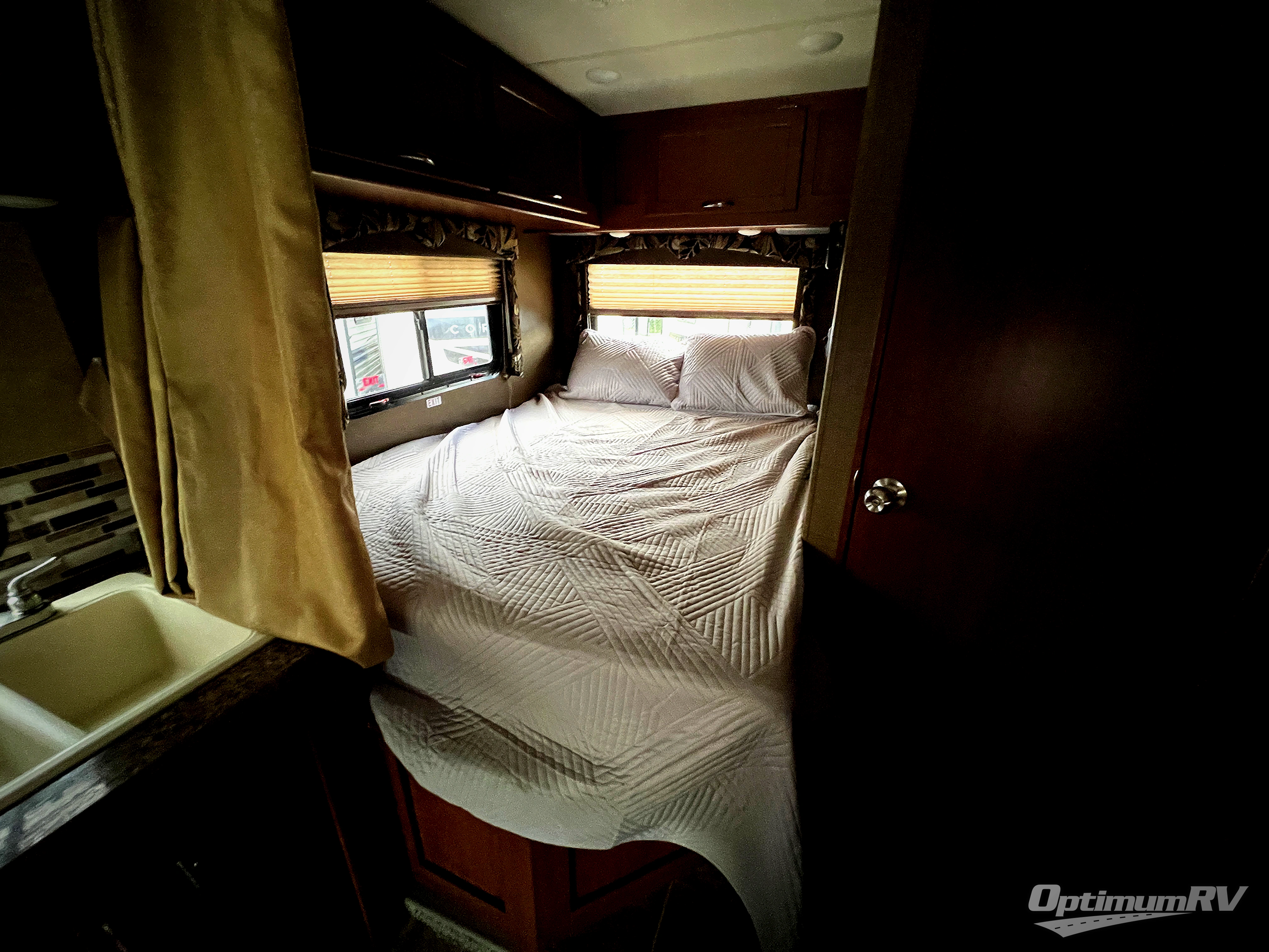 A rear queen bed, the convenience of your own bathroom, plus a cab-over bunk are just a few of the features that you will find throughout this 23H Freedom Elite class C model by Thor Motor Coach.