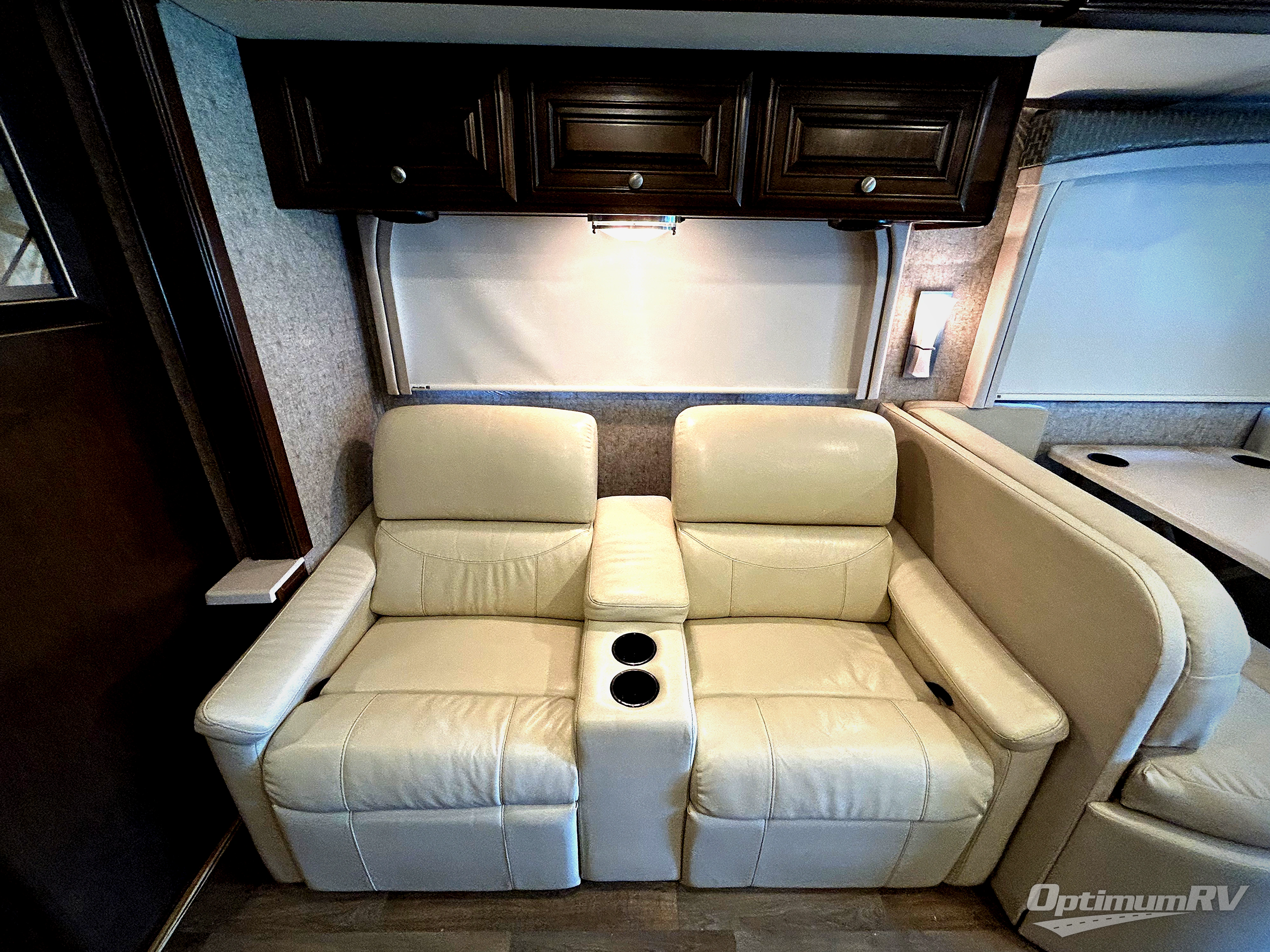 Up front you will find the overhead bunk plus a coffee table is below between the two captain's chairs for additional seating and eating area.