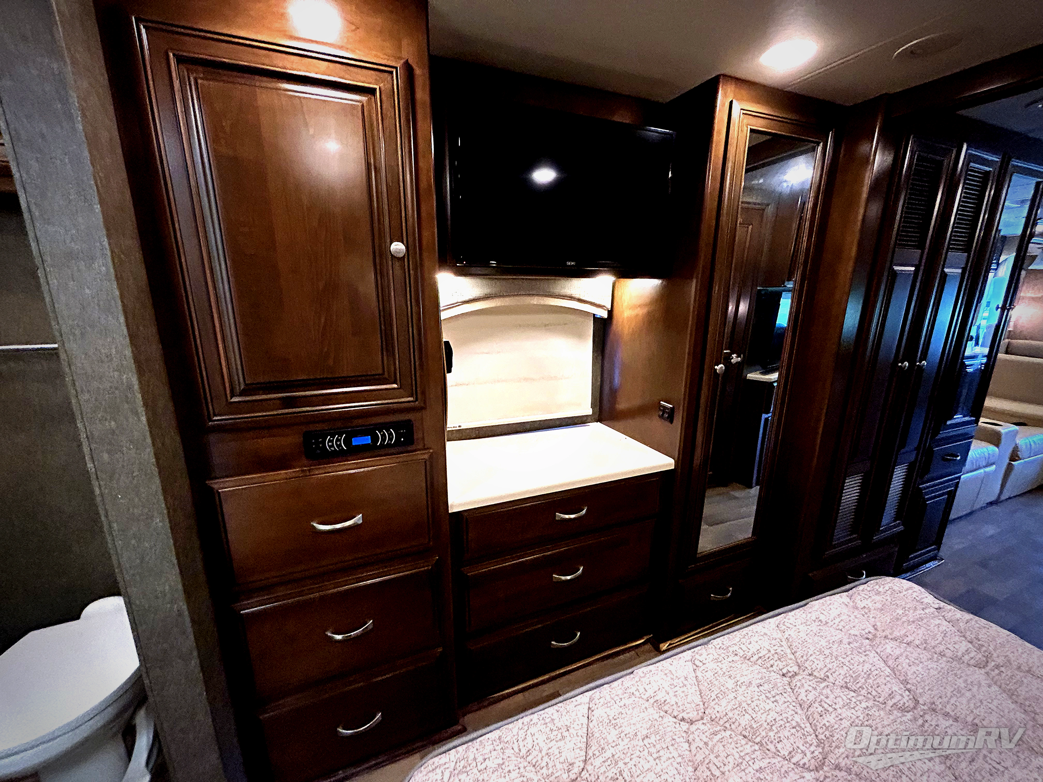 Next, find a queen bed slide with nightstands and dual closets with drawers between and a 32" LED TV.