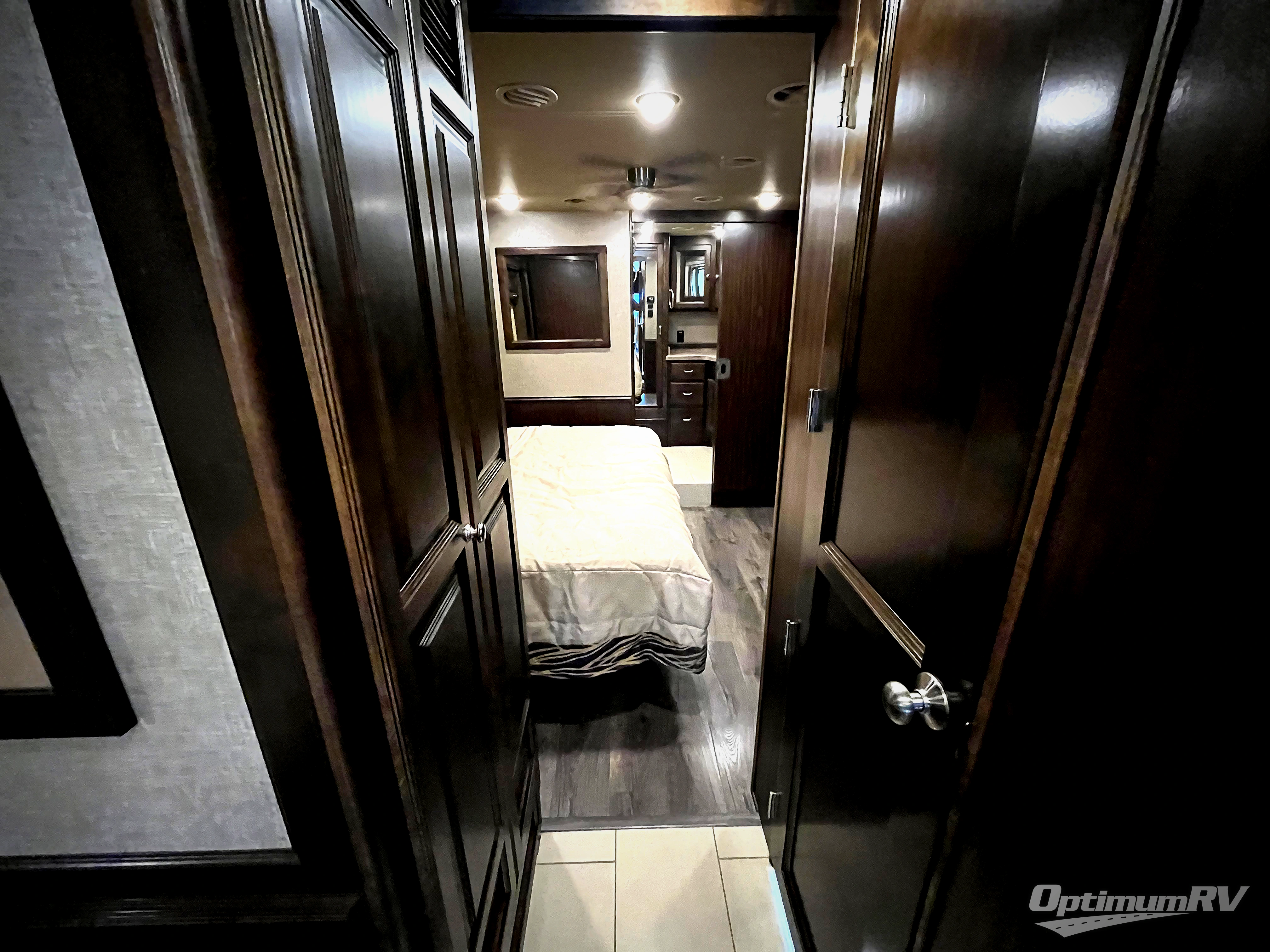 Next enjoy a bedroom area with slide out queen or optional king bed with nightstands at each side plus overhead storage. The wall opposite the bed has another slide that features a bank of drawers with cabinets above, plus a TV.
