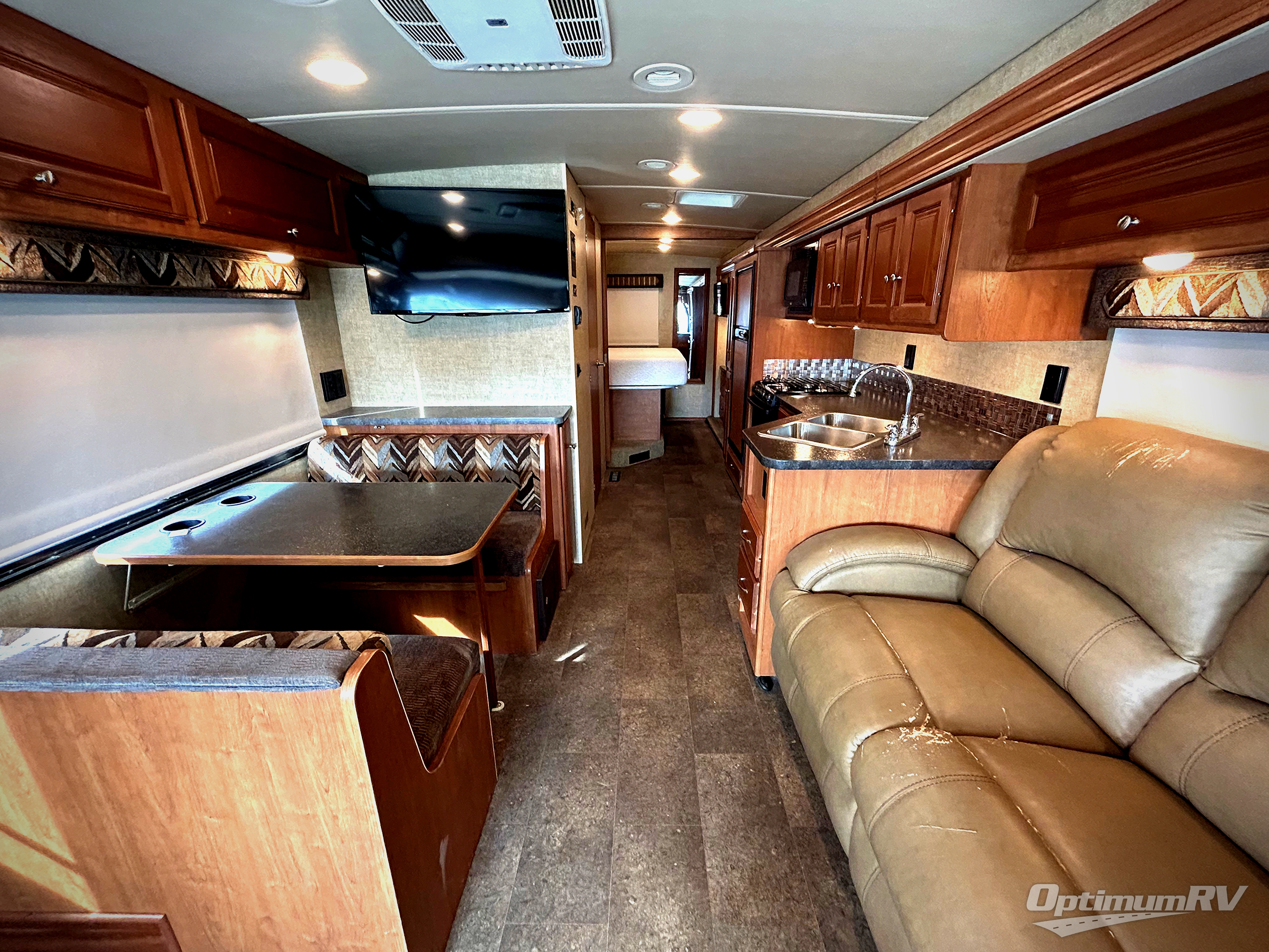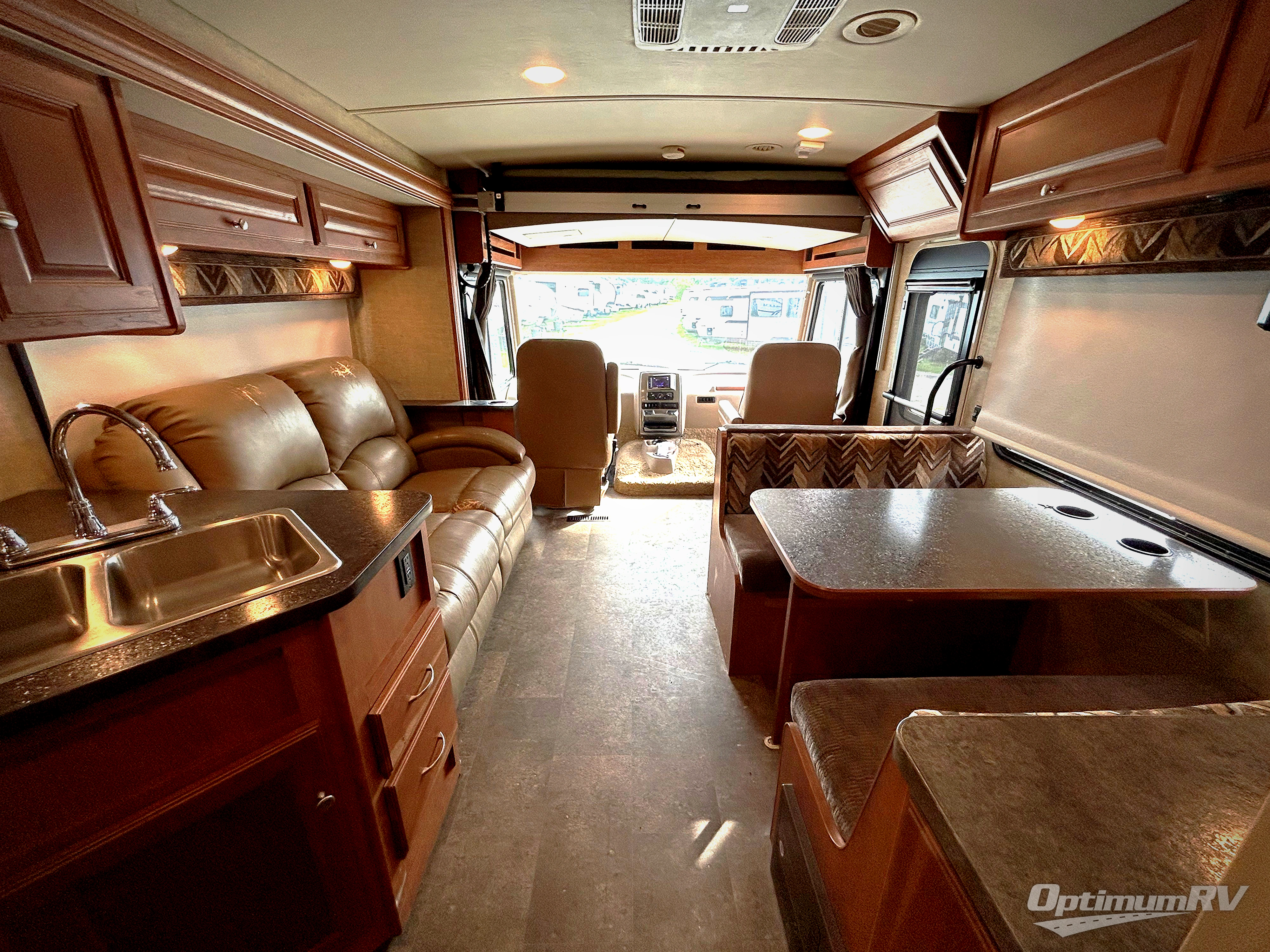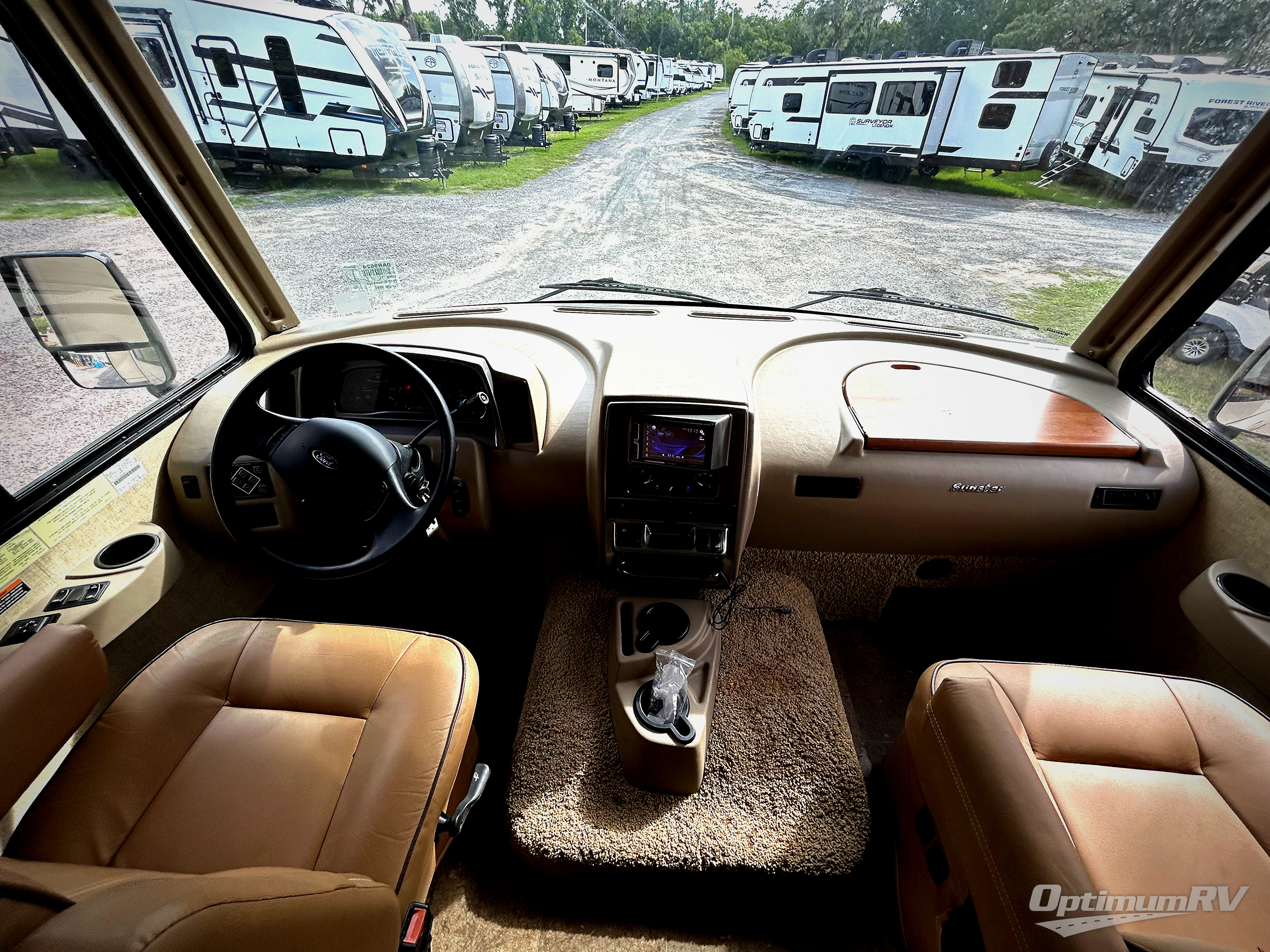 This Sunstar class A gas coach by Winnebago features a full wall slide giving it extra roominess from the front to the back.