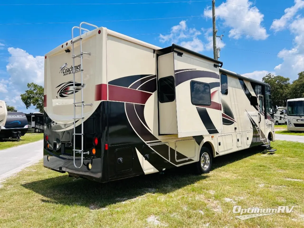 There is a collection of unique features that the Coachmen Mirada offers to you and your family. They have vacuum bonded every sidewall and roof and test the longevity and strength by pulling on the adhesion. They have longer wheelbases which distribute the weight evenly throughout the unit. They have spacious exterior storage which allows you to bring as much with you as you want without having to store it inside with you. You can also easily navigate your camping parks with the backup monitor and side cameras. Come take a look at a Coachmen RV Mirada motorhome today!