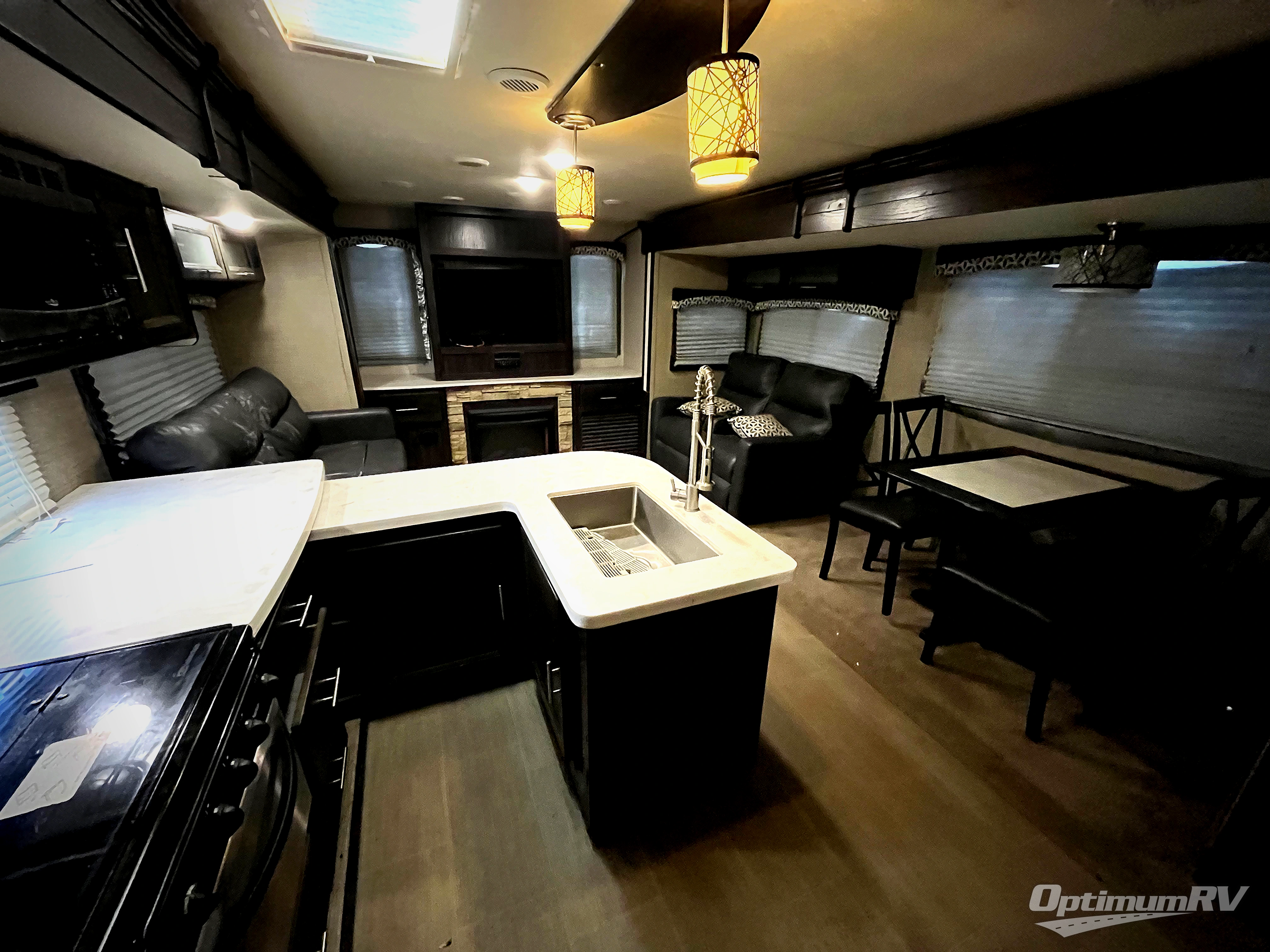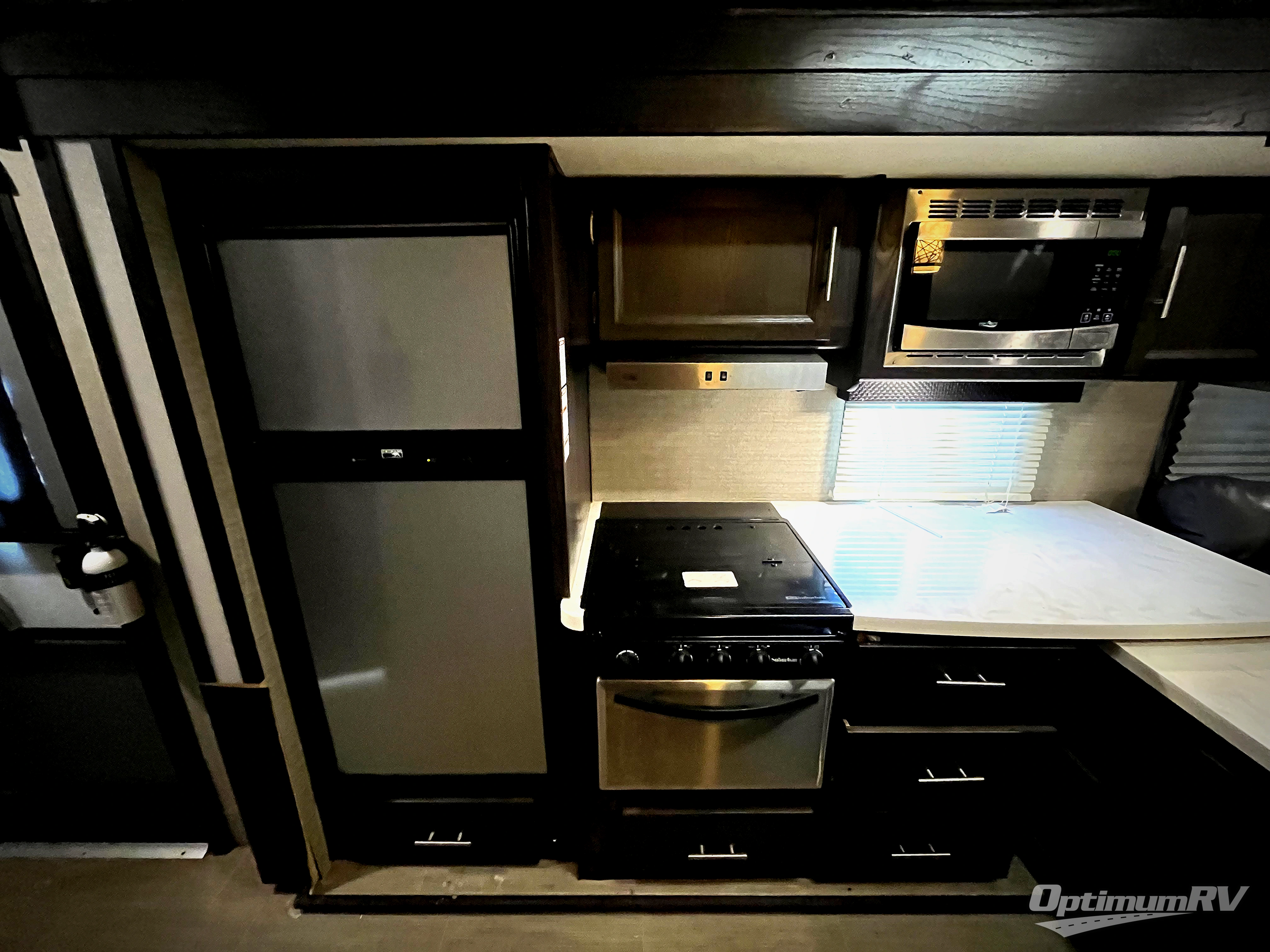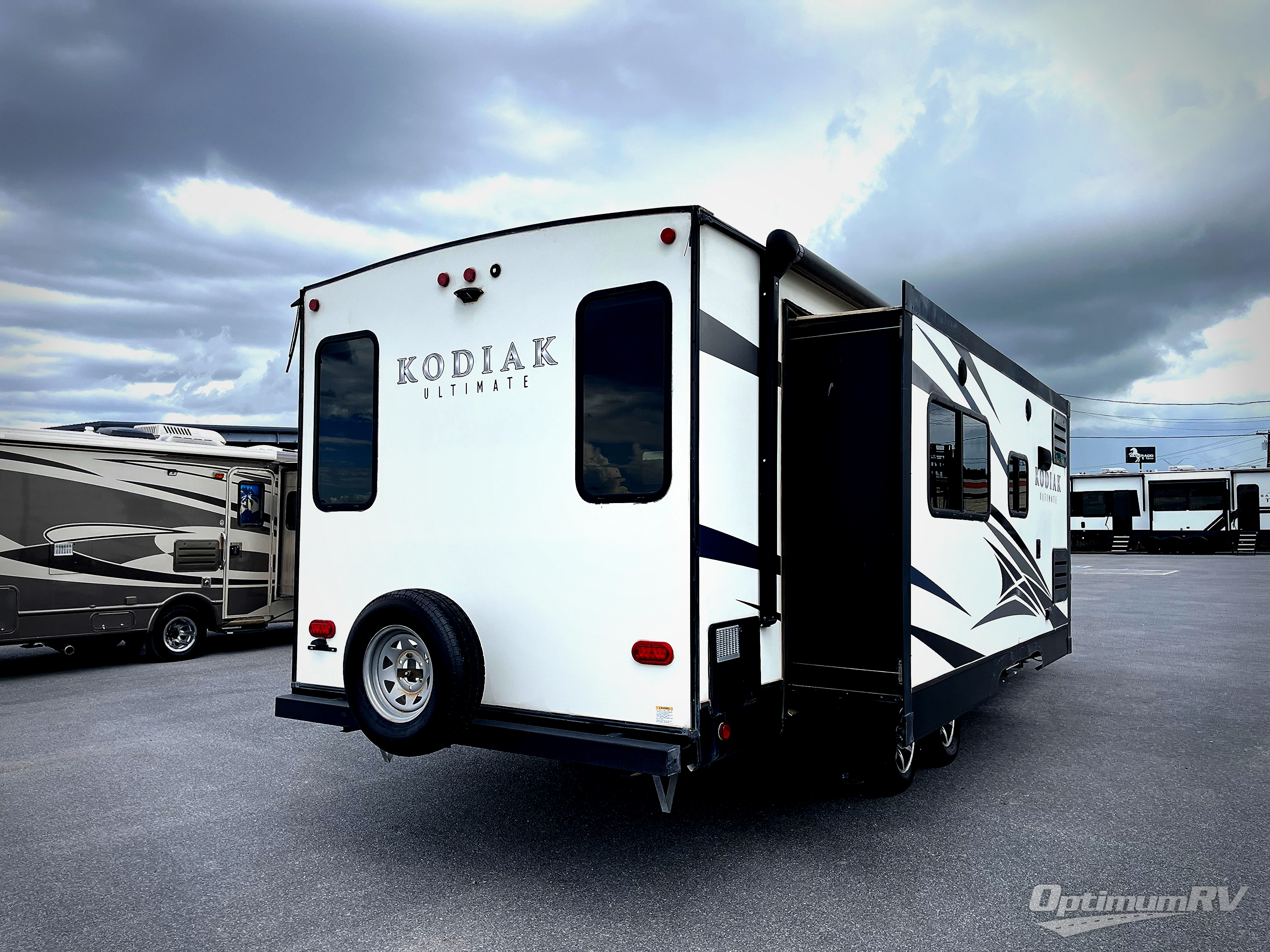 This Kodiak Ultimate travel trailer is perfect for those who love to go camping in style. Your favorite place to spend your evenings will be in the large living area, which is made possible because of two opposing slides. From the 57" theater seats to the U-shaped dinette, you will have plenty of seating space for everyone to gather together in front of the blazing fireplace as you watch a movie on the 39" LED flat screen TV. Once you've tired yourself out for the day, you can comfortably retreat to the private bedroom where you will easily drift off to sleep on the queen-size bed.