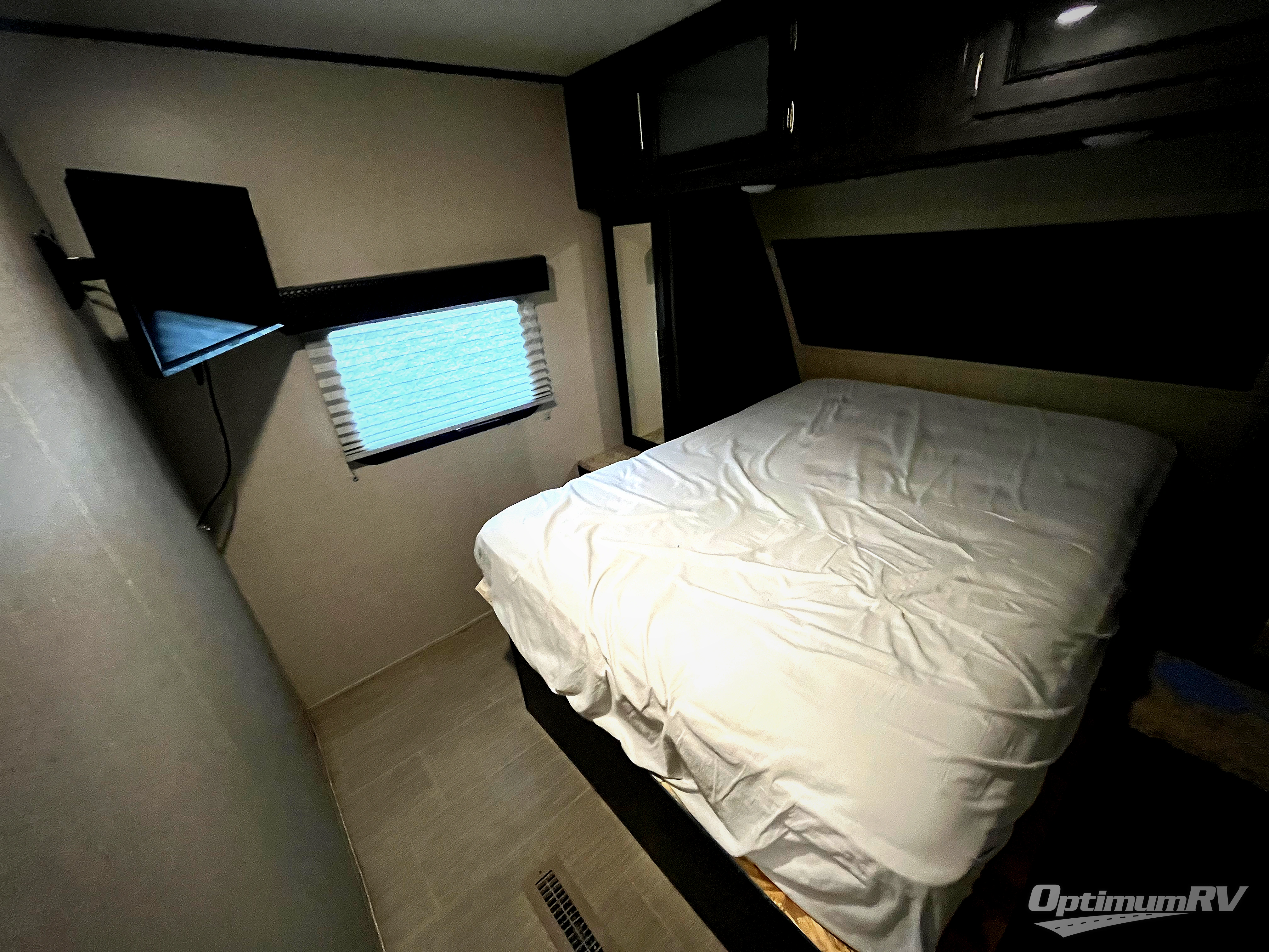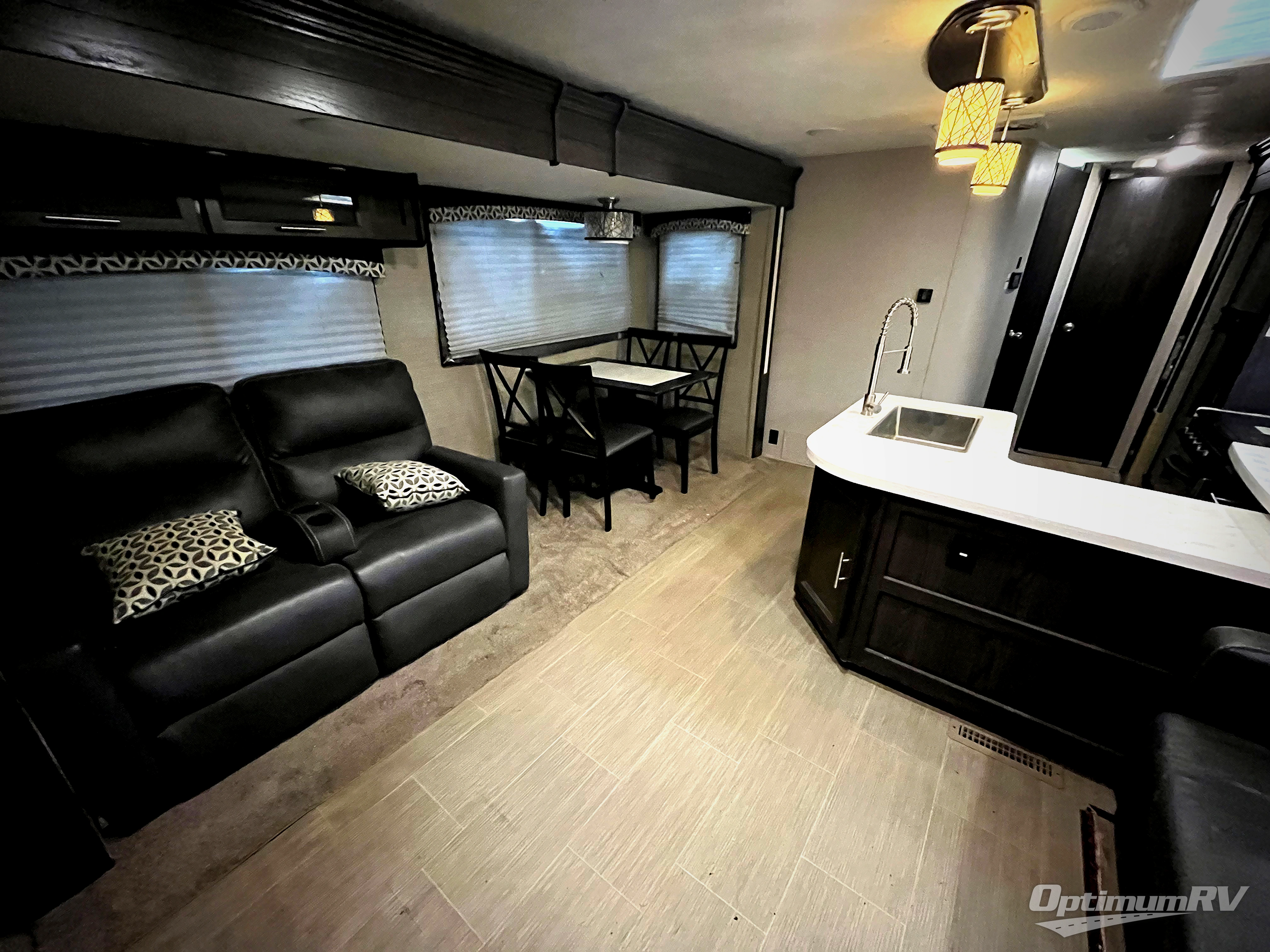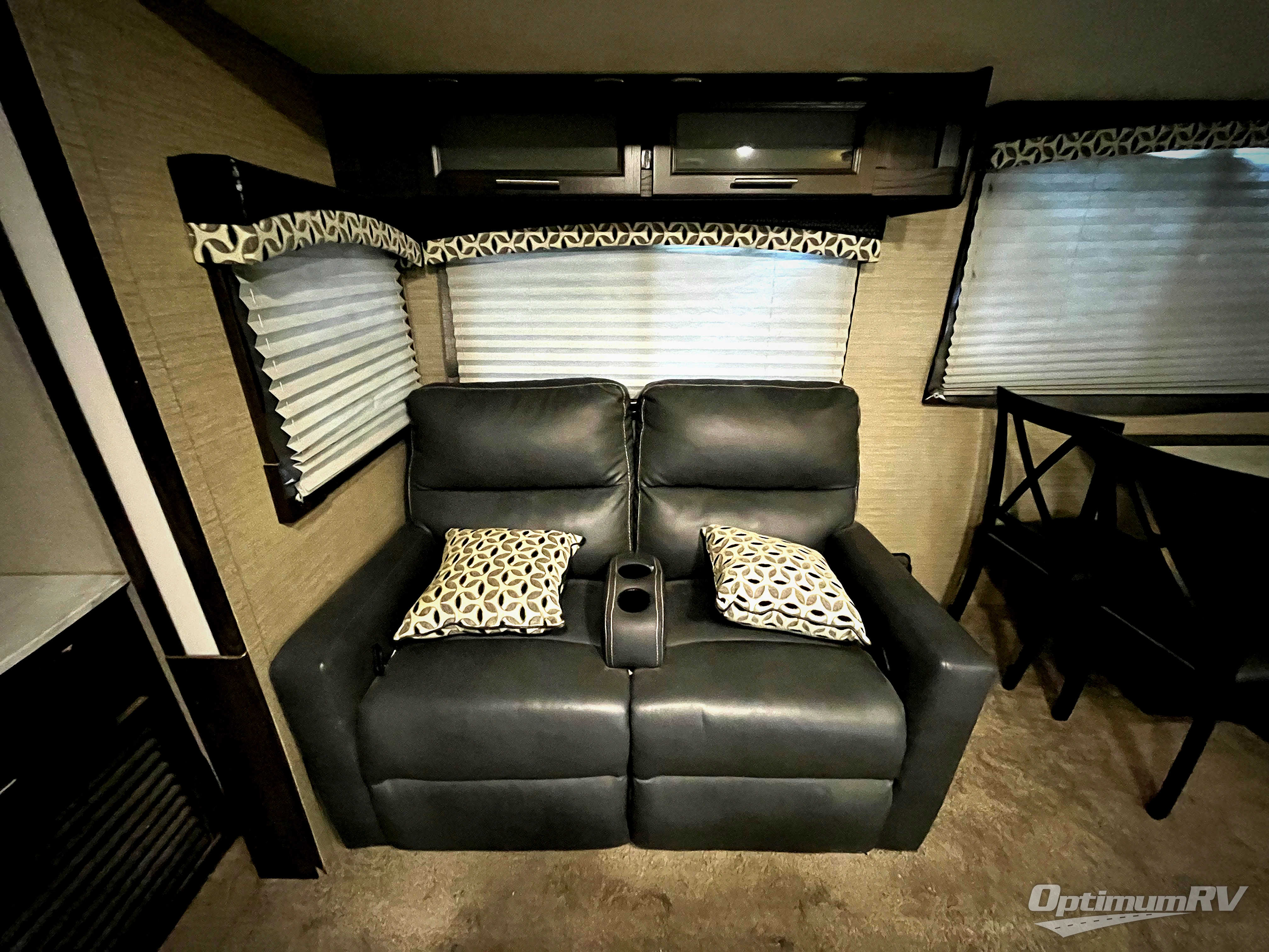 This Kodiak Ultimate travel trailer is perfect for those who love to go camping in style. Your favorite place to spend your evenings will be in the large living area, which is made possible because of two opposing slides. From the 57" theater seats to the U-shaped dinette, you will have plenty of seating space for everyone to gather together in front of the blazing fireplace as you watch a movie on the 39" LED flat screen TV. Once you've tired yourself out for the day, you can comfortably retreat to the private bedroom where you will easily drift off to sleep on the queen-size bed.