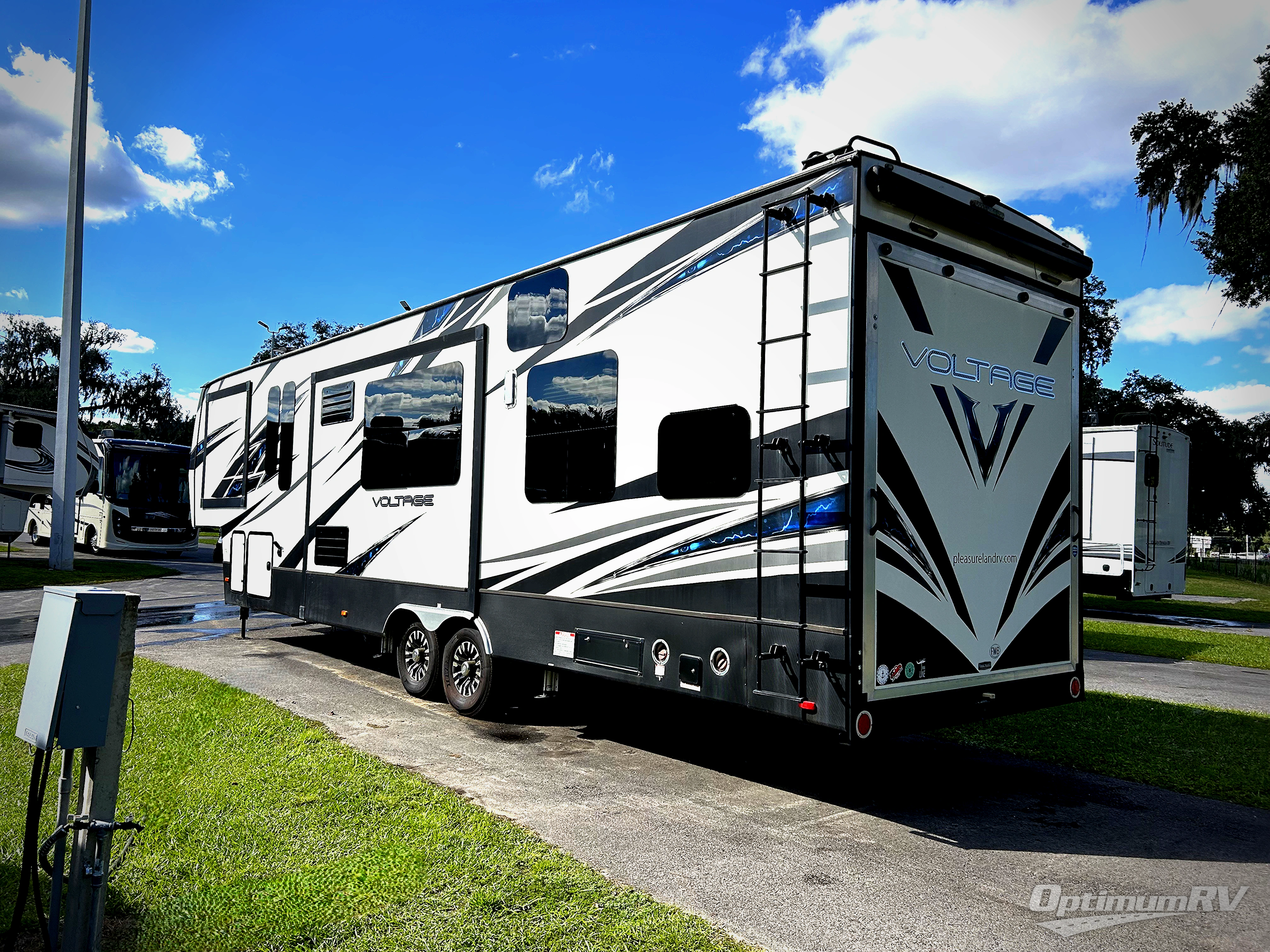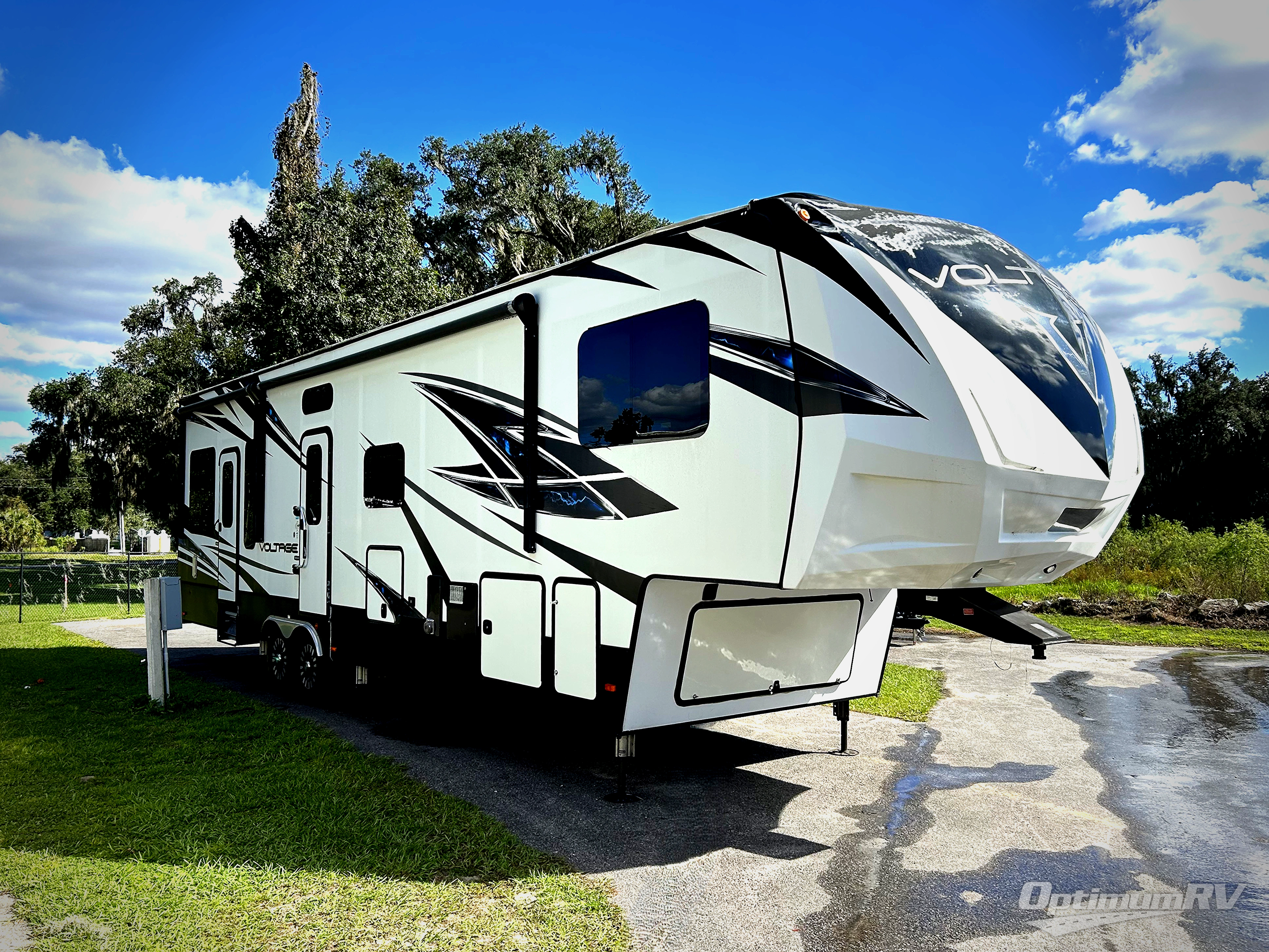 You and seven of your closest friends can enjoy a weekend filled with adventure when you hitch up this Dutchmen Voltage toy hauler fifth wheel. Model V3705 offers room for your toys, a spacious interior for down time hanging out, and all of the comforts of home. You will love the 8' zero gravity ramp door for loading and unloading. There are ample tie downs rated for 2,500 lbs. so your cargo is secure during travel. Once unloaded you've got yourself a bit more living space and a hang out place between rides that keeps any dirt and mess out of the main living area. With the Happi-Jack power bunk and roll-over sofas along either side and the loft you can easily sleep five in the garage area alone. Inside, you will enjoy the upgraded residential furnishings, an 18 cu. ft. refrigerator for your cold food and drinks, plus complete kitchen and bath features so you can refuel your adventure seeking friends and get cleaned up each day as well.