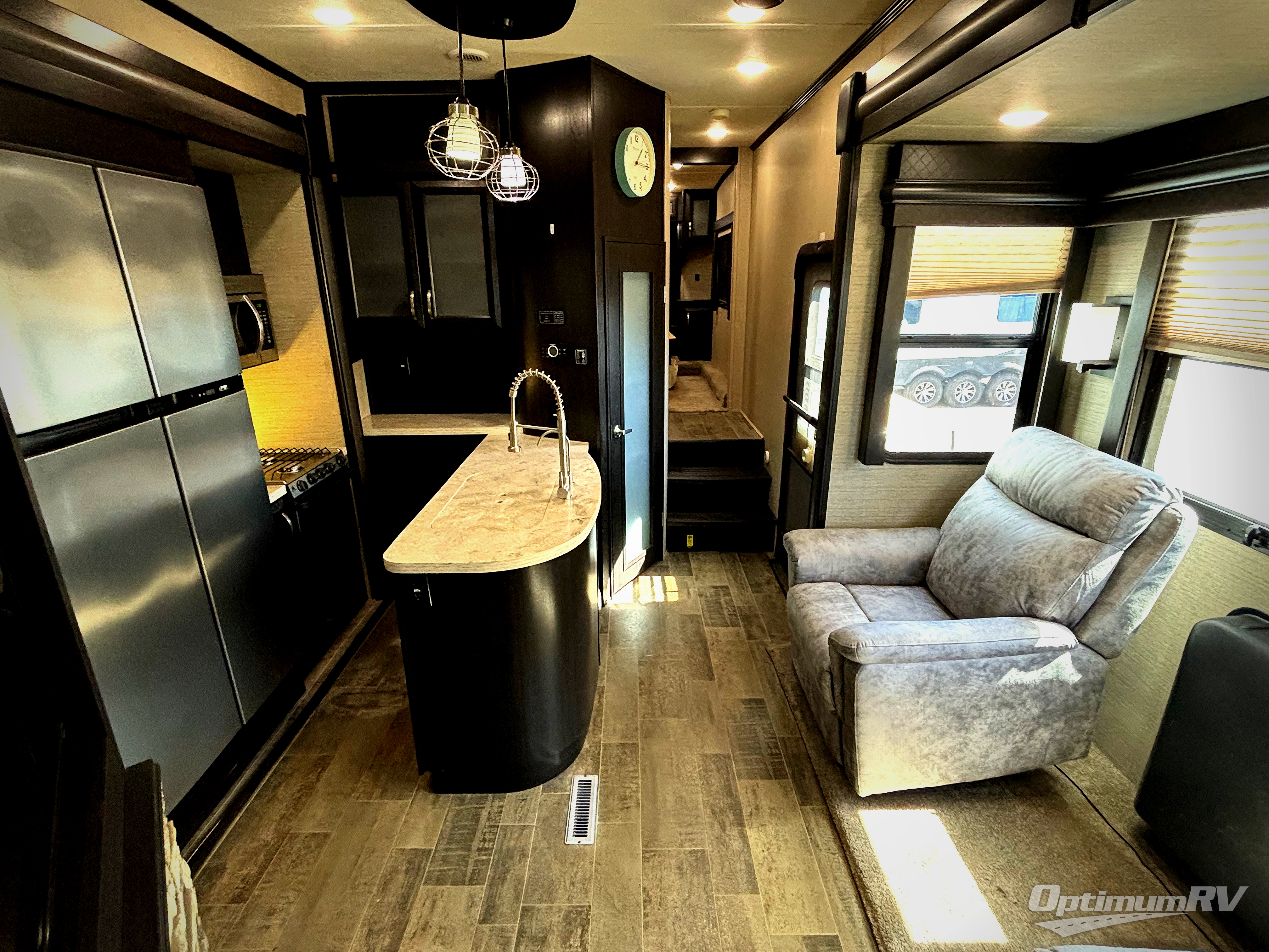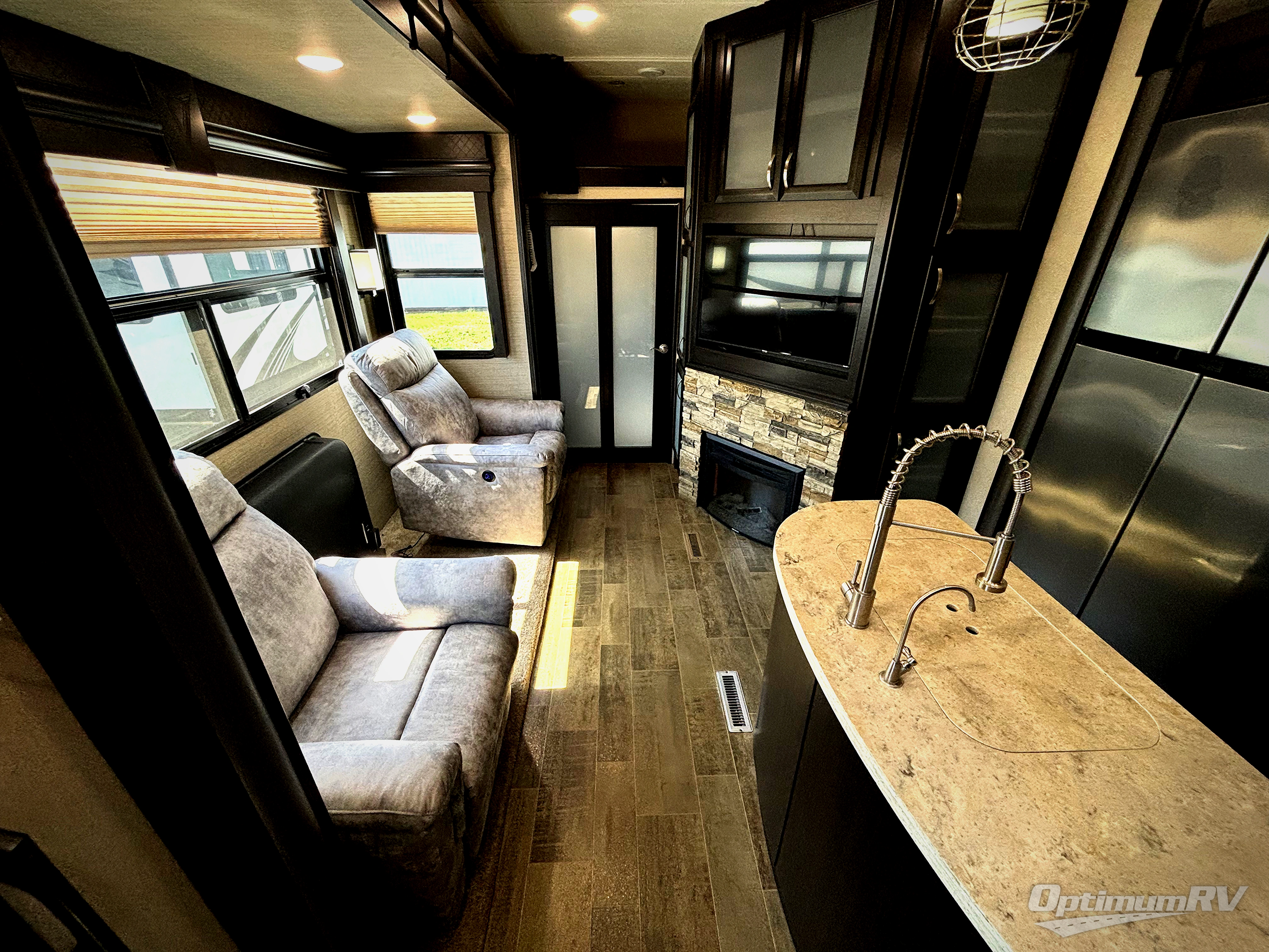 Even though the Voltage is the most popular toy hauler in its class, you don't have to own toys to want or own any one of these units. These haulers are so versatile that just having the added garage space allows you so many more camping options. The extra space alone makes traveling so much more fun! Just think of how much gear you can take along for your favorite activities and outdoor games. Each rear ramp can be positioned horizontally to allow you to add optional awnings, screen rooms, and side rails to create a rear patio, or even a set of steps to the ground. Now, how is that for camping when you can take your very own outdoor patio along! On the inside, you will find that Voltage offers higher ceilings for a spacious open feel, upgraded residential furnishings, a gourmet kitchen with quartz countertops, and hardwood cabinetry as well. And, with the 30 gallon gasoline fuel station standard on every model you can be assured that you can indeed keep all of the toys going for the weekend and beyond! So, for camping that requires your favorite outdoor toys, or even a backyard patio, choose any Dutchmen Voltage FW toy hauler and begin planning your next family adventure!