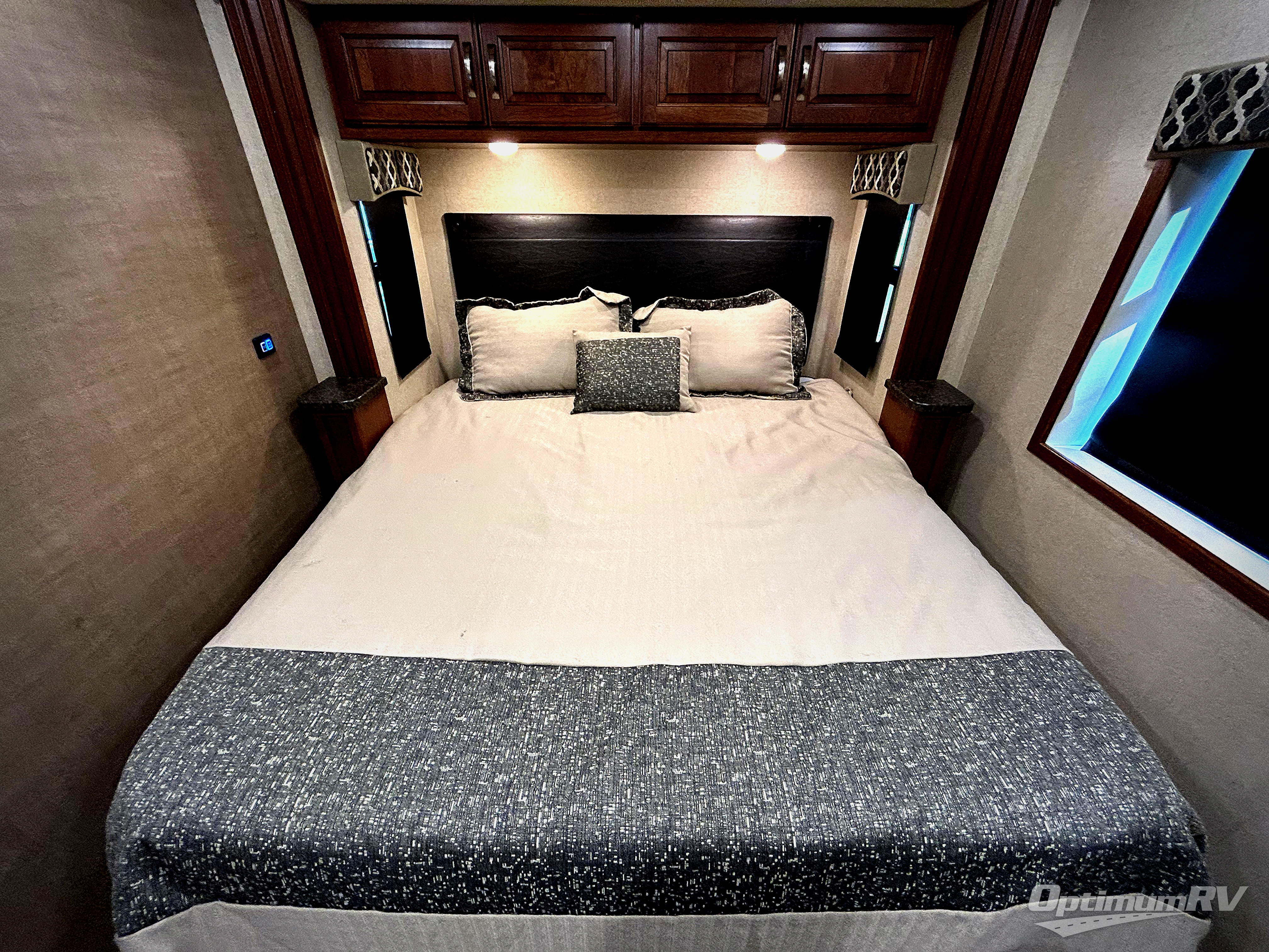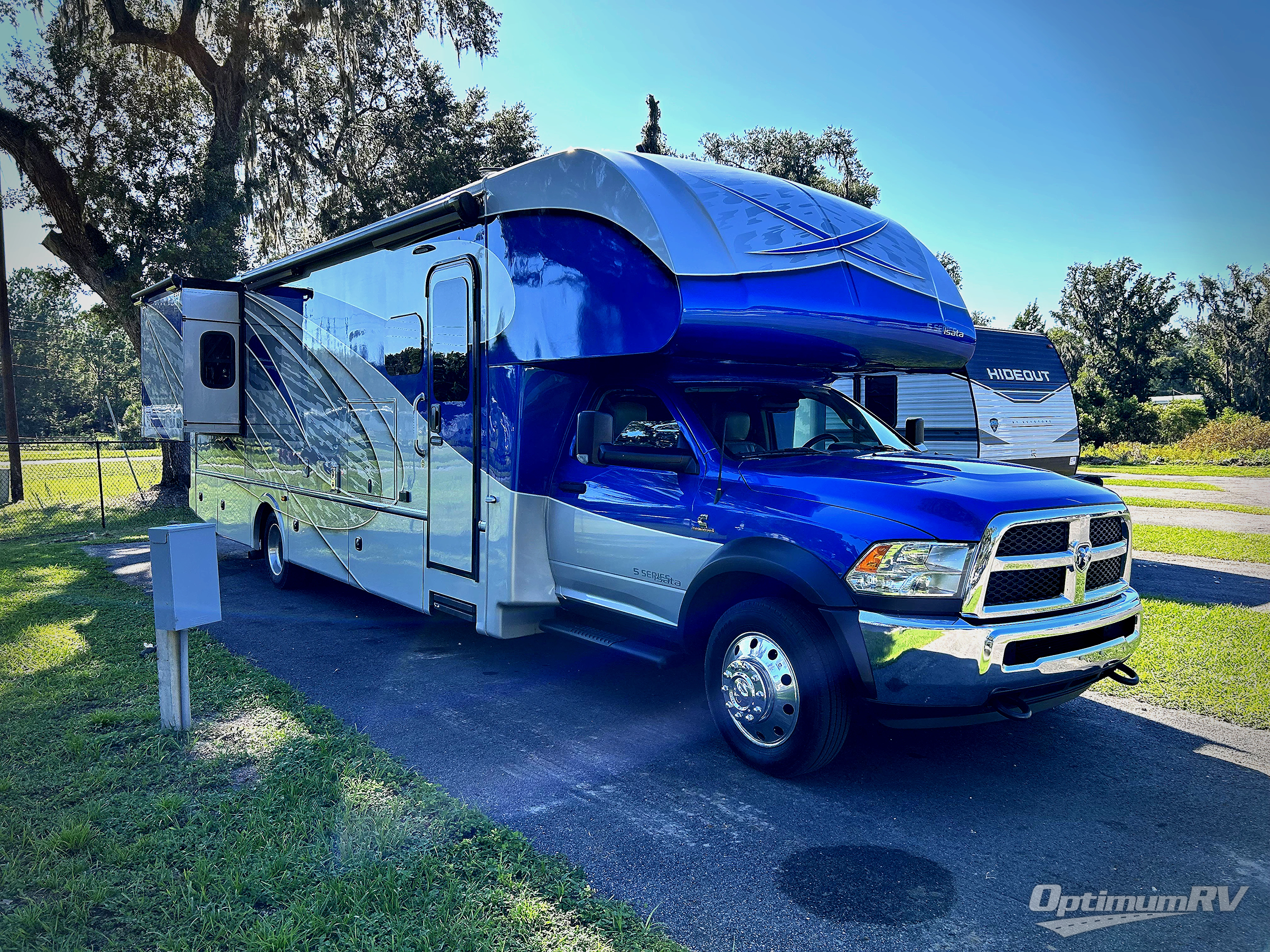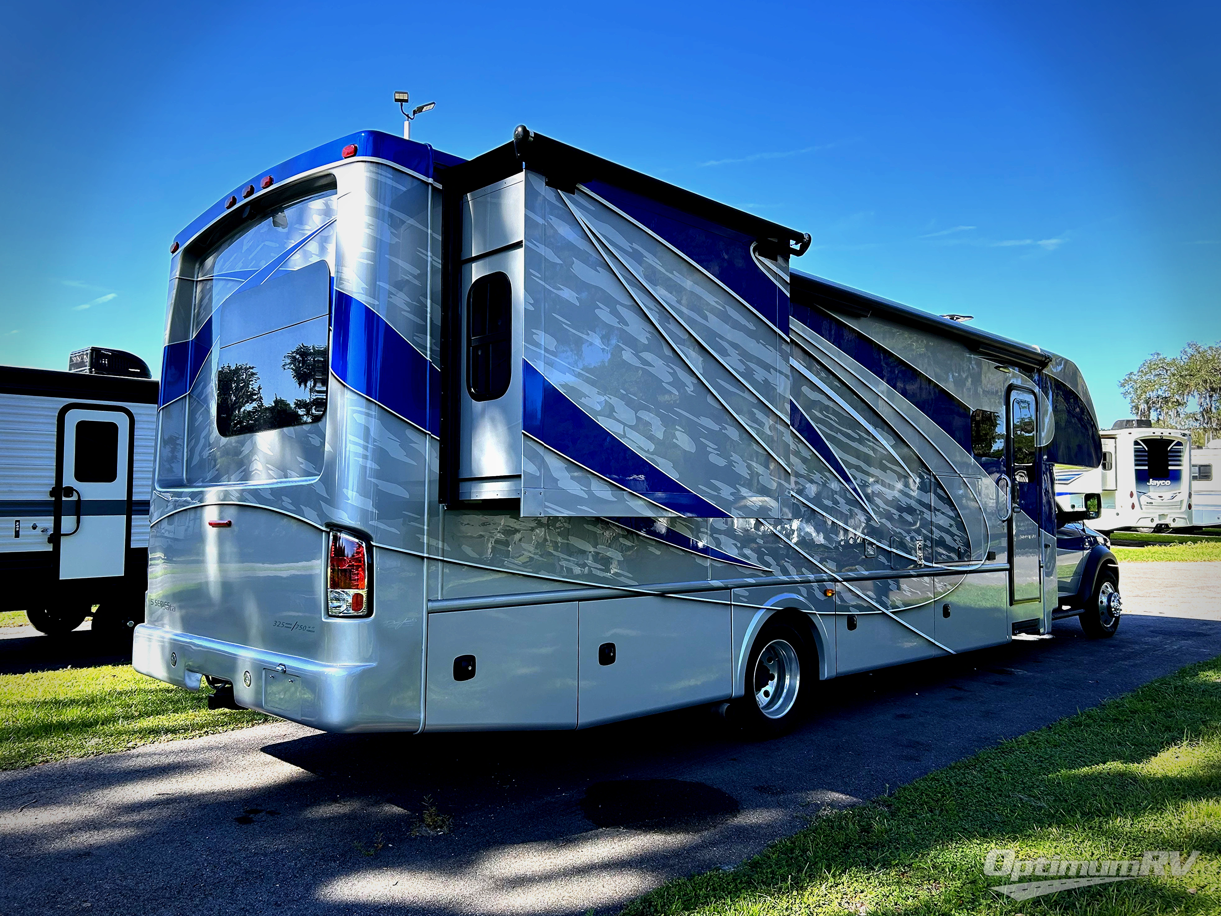 Embark on your next road trip in the Isata 5 36DS Super C diesel motor home by Dynamax. This model features double slide outs, a rear king bed, and additional sleeping space in the bunk above the cab.