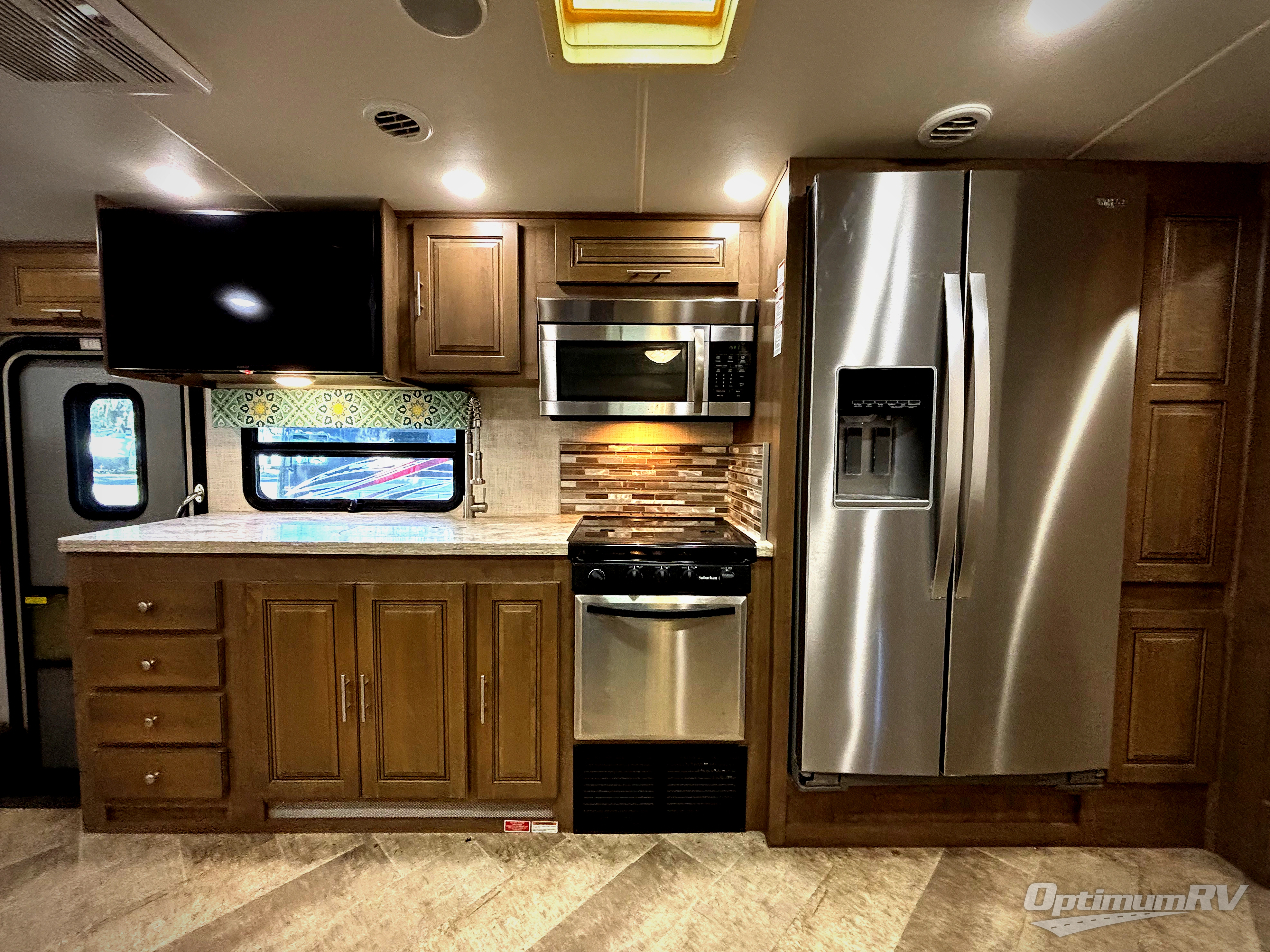 For comfort and style you will want a Forest River Georgetown 5 Series GT5 class A motor home. Along the exterior there is a "Super Storage" rear cargo compartment, an outside shower, as well as a stylish fiberglass front cap with lighted logo, LED accent lights and automotive bonded front windshield. As you step inside be prepared to be wowed from the stainless steel three-burner cooktop with oven to the solid surface countertops. In the cockpit there is a custom dash with ABS side consoles, drink holdrers, and a 110V outlet/USB. You will also enjoy the convenience of the MyRV touchscreen with wireless technology and more!