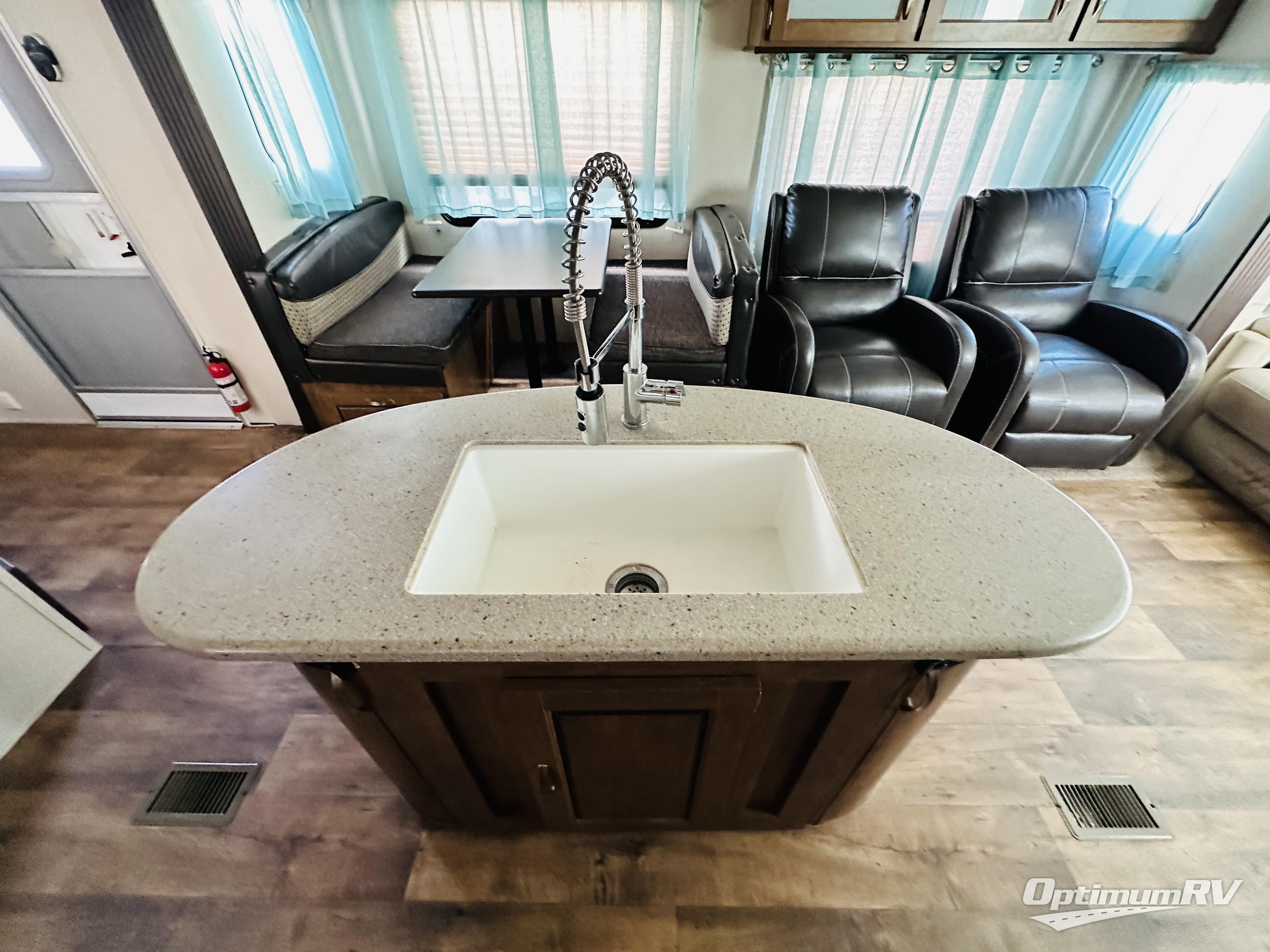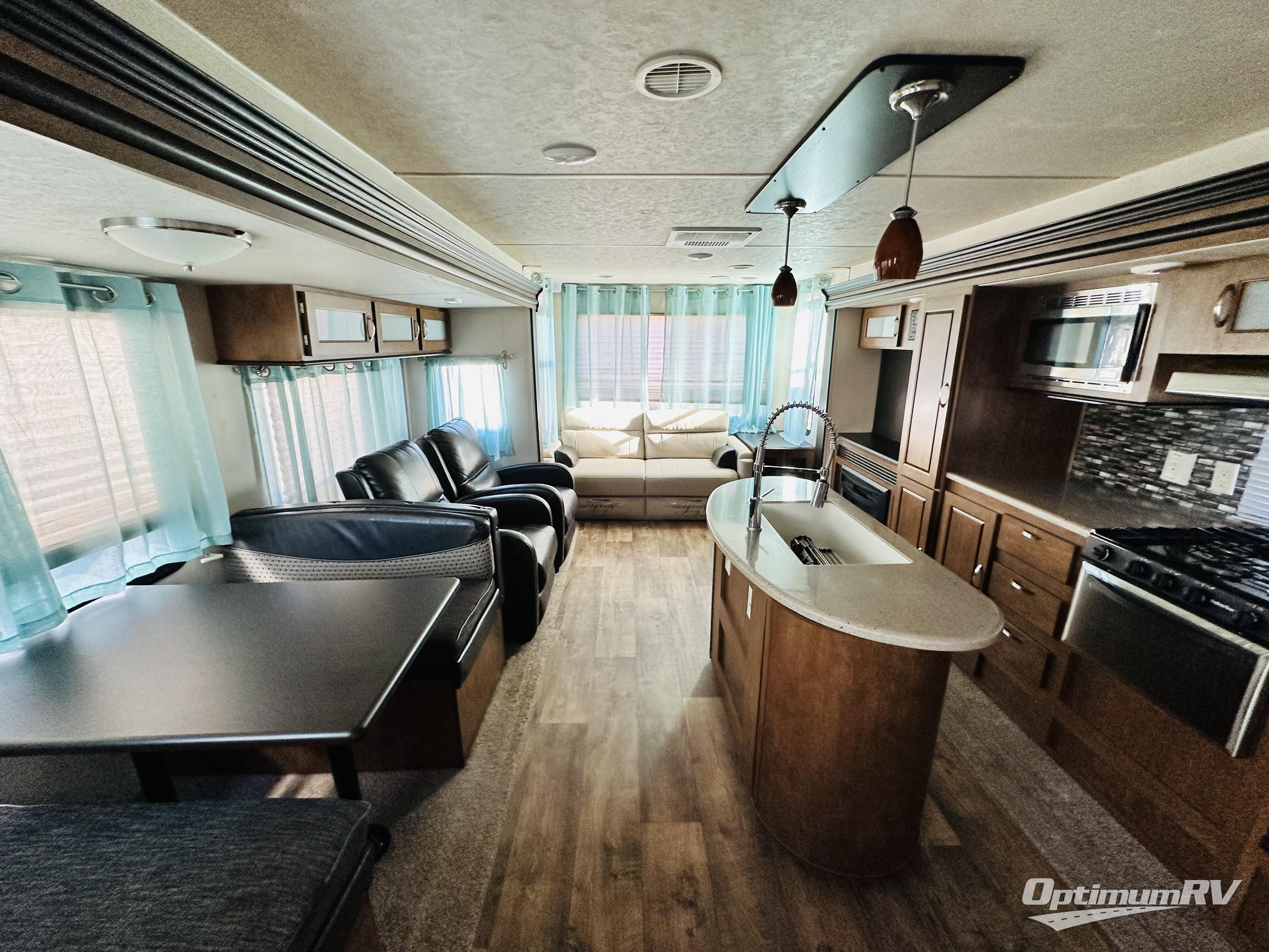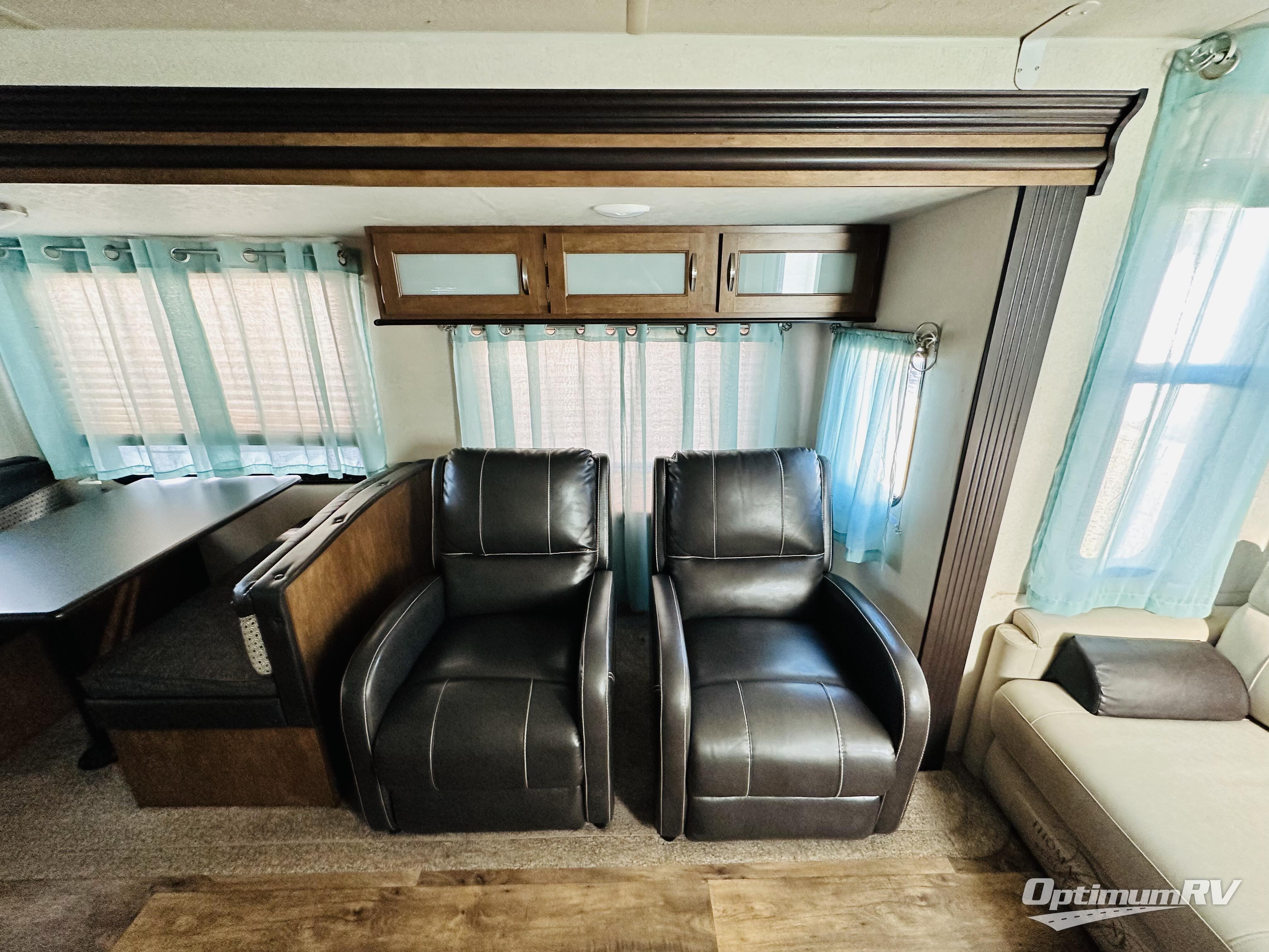 Come start your next camping trip with comfort and ease when you have this 27REI travel trailer by Forest River. This Salem model features dual opposing slide outs which help to open up the floor space. Along the rear wall there is a Jiffy sofa or you can choose an optional hide-a-bed. More seating can be found at the two recliners and dinette within the curbside slide out. In the evening you can have a fire in the fireplace while you watch TV at the entertainment center. Everything that you need to create your meals can be found in this kitchen from the three burner range to the island with a double sink. Outside there are two awnings - 9' and 11' which helps to provide as much shade as possible for you!