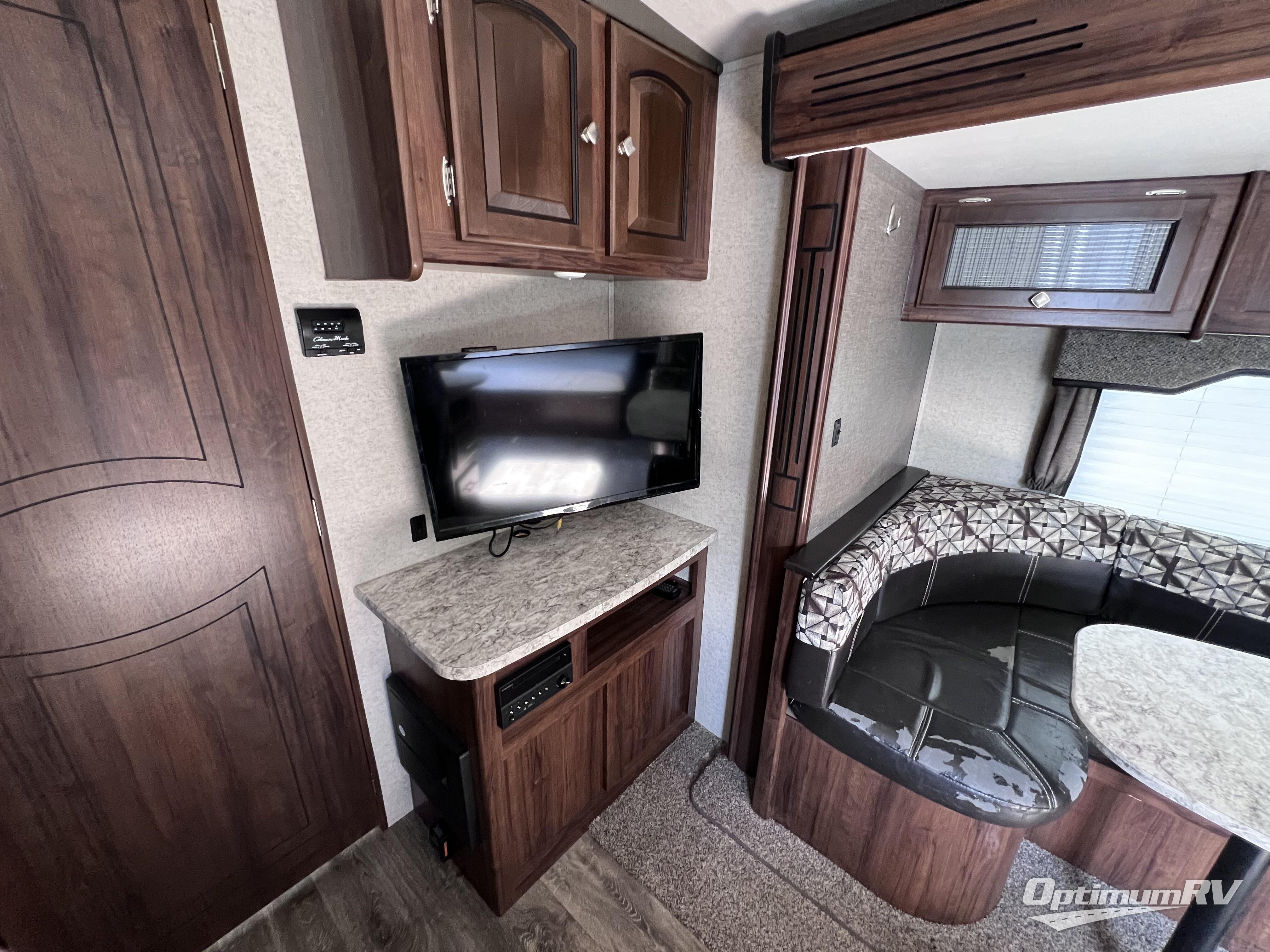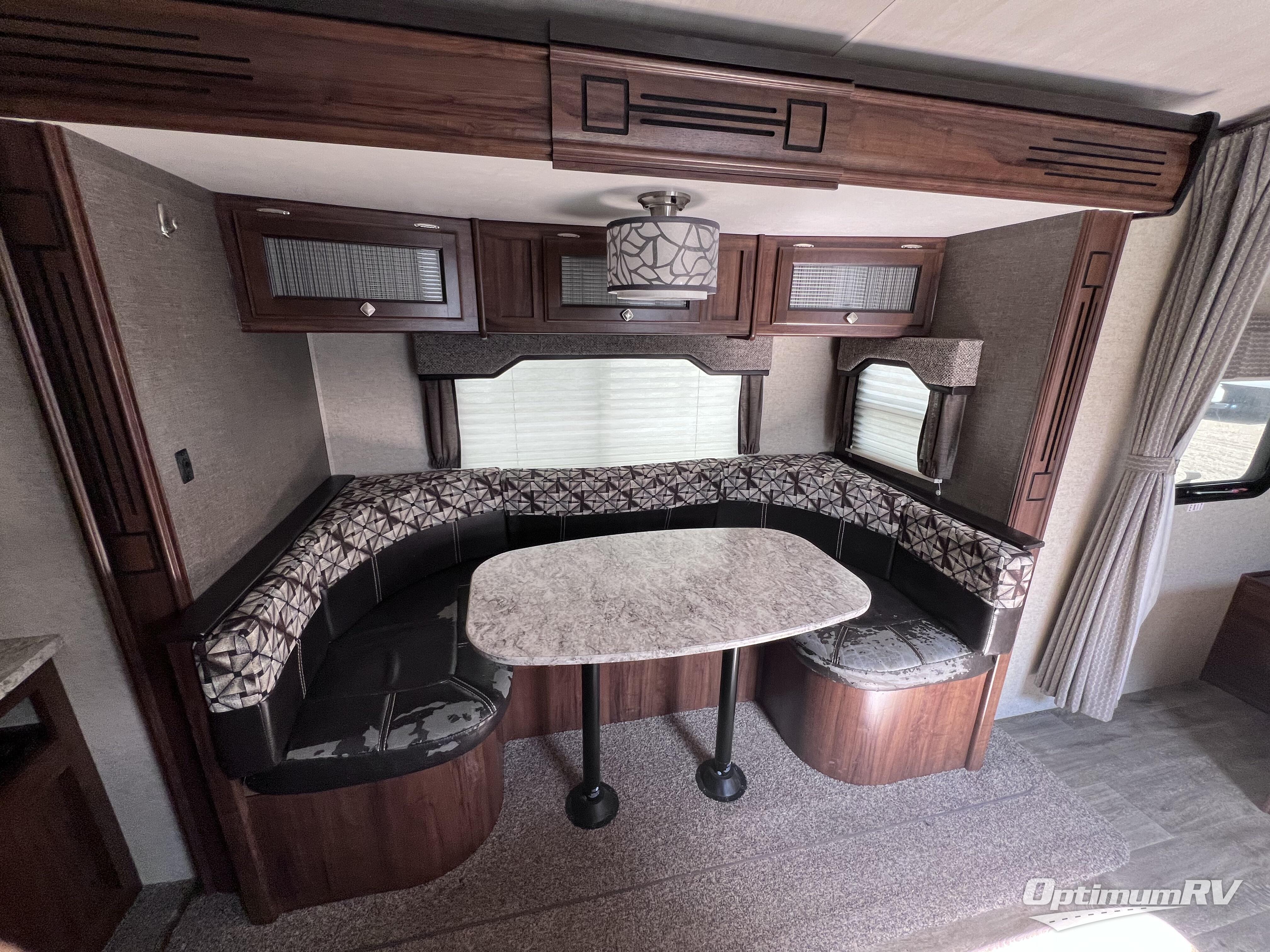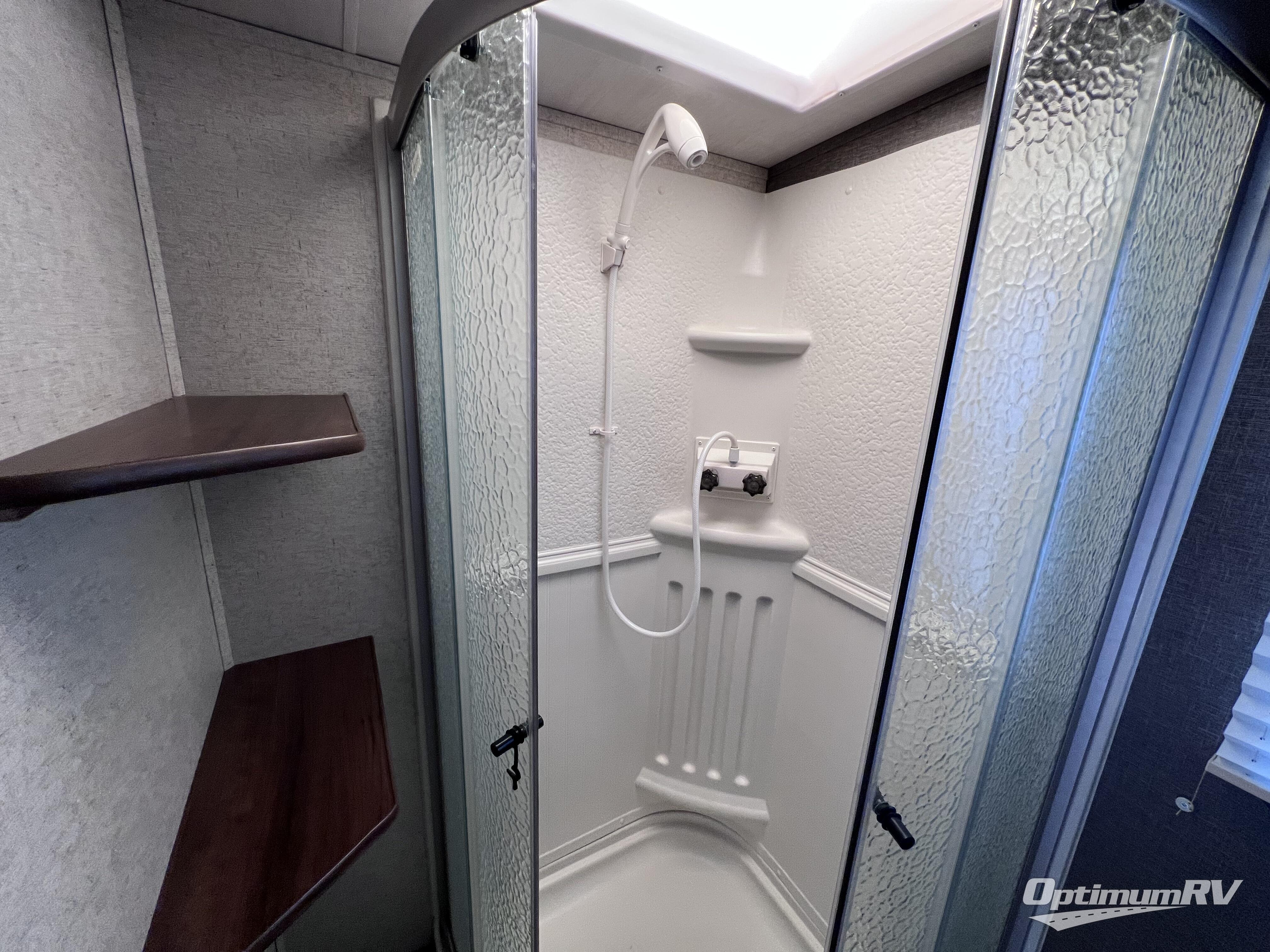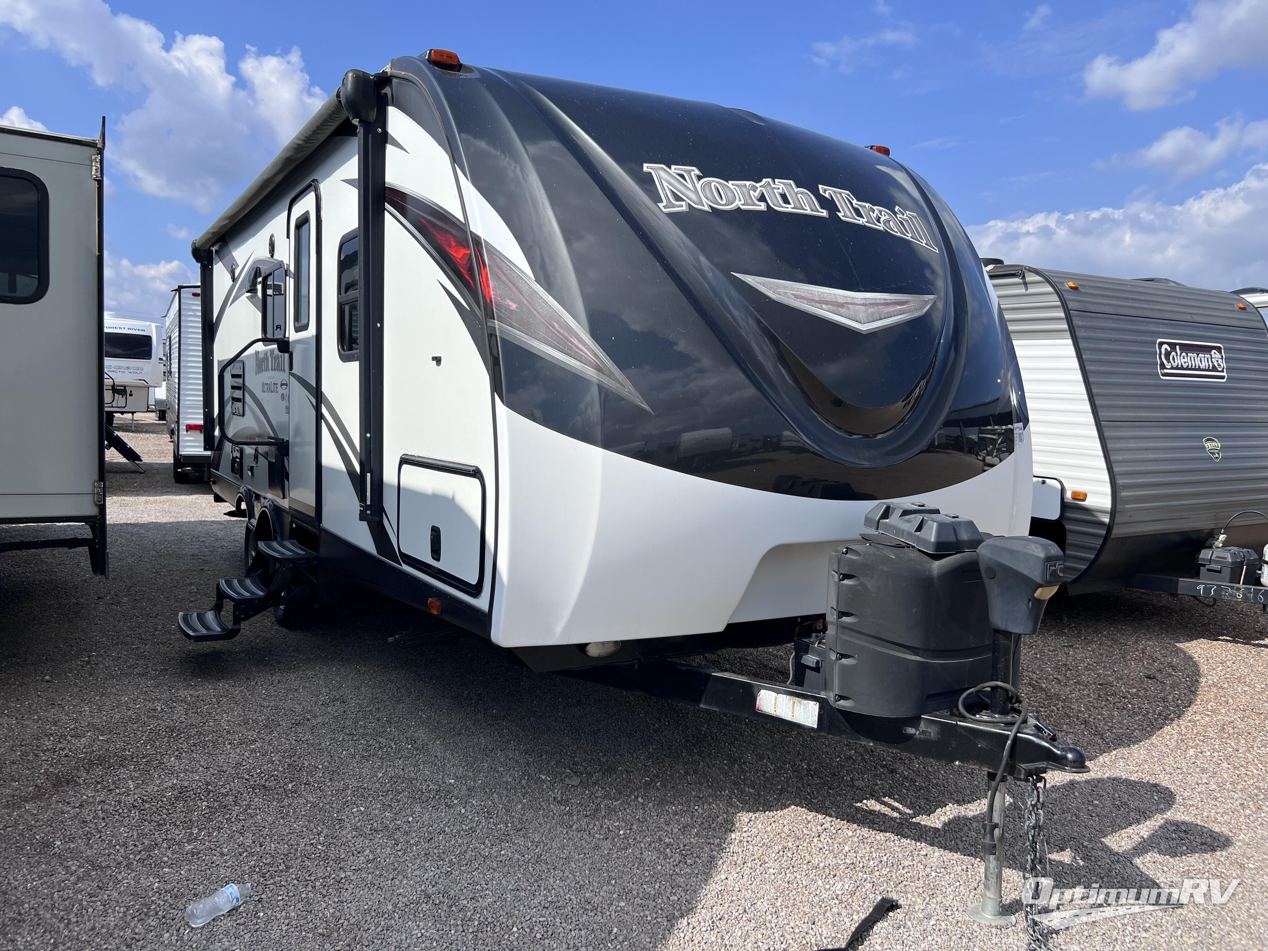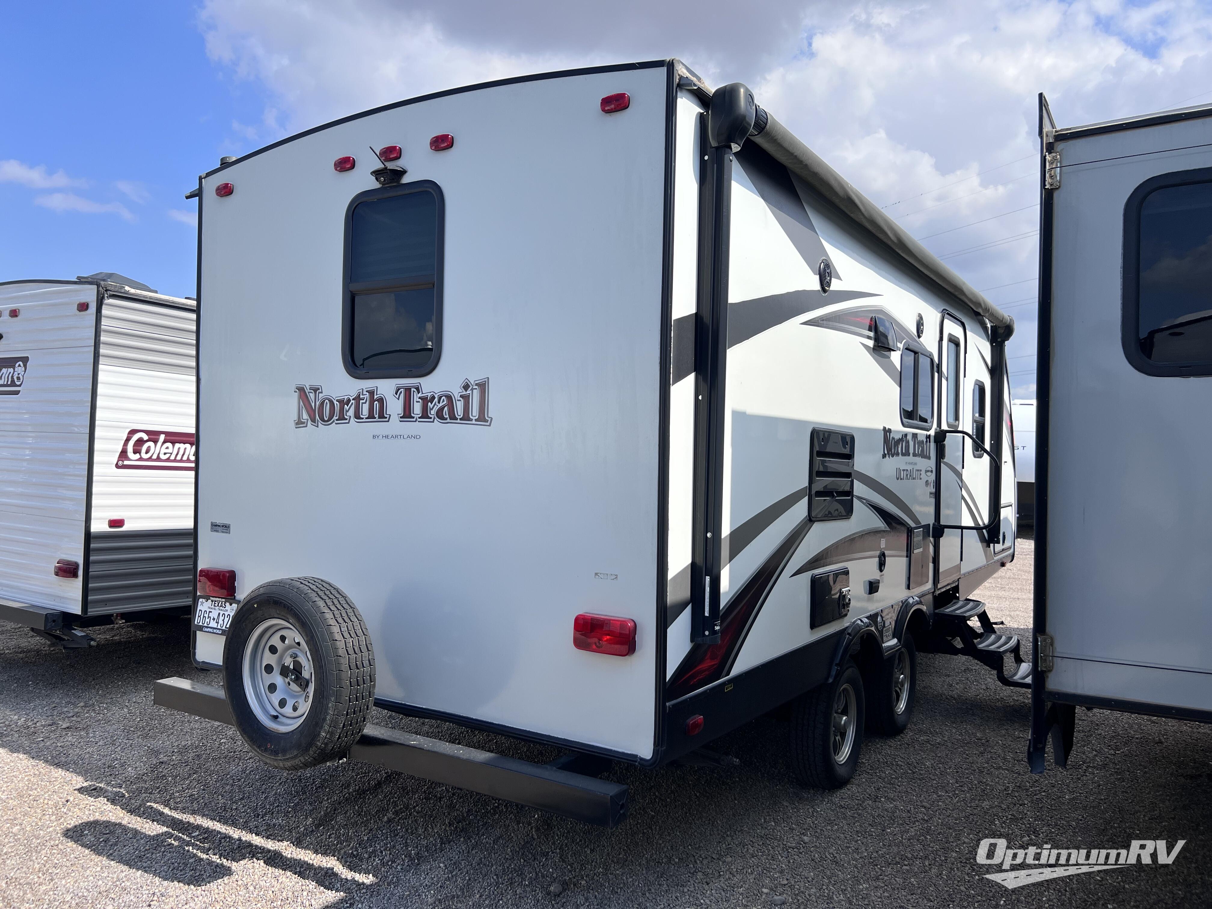 This North Trail travel trailer 21FBS by Heartland RV has everything a couple needs to make camping enjoyable such as a queen bed, u-shaped dinette, and rear full bath including sleeping space for four if taking along two more!
