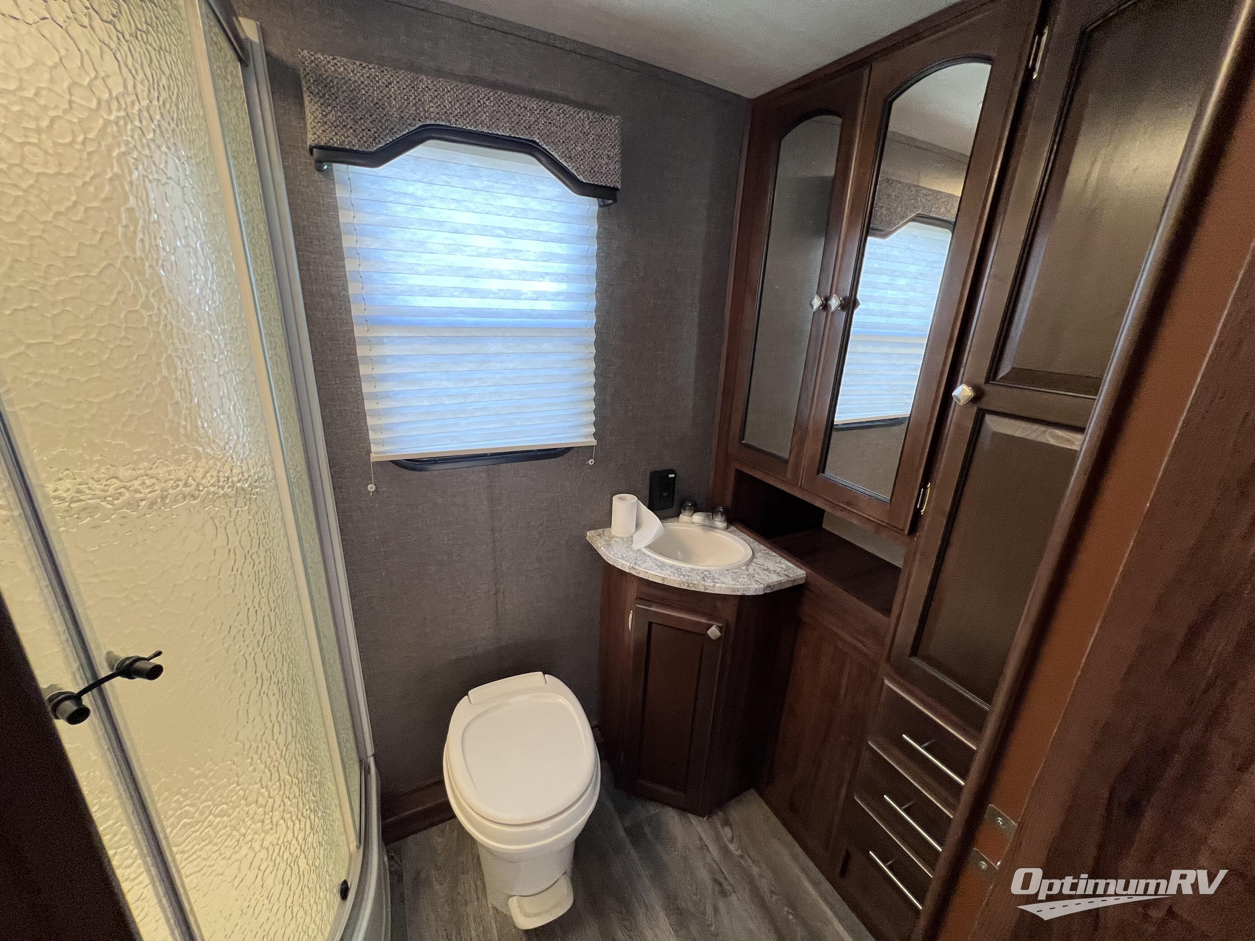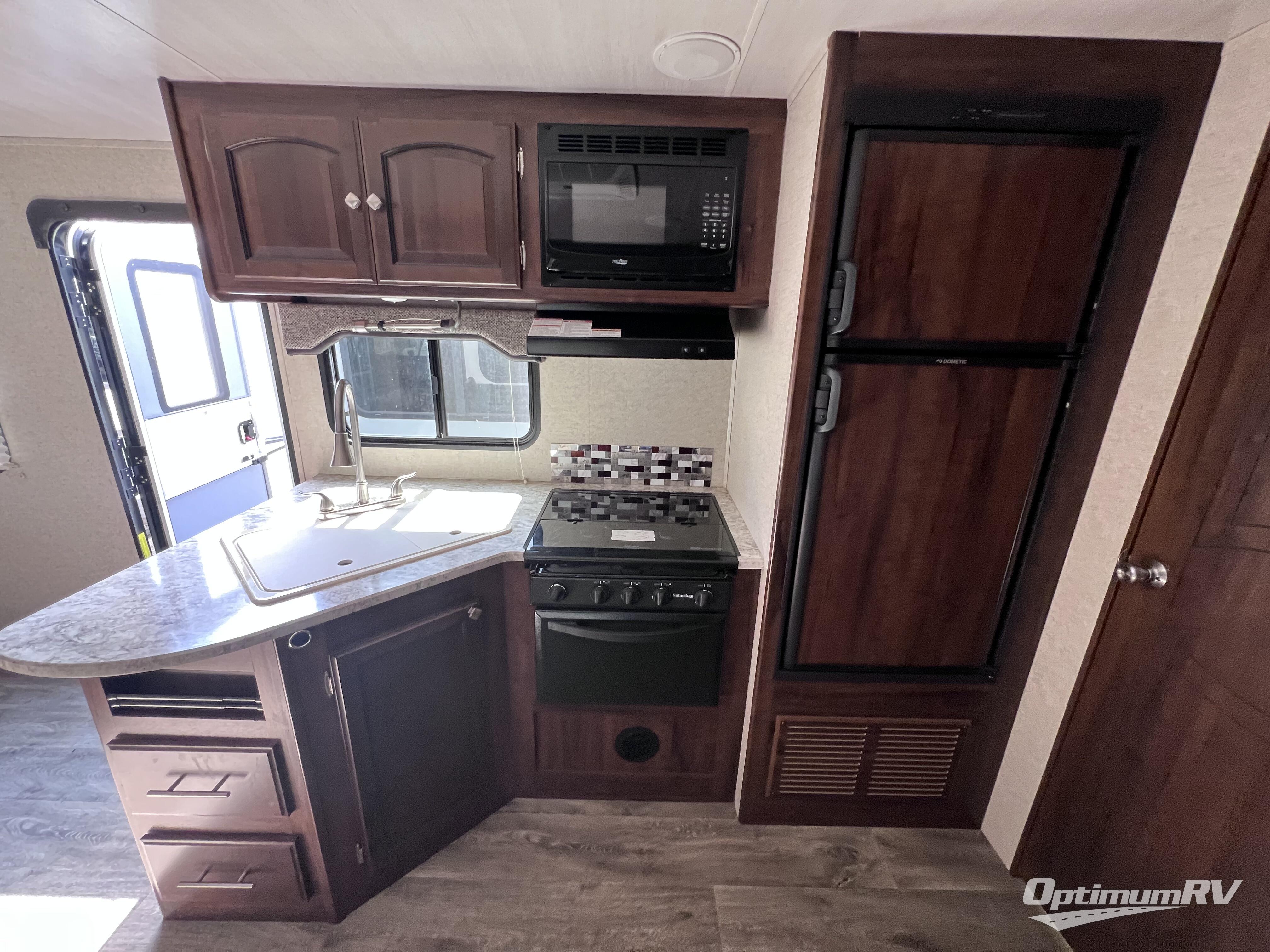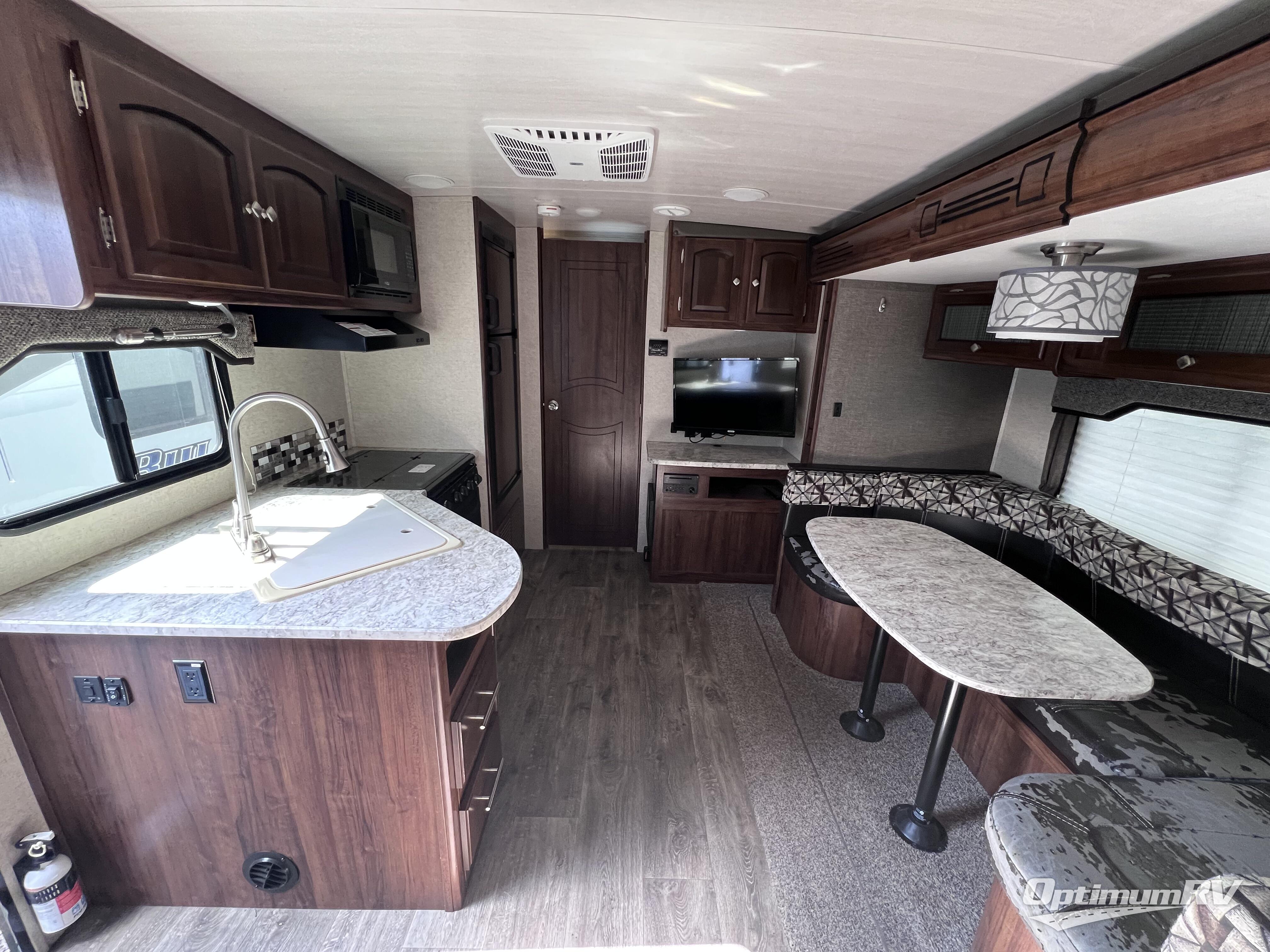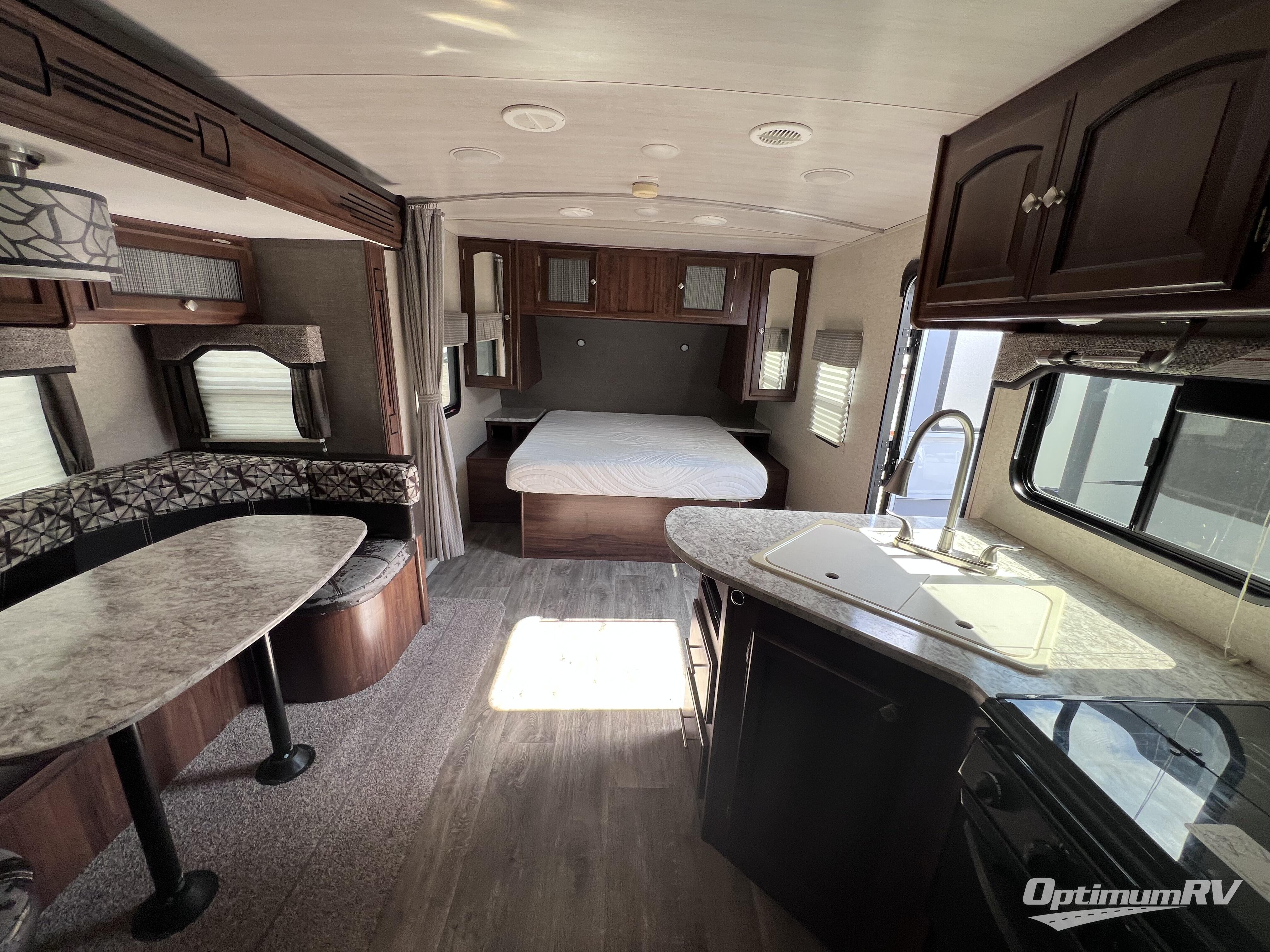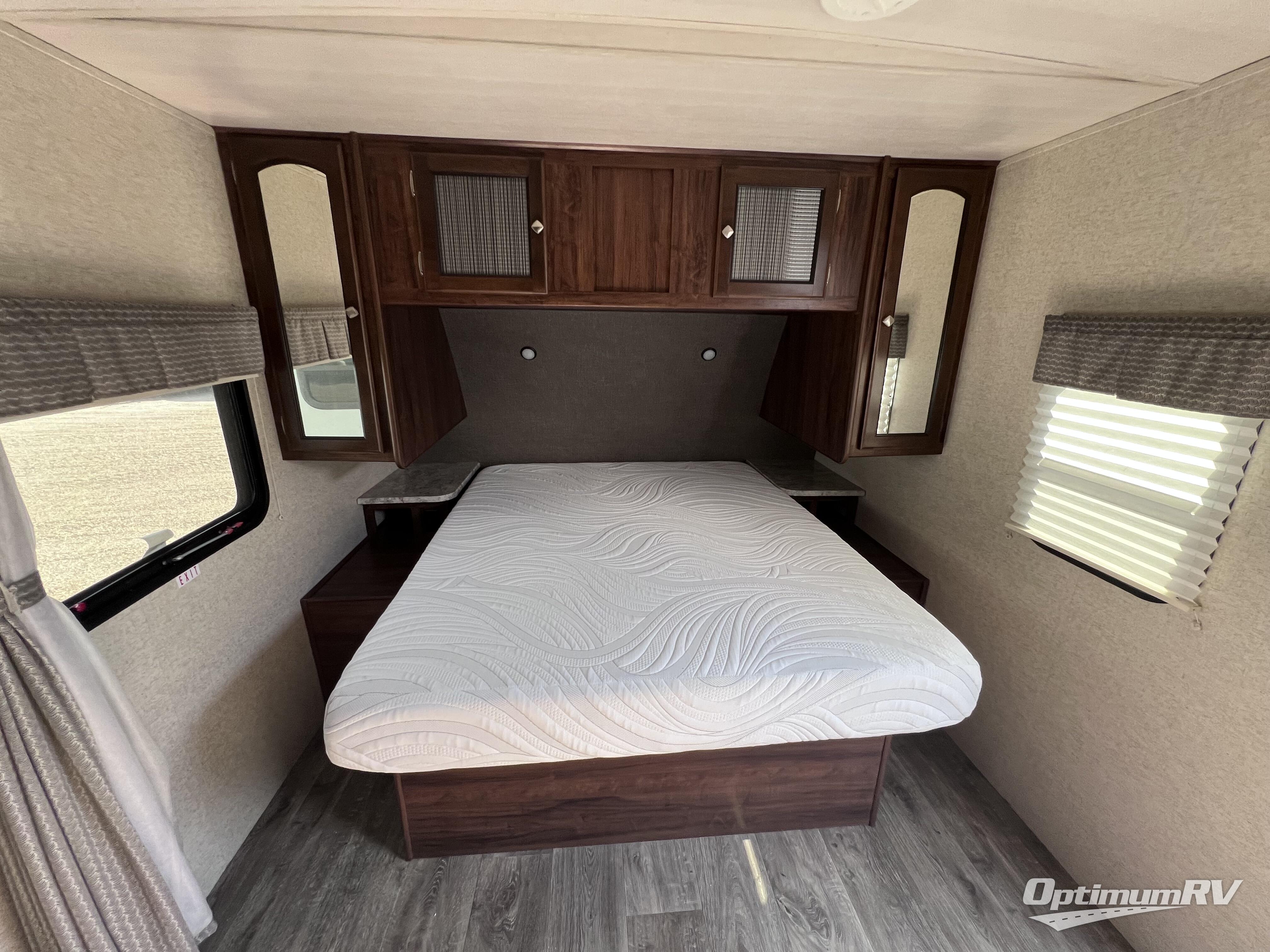 This North Trail travel trailer 21FBS by Heartland RV has everything a couple needs to make camping enjoyable such as a queen bed, u-shaped dinette, and rear full bath including sleeping space for four if taking along two more!