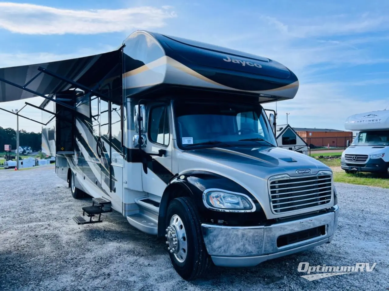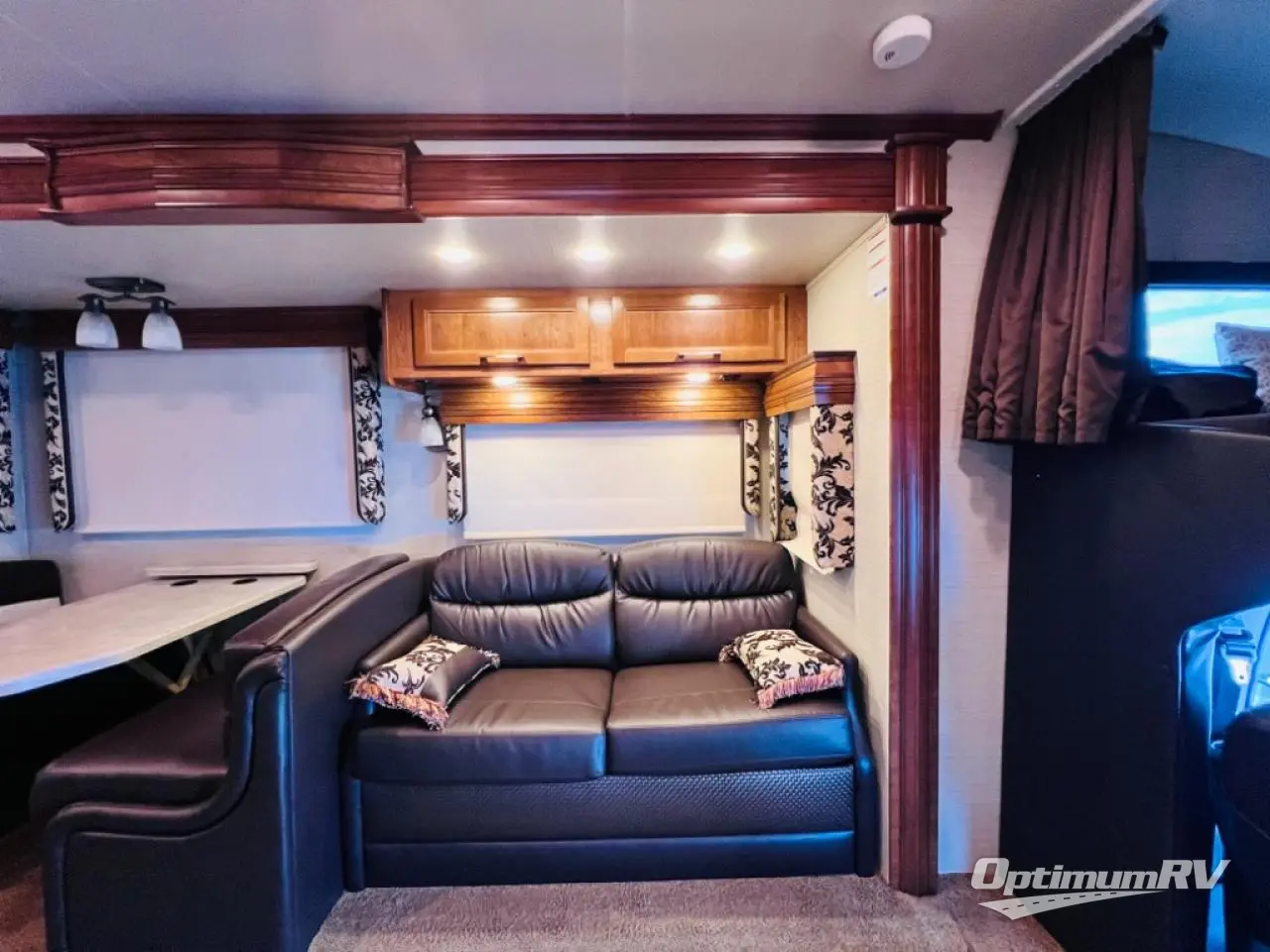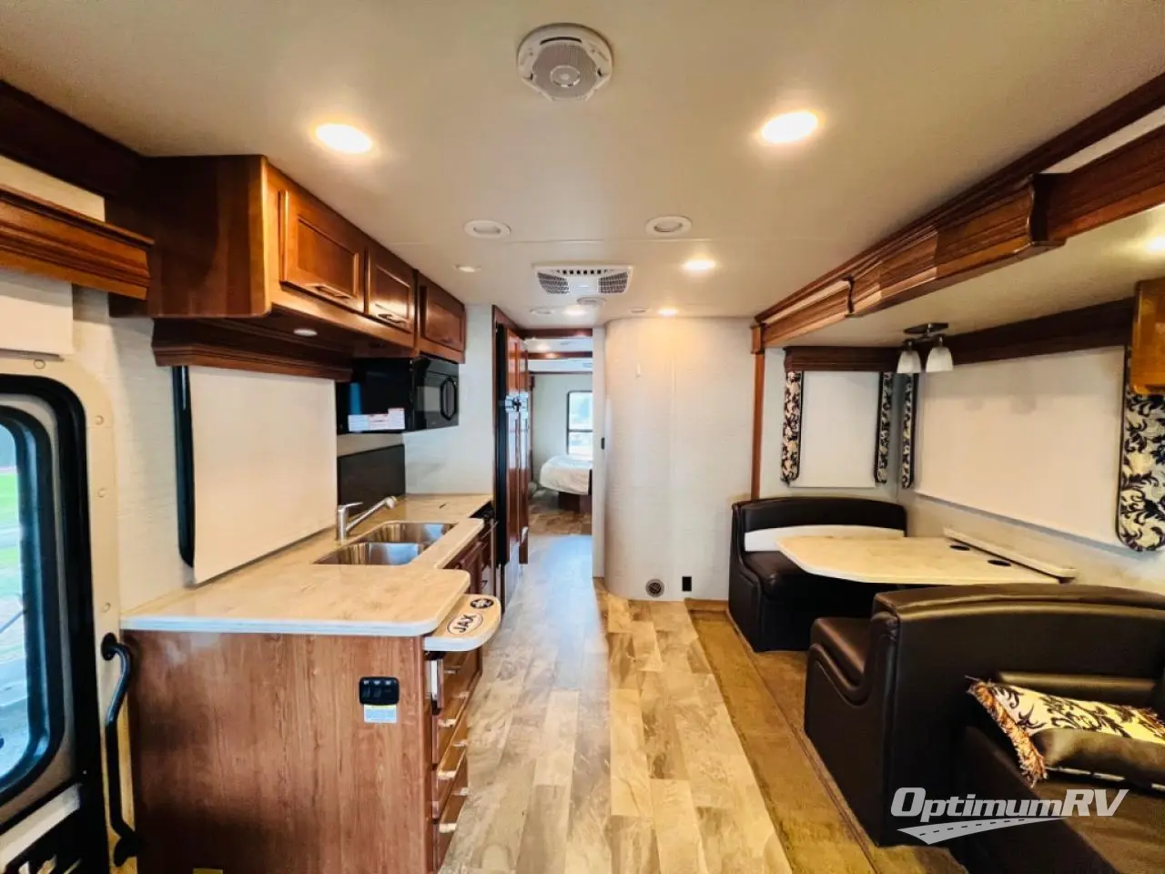 Get ready to head out to your favorite campground in style and comfort with this double slide out Seneca 37FS class C motor home by Jayco. There are plenty of sleeping arrangements in this model from the rear king bed, the bunk beds along the curbside, to the front cab-over bunk, plus both the dinette and the hide-a-bed sofa convert into additional sleeping space. In the evening you can enjoy a fire in the fireplace while watching your favorite show at the 39" TV. The 14' awning provides plenty of shade during the day, and outside you can also enjoy the exterior entertainment center and more!