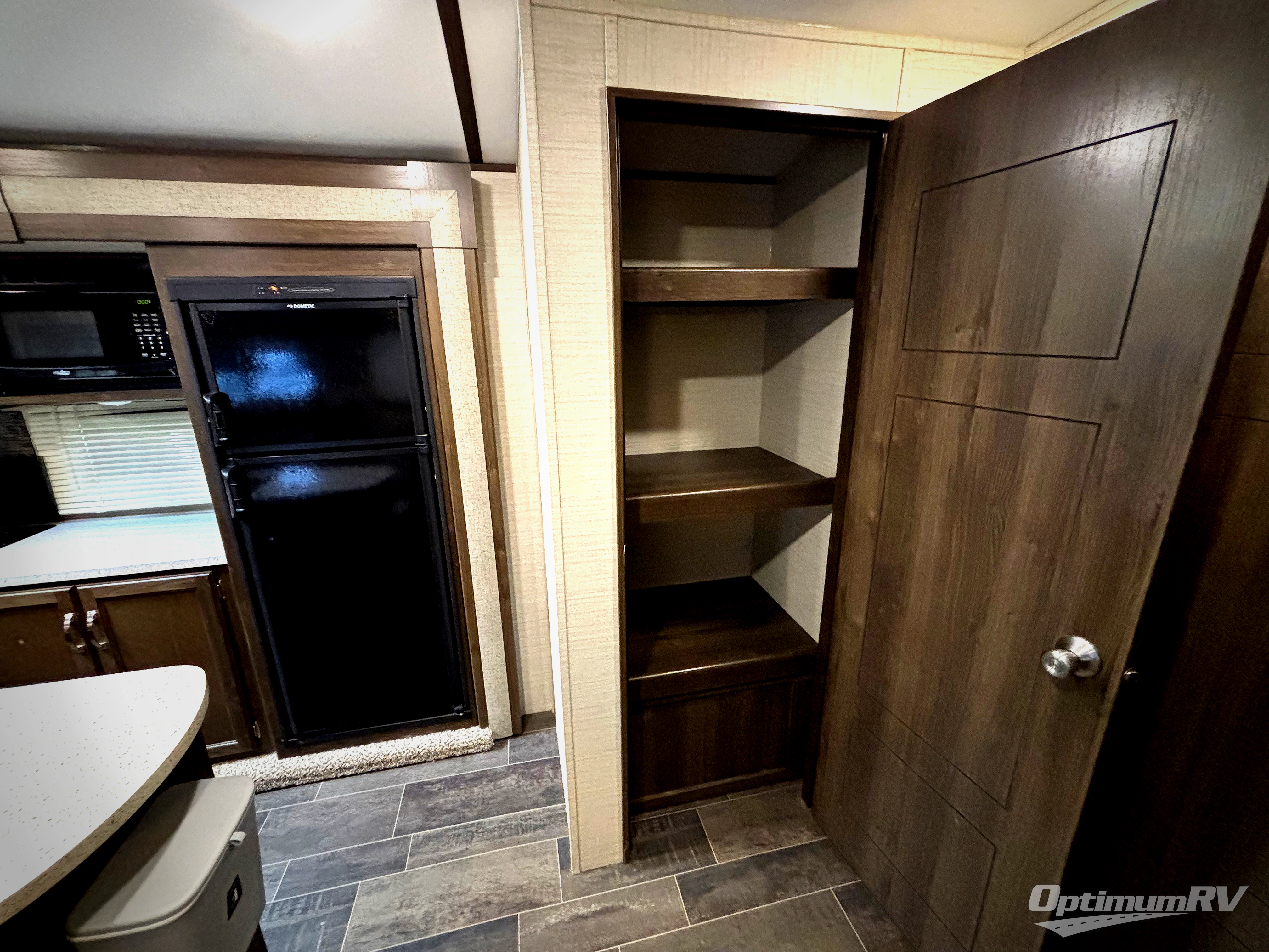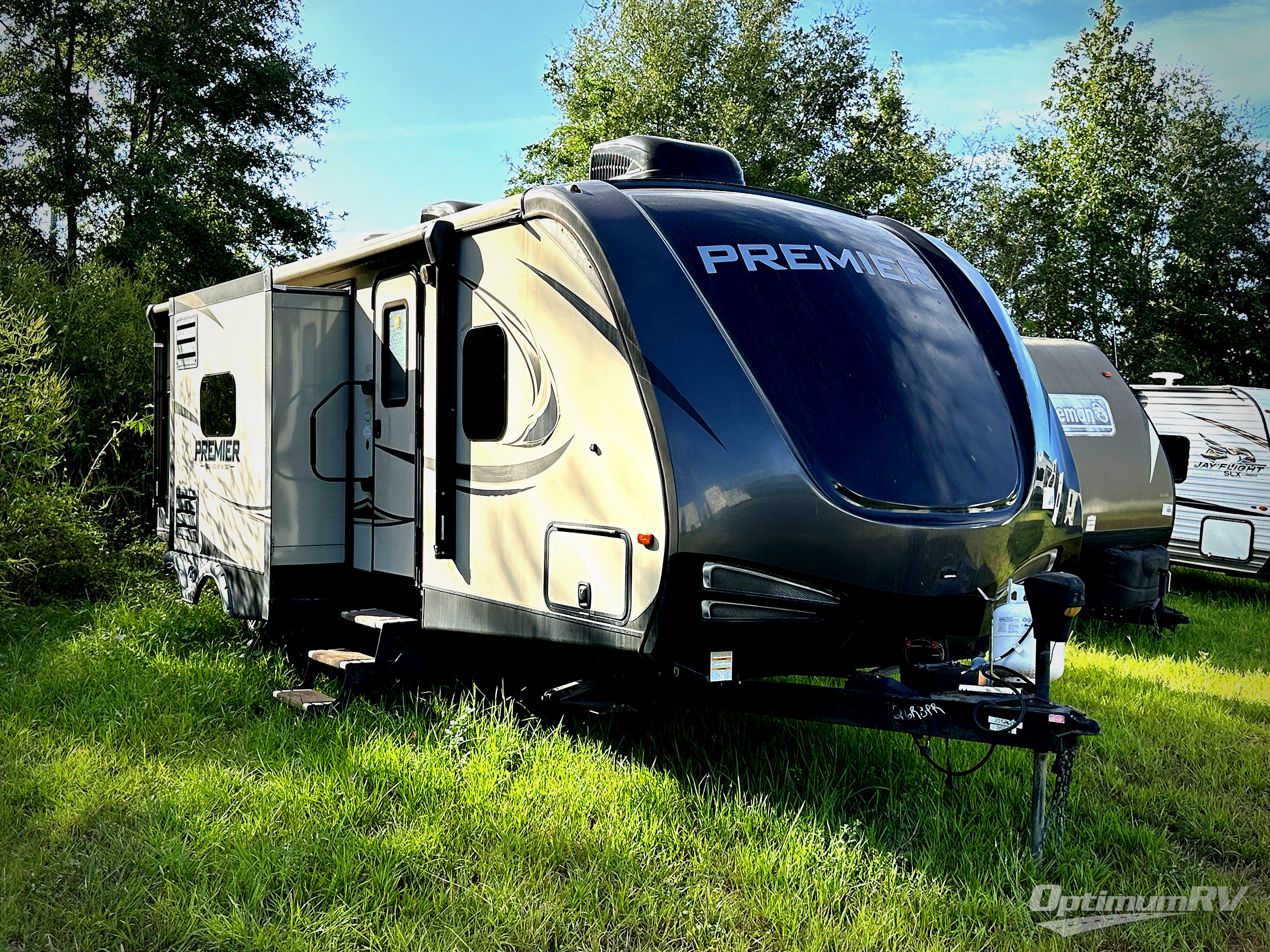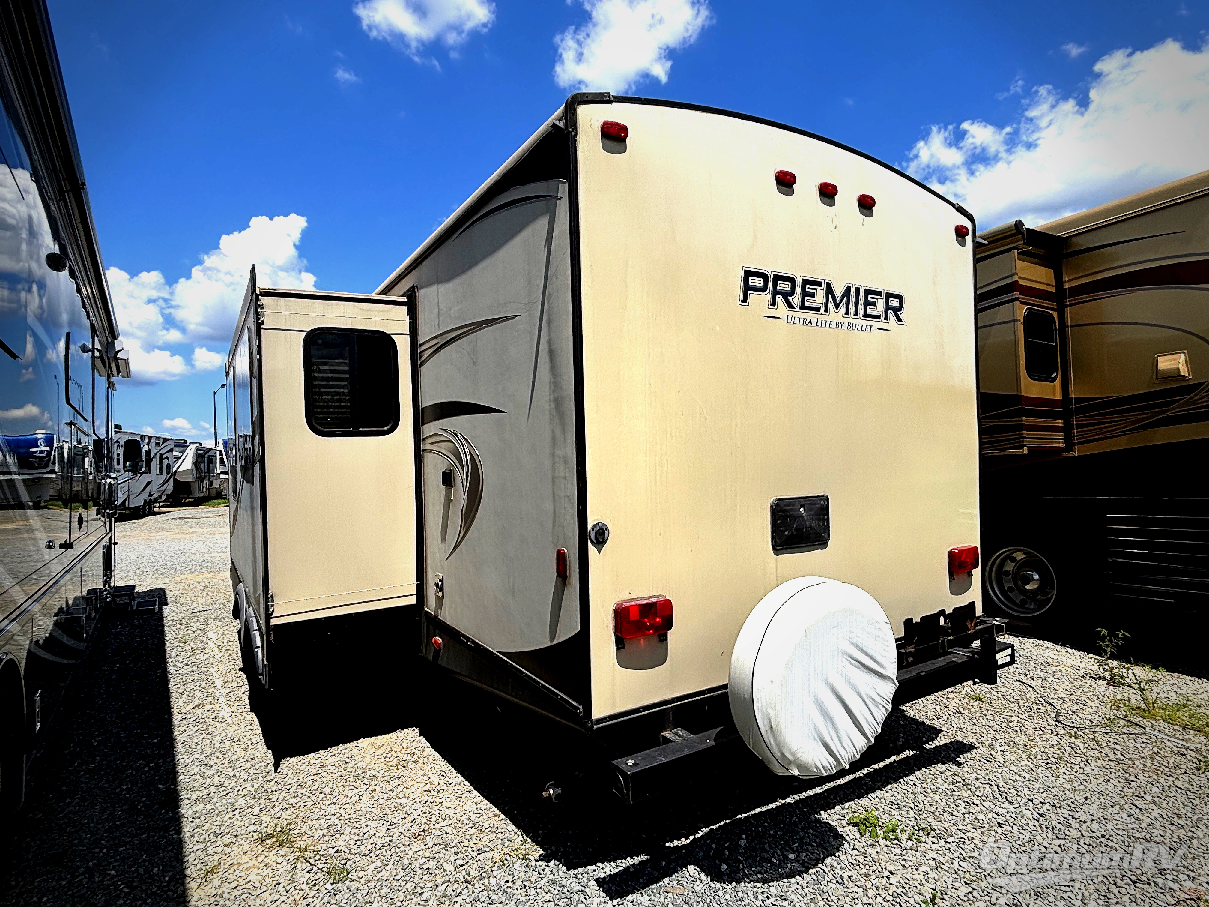 When you take your next trip across the country in this Premier Ultra Lite travel trailer, you will see for yourself what truly sets this trailer apart from all others. With its max-depth slide room technology, you get the most utilized and available space possible in the two slides that this trailer provides, which also gives this unit a beautifully open living area, and because of the large closets and pantries, this trailer also aids all of your storage needs. The private bedroom is a wonderful place to escape after a long day of traveling, and the outdoor kitchen allows you to take your dinner preparations into the fresh air.