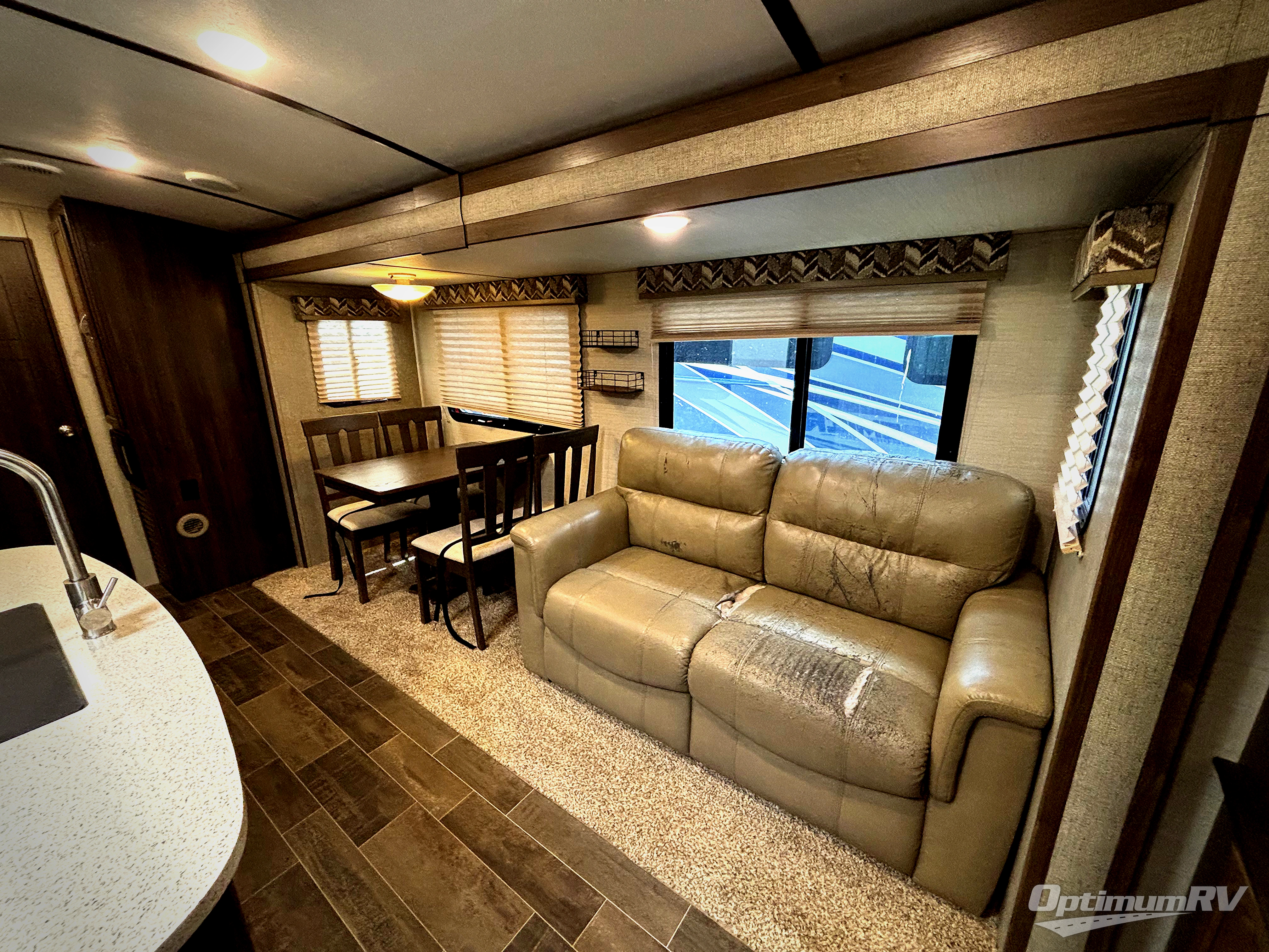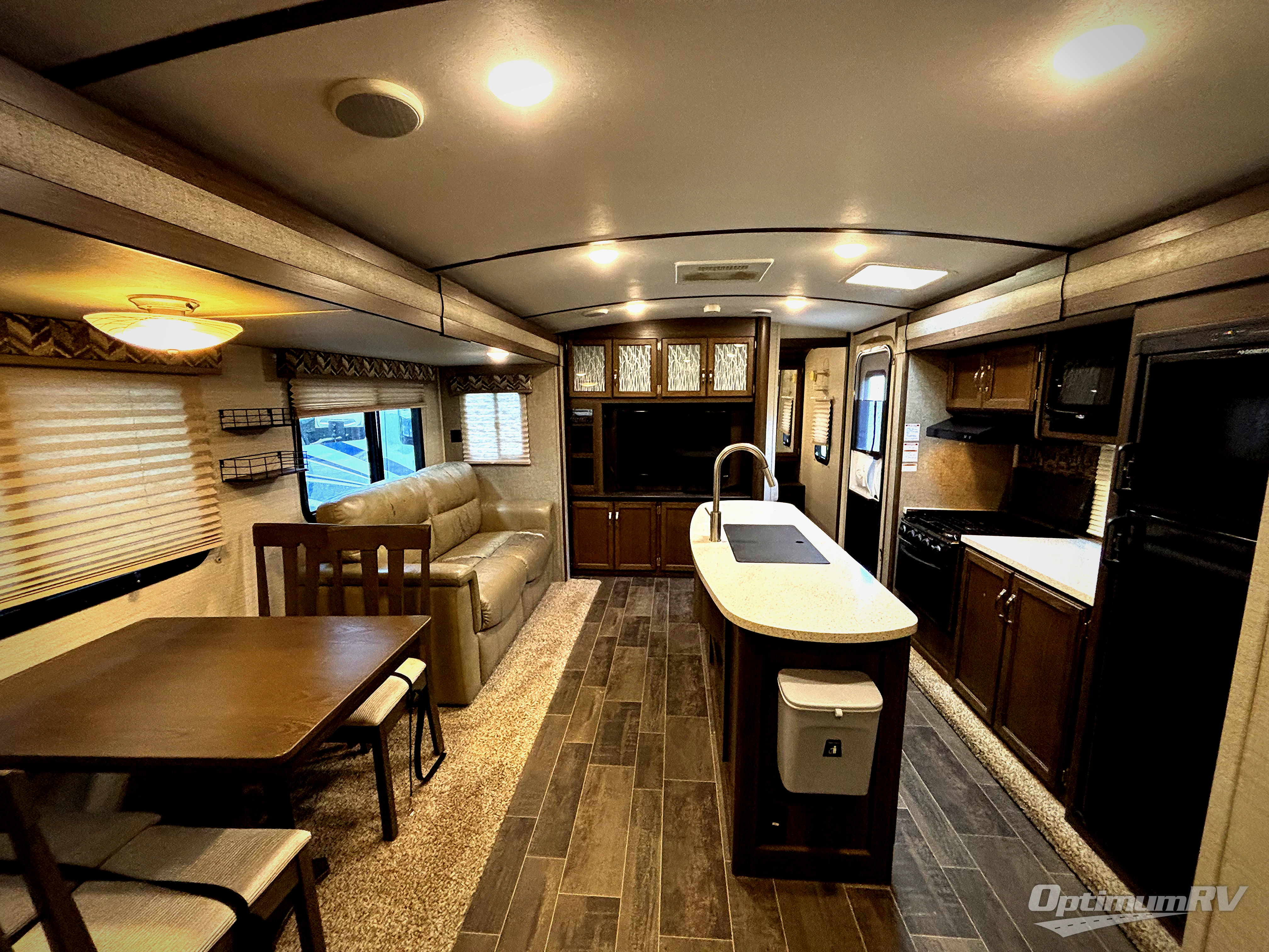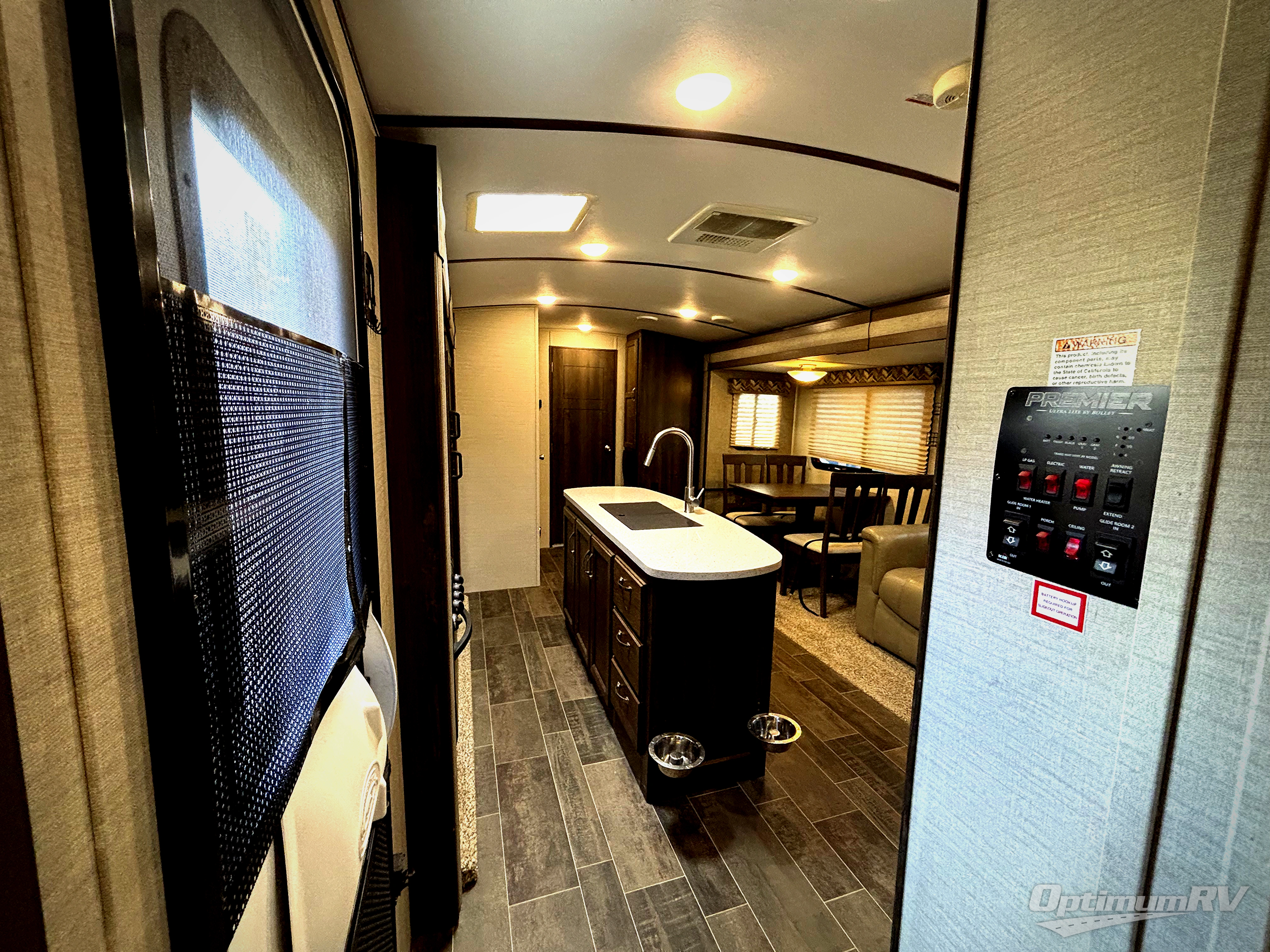 Because of the innovative and modern approach that Keystone has taken with the construction of the Premier travel trailer, you receive a unit that is both functional and comfortable. The residential in-floor heating system gives the stain-resistant Beauflor linoleum flooring a warm and cozy touch, and the 6' 11" vaulted ceilings keep the entire trailer open and inviting to all guests. If you enjoy hosting late-night get togethers with those guests, then the outdoor electric awning with LED lights is a perfect spot for you and your friends to get together as you listen to your favorite music on the exterior speakers.