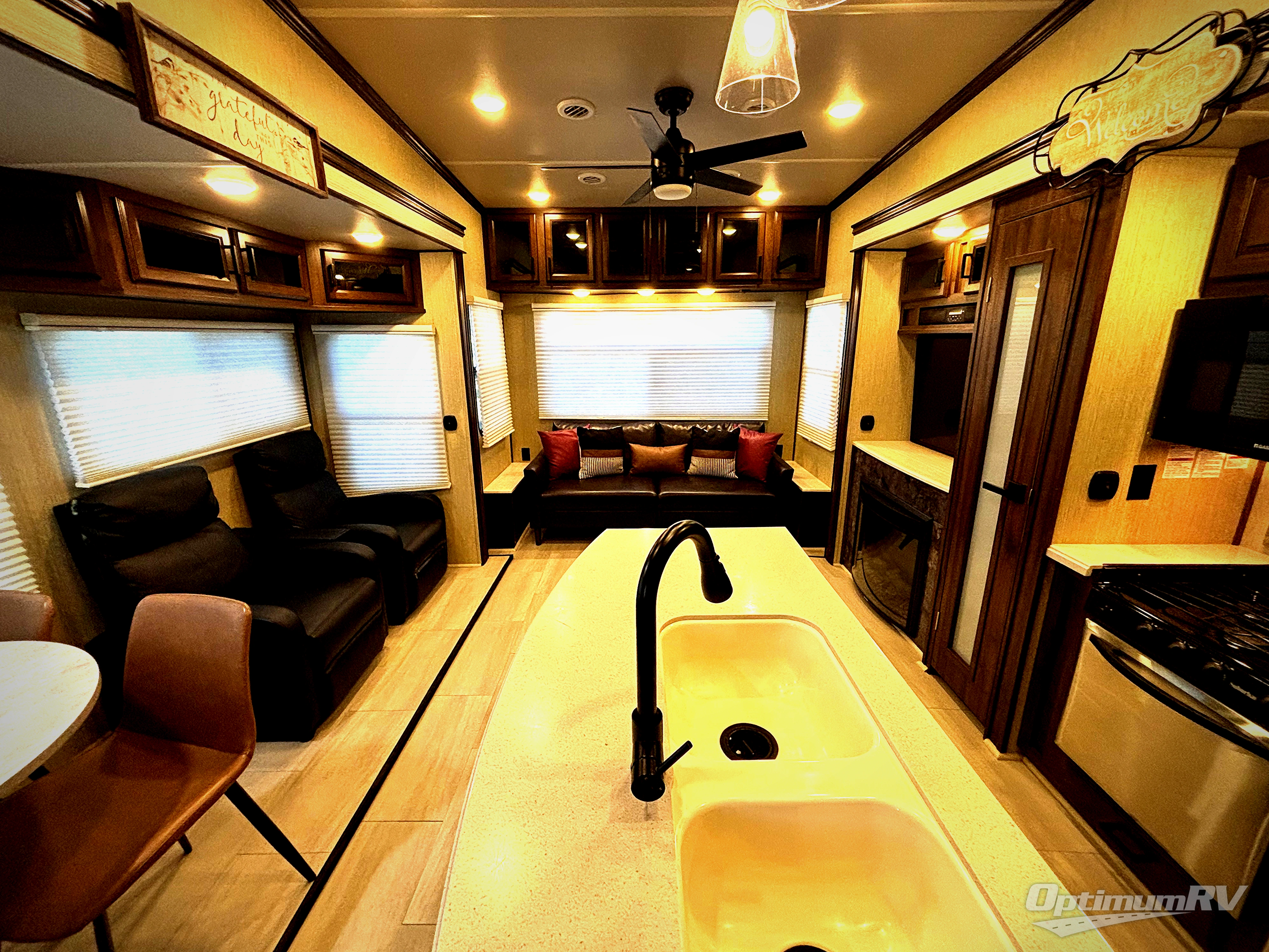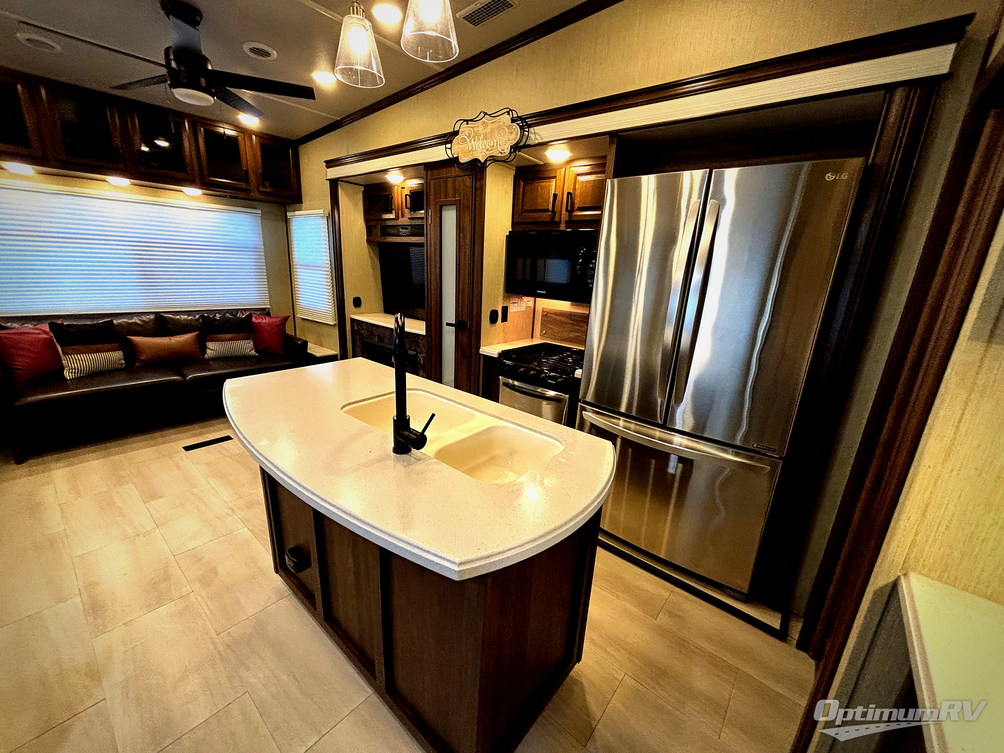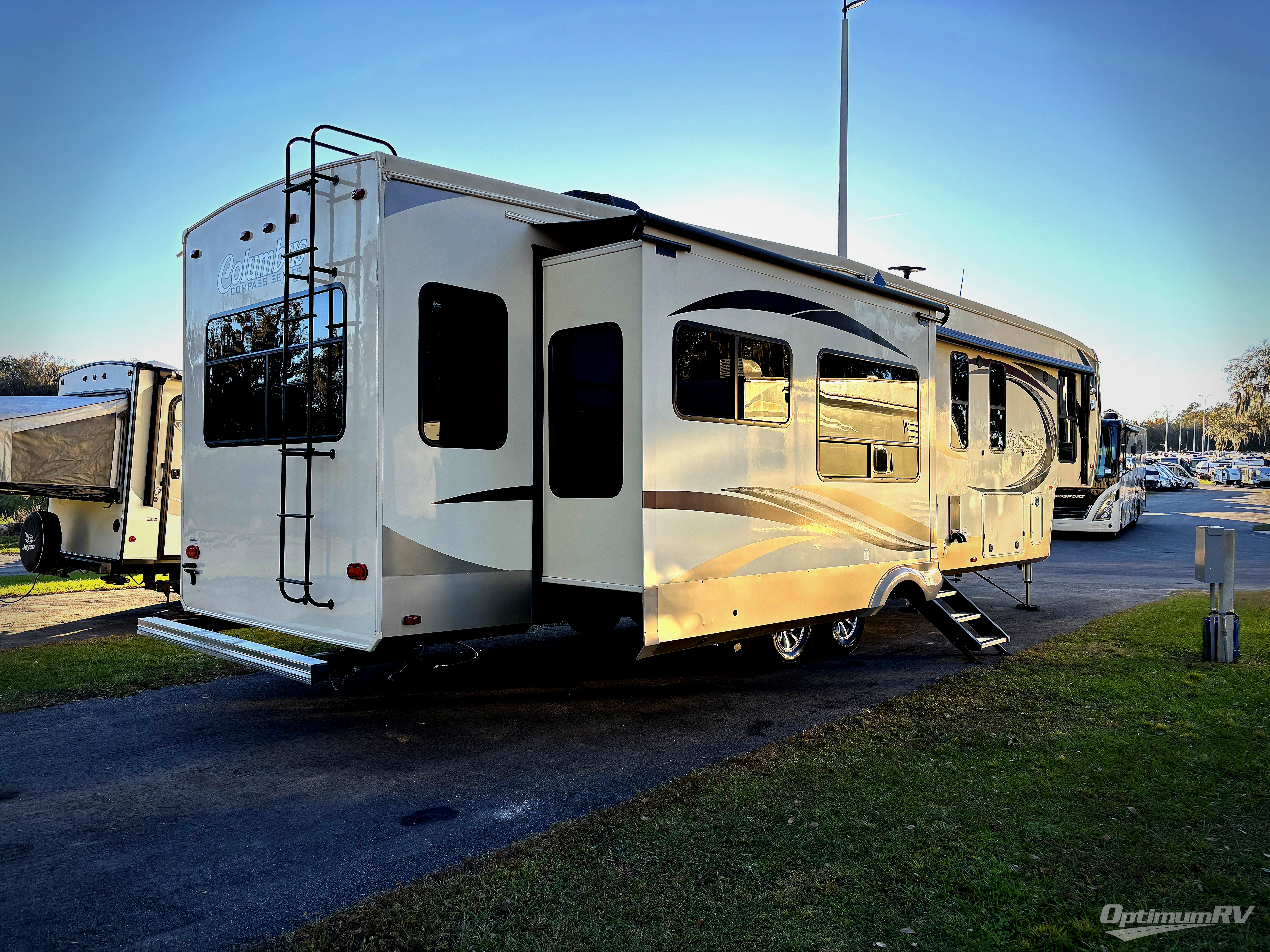 With any Columbus Compass fifth wheel by Palomino you can enjoy the finer things while exploring the countryside. Comfortable towing is provided by the E-Z Flex Dexter axles and E-Z Lube axles with Nev-R-Adjust brakes. You will appreciate the large double bowl undermount sink in the kitchen for easy clean up, the residential microwave for reheating leftovers, and the many upgraded features you will find in each model. Come see why owning a Columbus Compass fifth wheel is the correct choice for you!