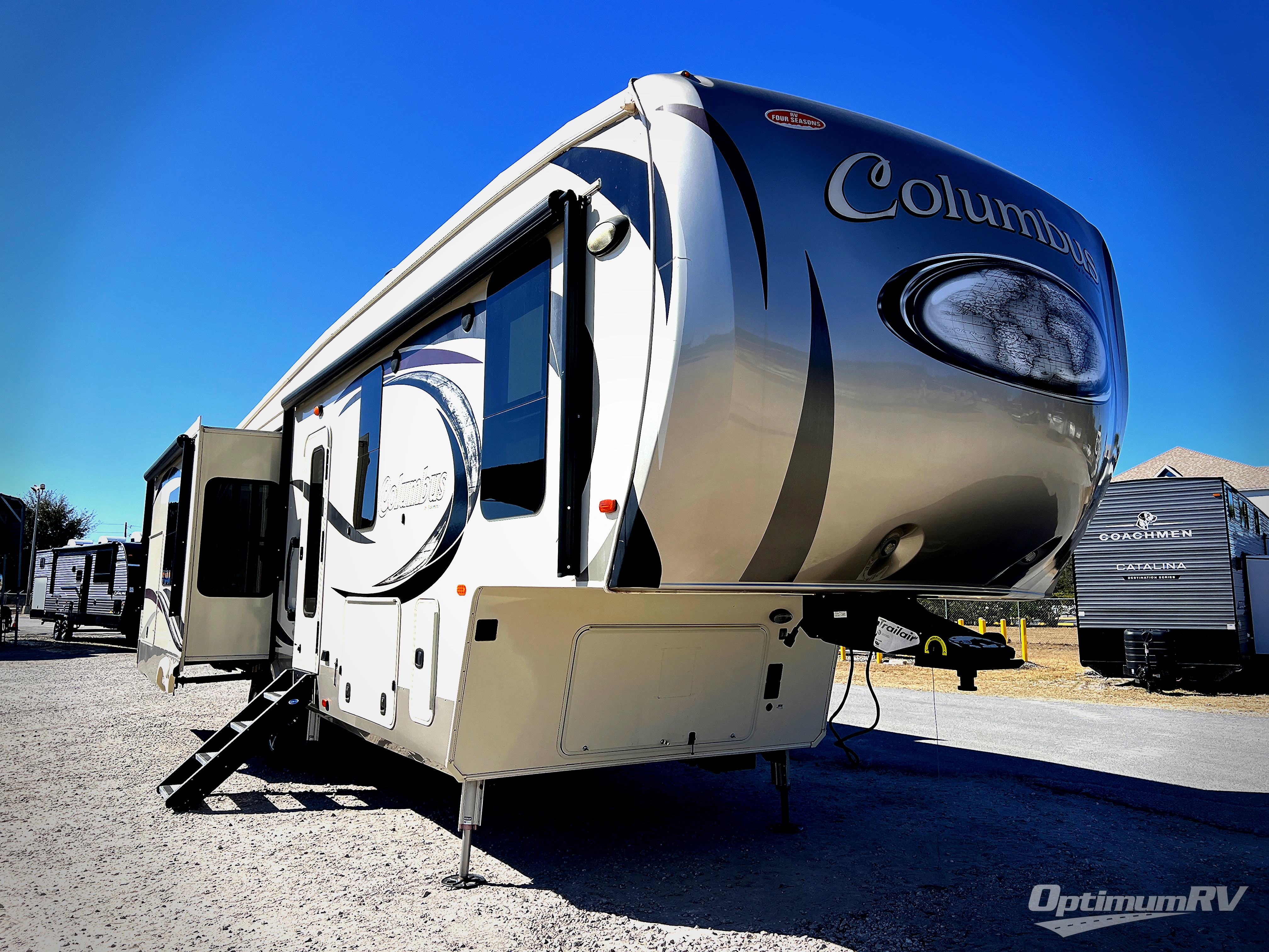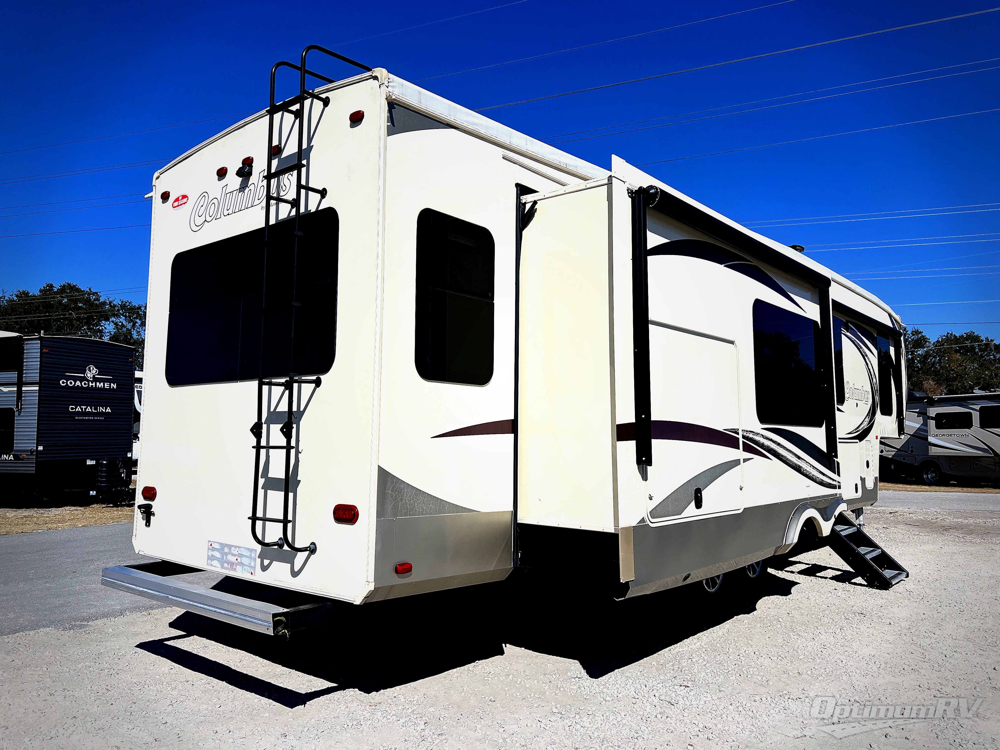 With any Columbus fifth wheel by Palomino you can enjoy the finer things while exploring the countryside. Comfortable towing is provided by the E-Z Flex Dexter axles and E-Z Lube axles with Nev-R-Adjust brakes. You will appreciate the cell phone/iPad charging station to keep the electronics charged the whole trip, the residential convection oven microwave for baking and reheating leftovers, and the many upgraded features you will find in each model. Come see why owning a Columbus fifth wheel is the correct choice for you!
