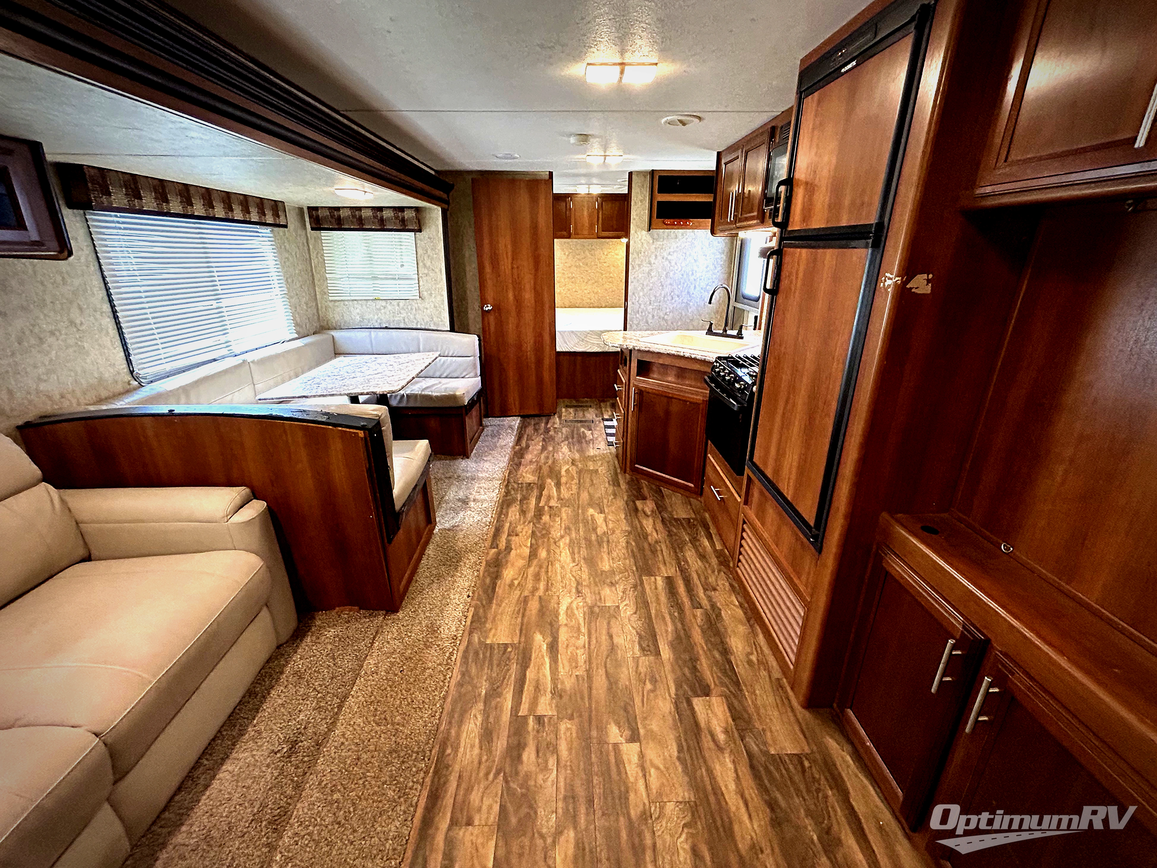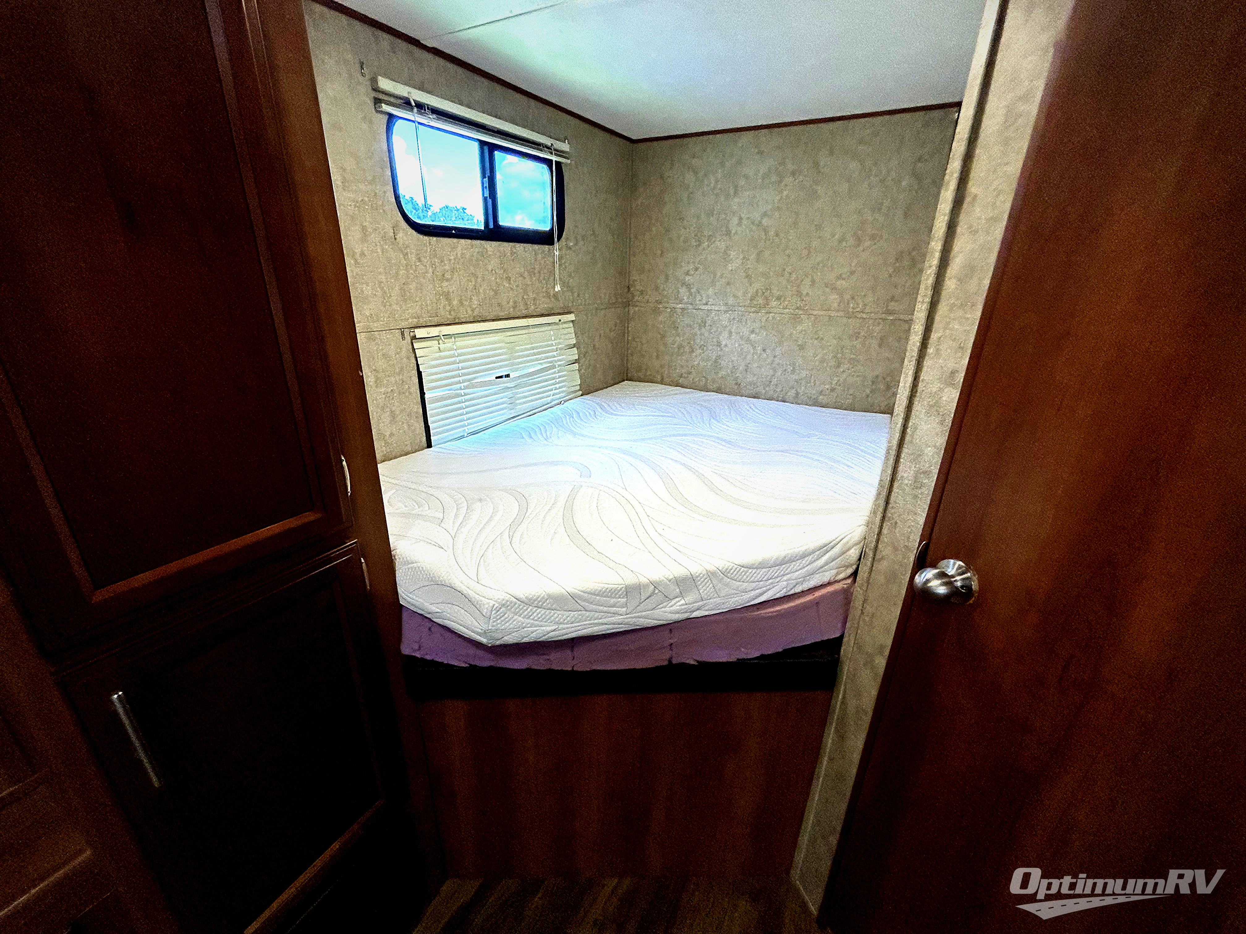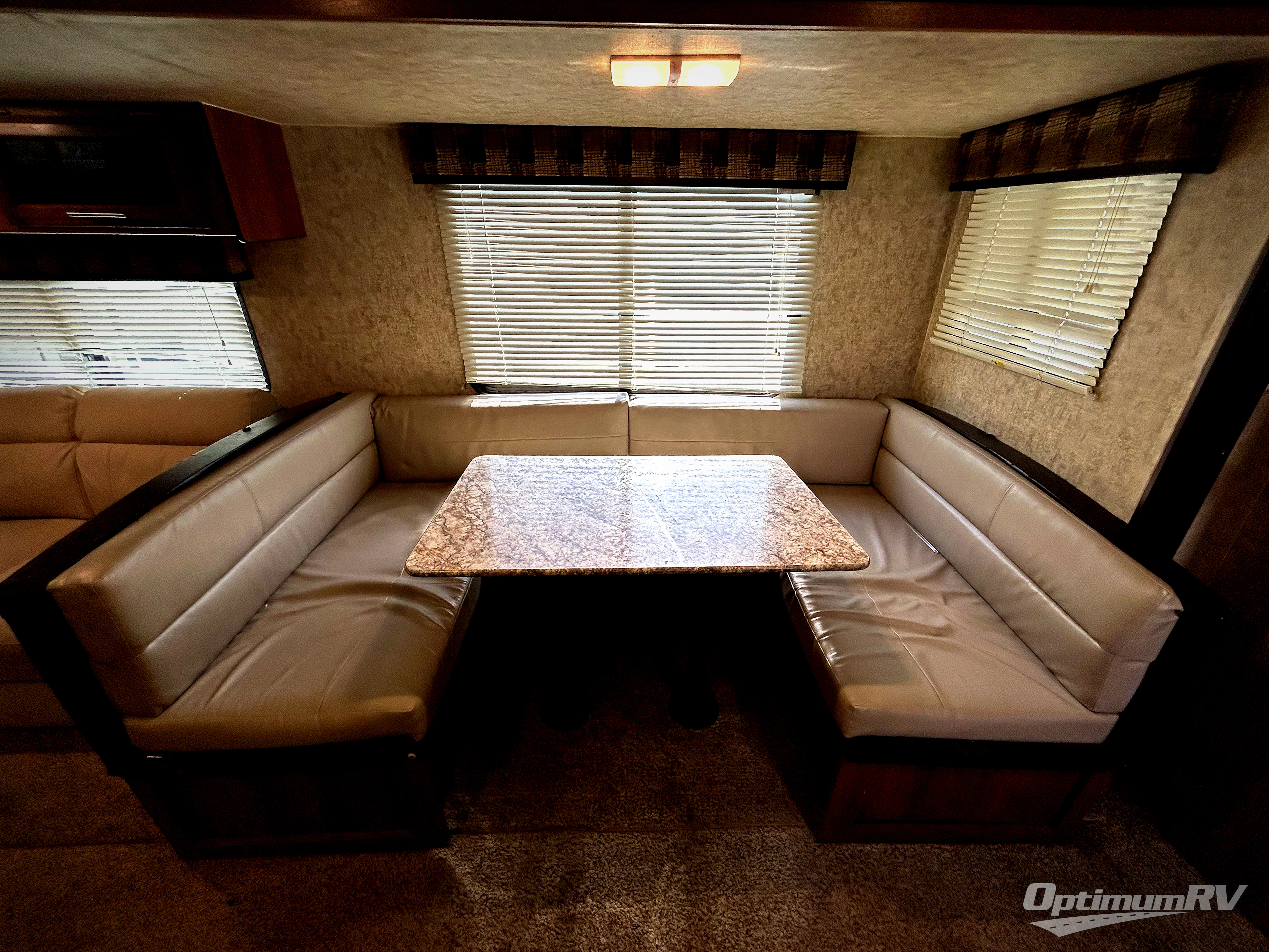 If you are a growing family that enjoys the comforts of home while away exploring at a state park, step inside this Prime Time RV Avenger ATI 27DBS travel trailer. You are sure to enjoy the entertainment center and 50" TV inside, and the exterior kitchen while cooking and visiting with other campers. From the slide out U-shaped dinette and sofa, to the queen bed in the private front bedroom, and the two double size bunk beds in the rear, you will have plenty of sleeping space for 8-10 people. You will also find full kitchen amenities inside to make snacks and meals for your whole gang on a rainy day. There is a full bath in the rear with a tub/shower including a shower curtain on a curved track for extra elbow space, and more!