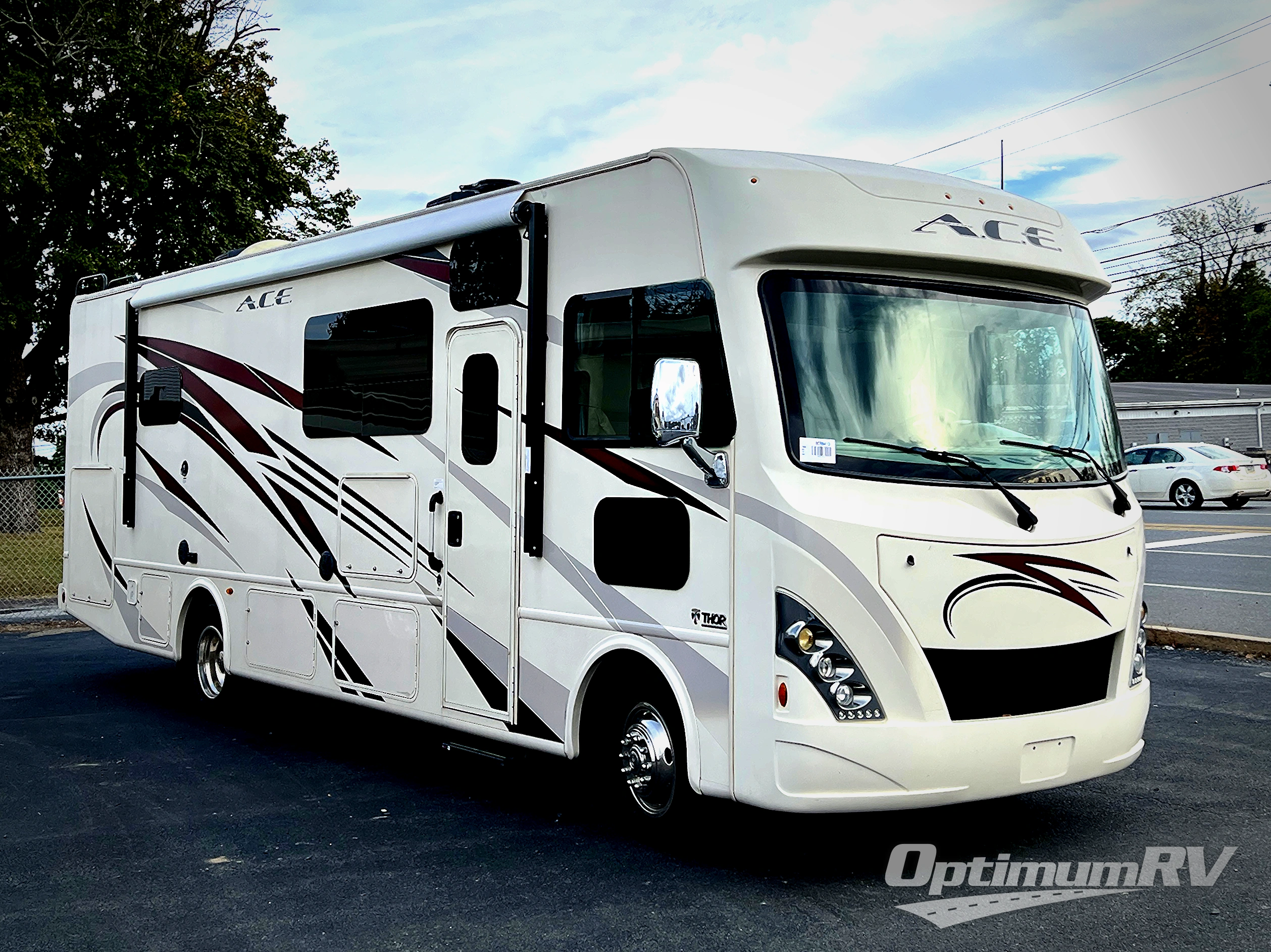This A.C.E. 29.4 class A gas motorhome by Thor Motor Coach features double slide outs and all the amenities needed for any road trip you take. There is even an outdoor kitchen for the chef in the family to enjoy!