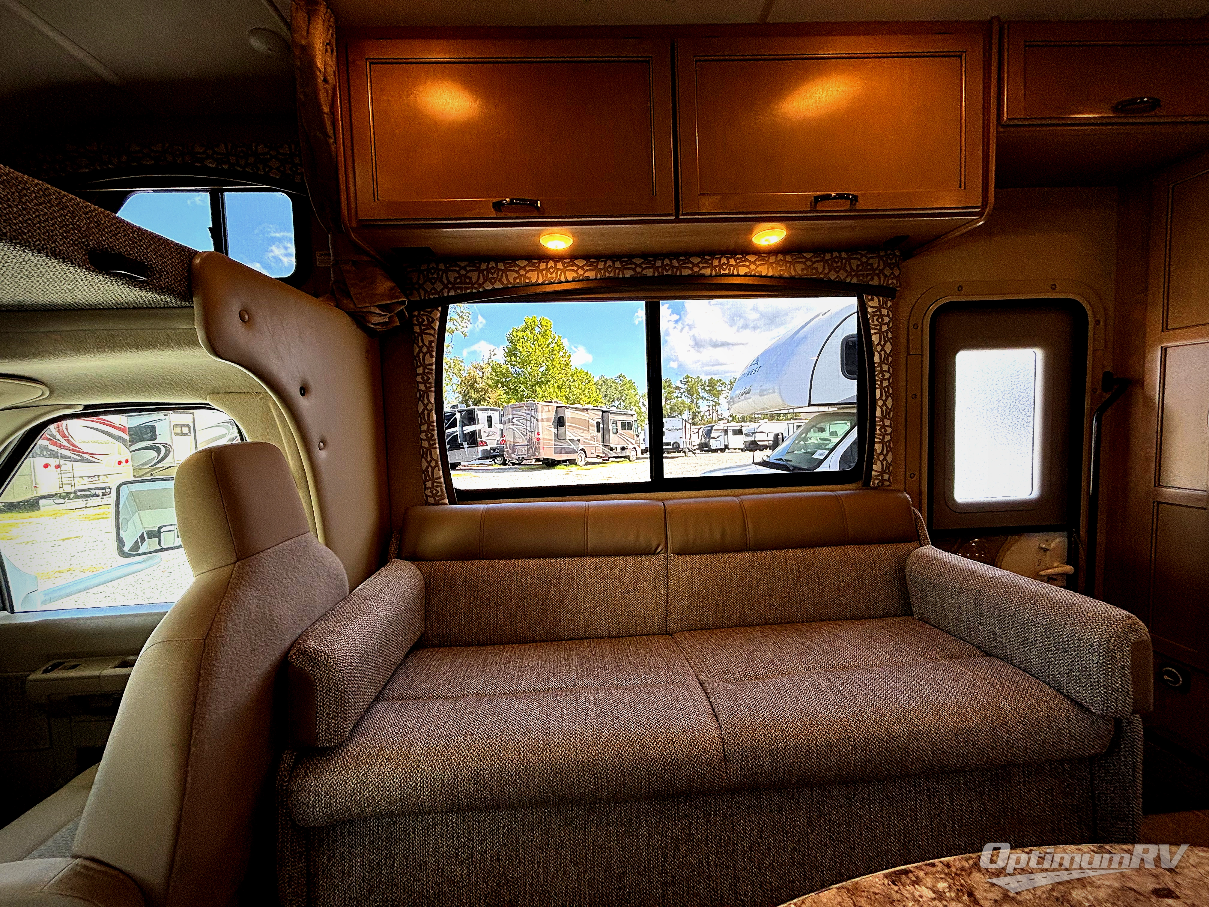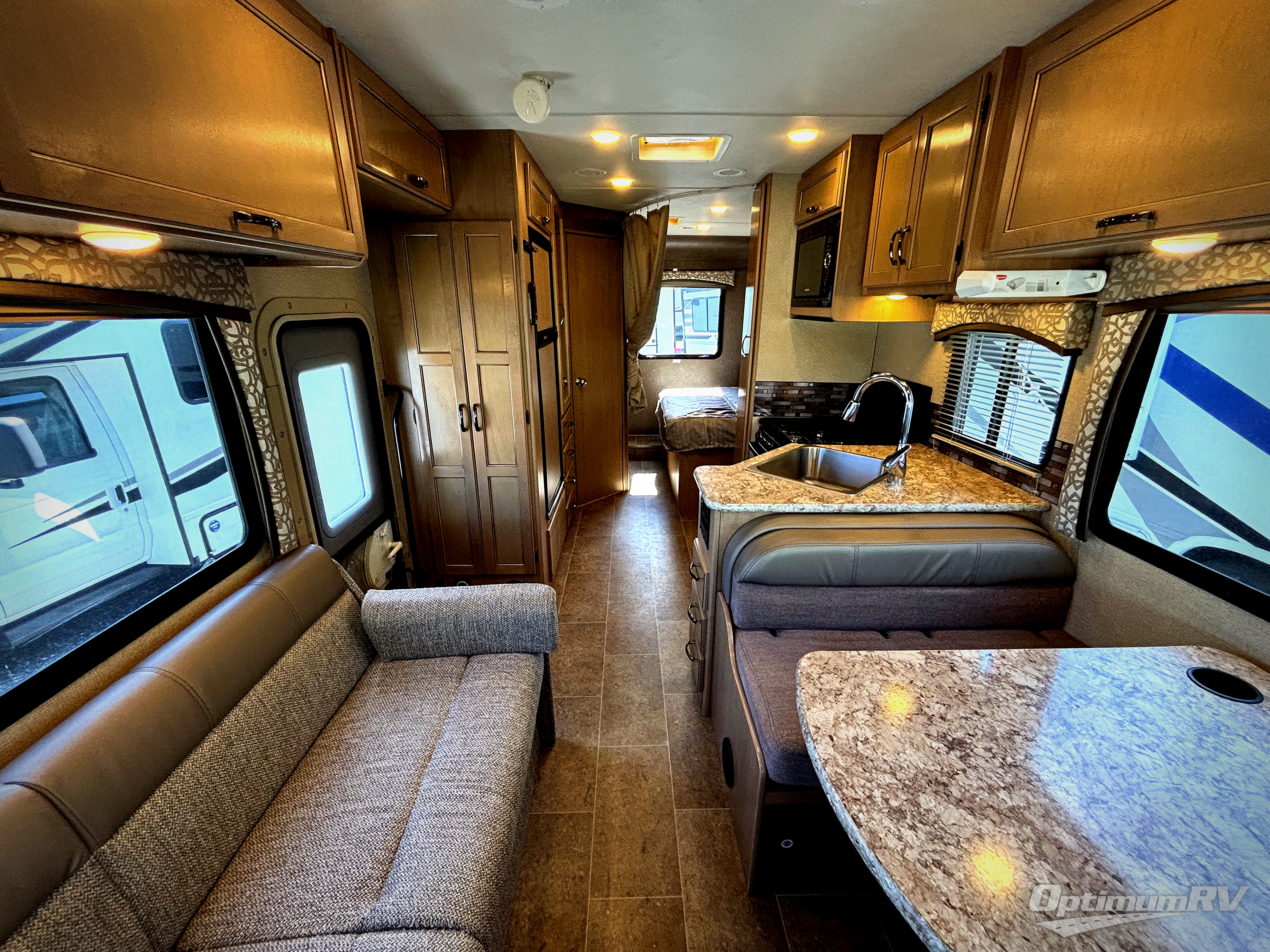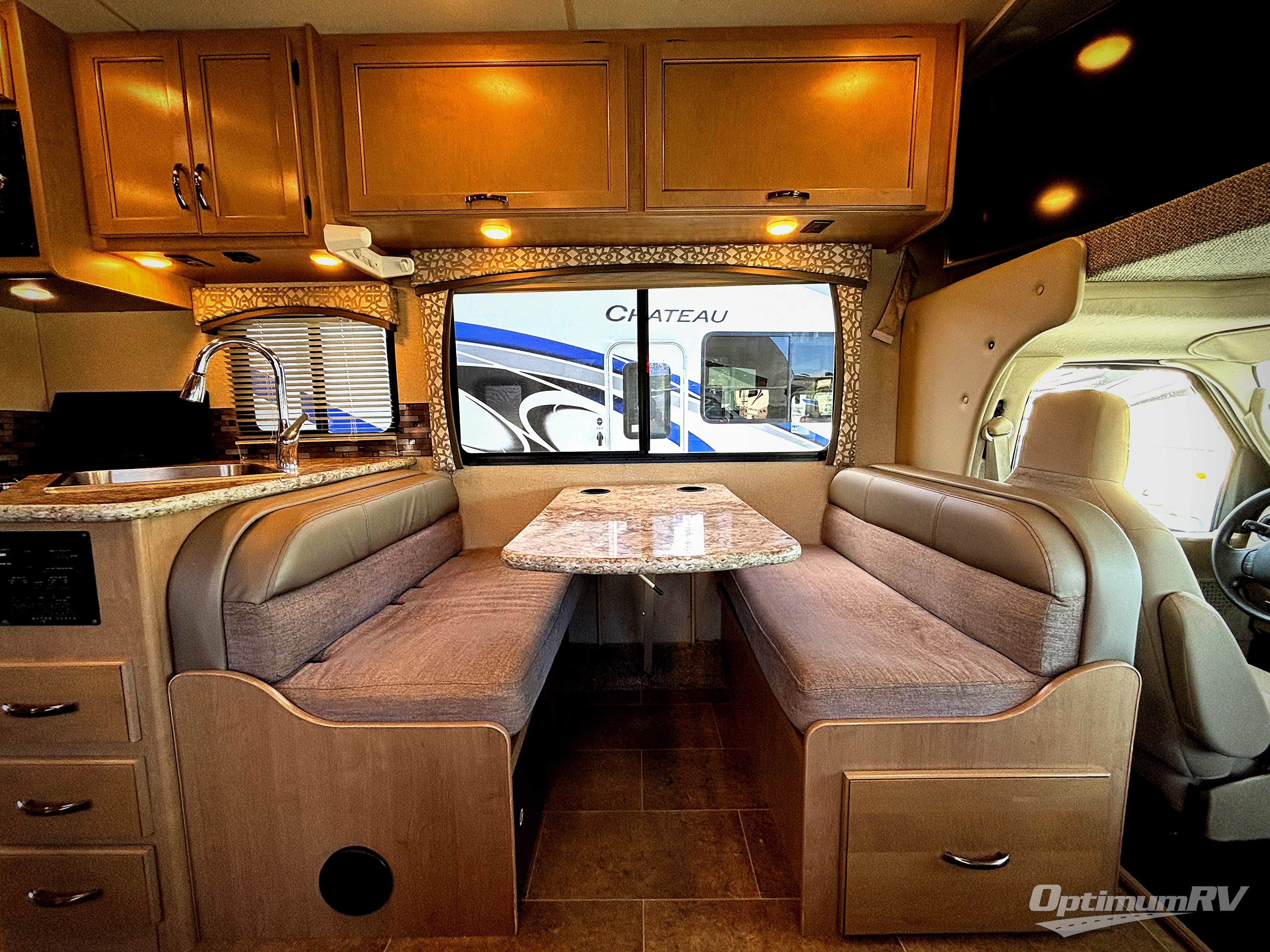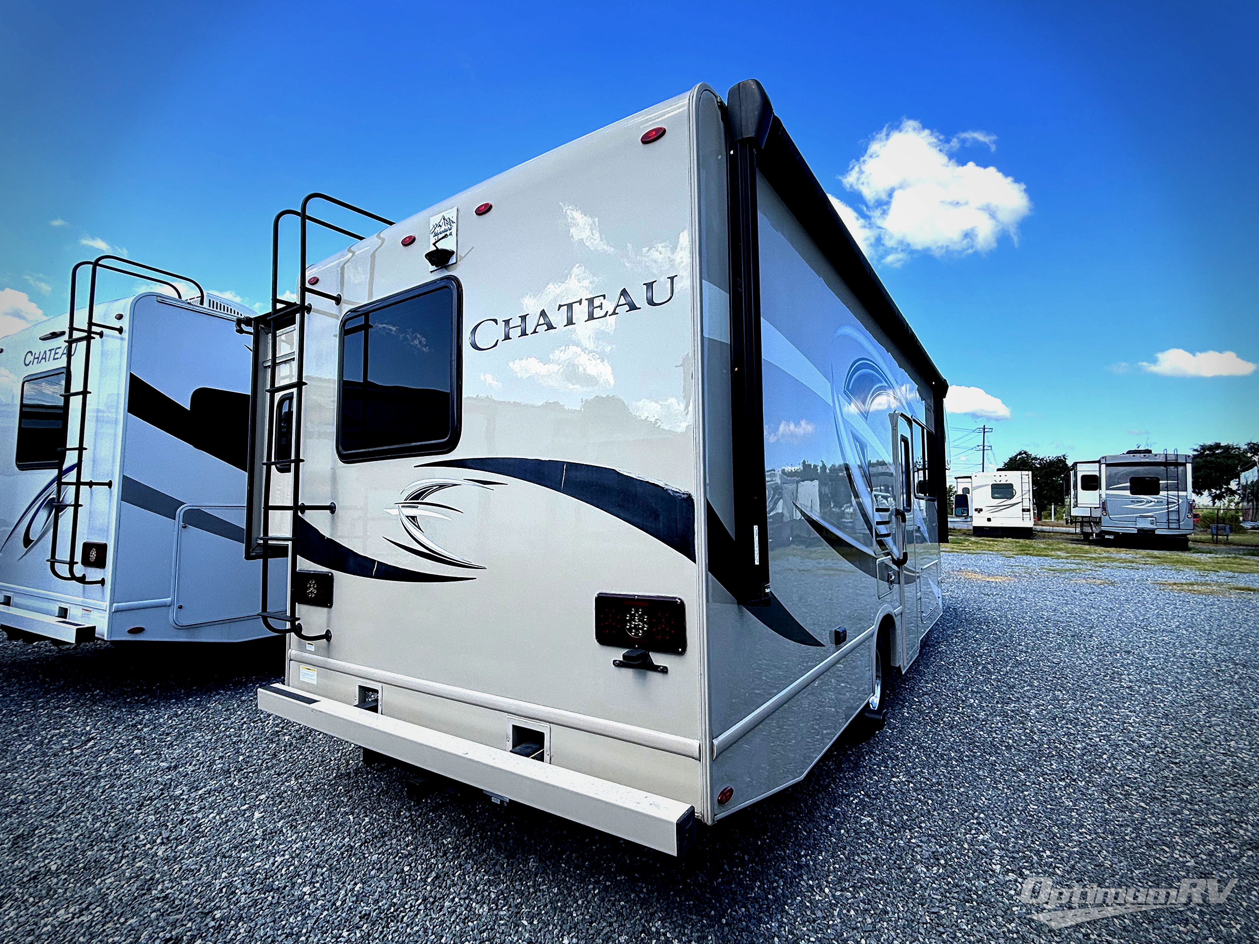 Let your journey begin with a Chateau class C motor home by Thor Motor Coach. Along the exterior you will find a welded tubular aluminum roof and sidewall cage construction, a one-piece fiberglass front cap, plenty of exterior storage, and a power awning with LED lights. Inside there is an impressive 84" ceiling height, residential vinyl flooring, and high-sheen cabinets with nickel finish hardware. You will also find that each model has an Onan RV QG 4000 gas generator, an automatic shoreline-to-generator transfer switch, and is pre-wired for solar charging. What are you waiting for? Come select your Chateau motor home and see where your next adventure takes you!