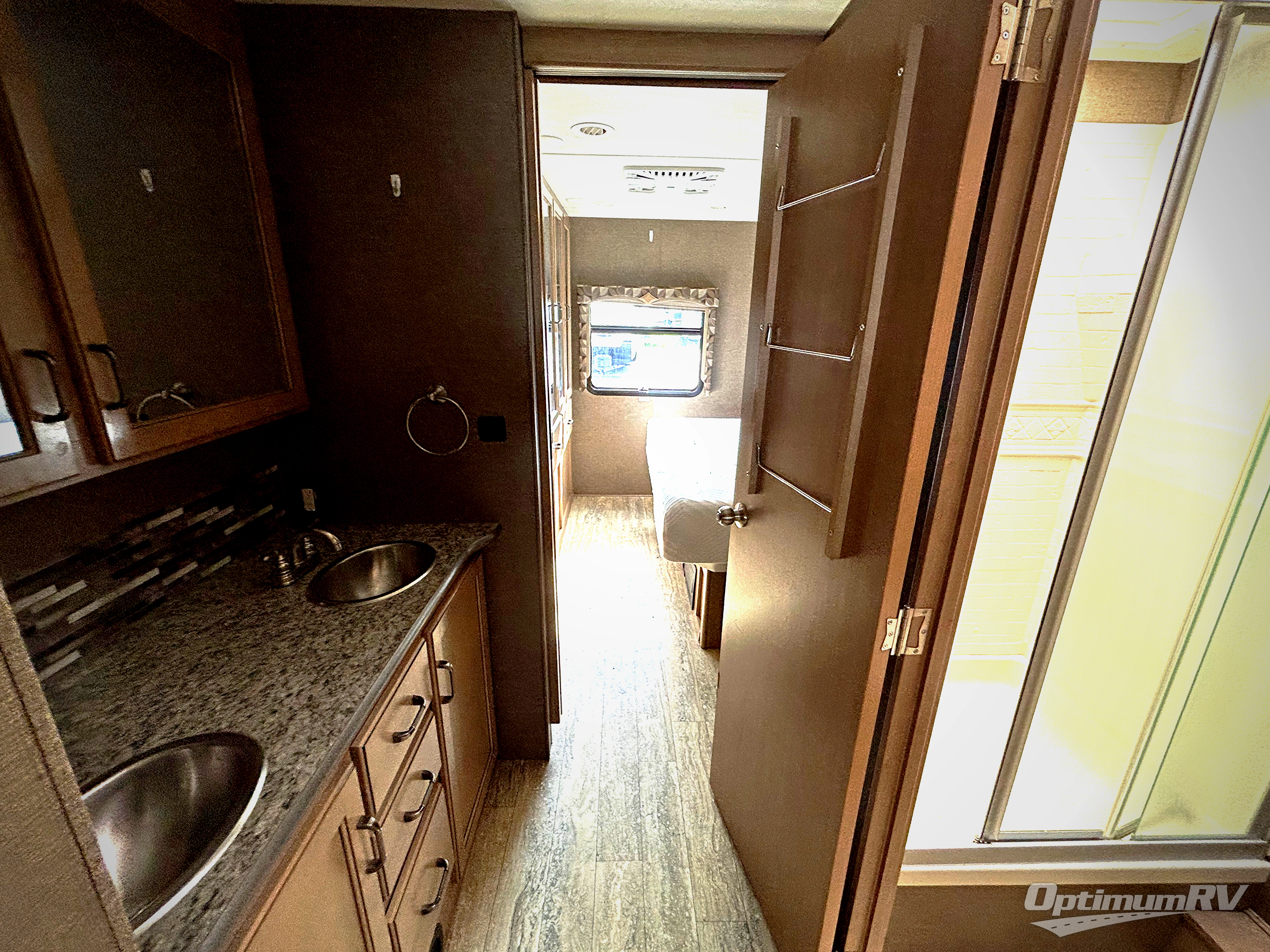 You will find so much to love about the Hurricane models whether you are out for a long road trip across the country or a weekend tailgating party close to home. All Hurricane models feature soft furnishing, solid surface countertops, and new glass inserts in the upper kitchen cabinets. Hand-crafted Maple or Cherry cabinets compliment each of the decor choices offered. No matter which model you select, each features a dinette that seats four comfortably and also converts to a bed for two. You will also find added sleeping in the drop-down cabover bunk that the kids are sure to love. With the front captain's chairs on swivels, you can easily bring them into a conversation area in the living space once parked, and there is a computer workstation at the passenger side front seat for those who need to do a bit of work while you travel, or just enjoy surfing the internet. Each Hurricane model also features a pantry and spice rack, plus a beautiful glass tile backsplash. On the outside, enjoy plenty of storage for all of your extra camping gear and an outdoor shower, plus a 32" LED TV and lighted awning to light up the night for entertainment as well as daytime cover from the sun. Make a Hurricane model your new home-away-from-home today!