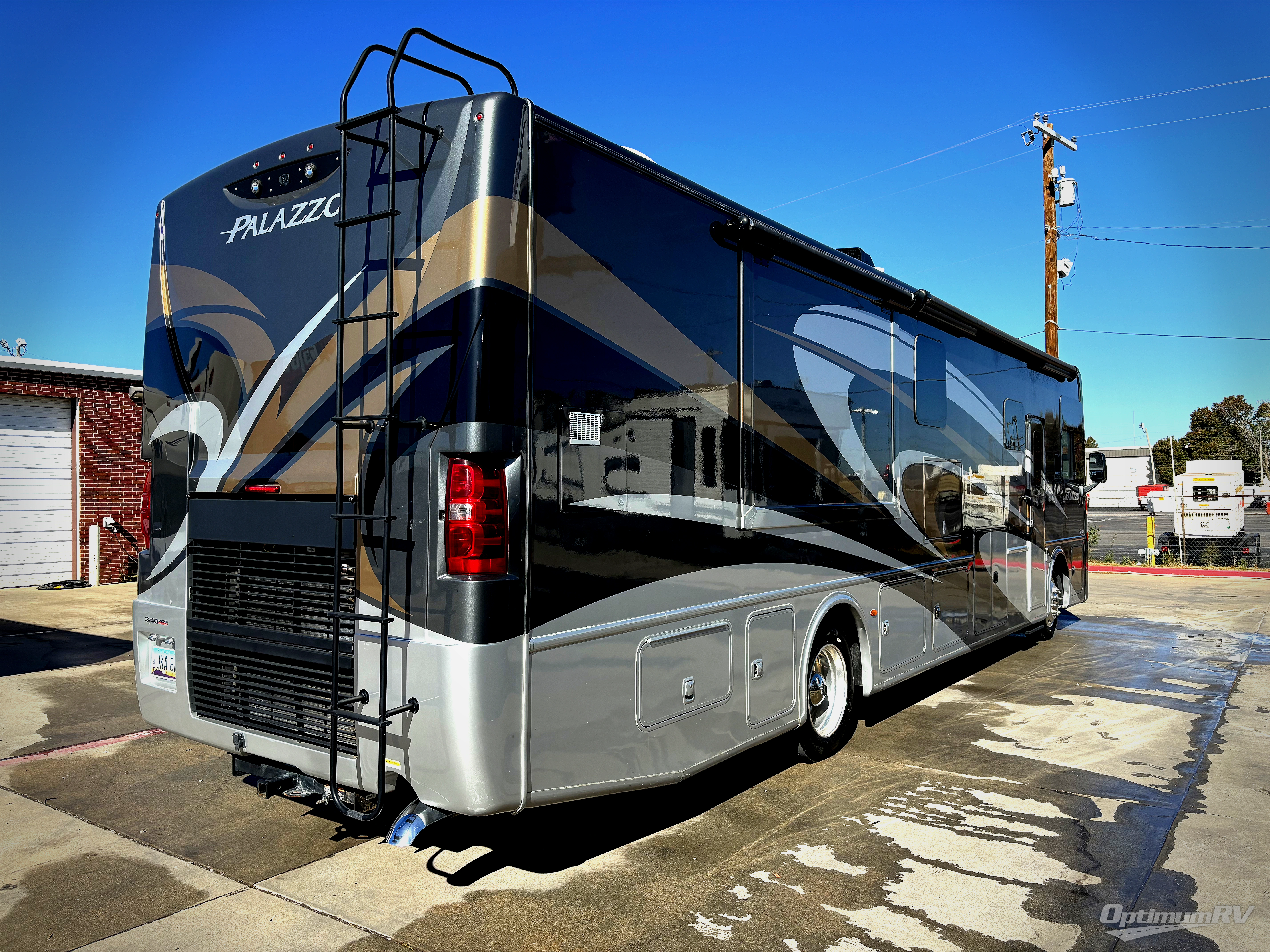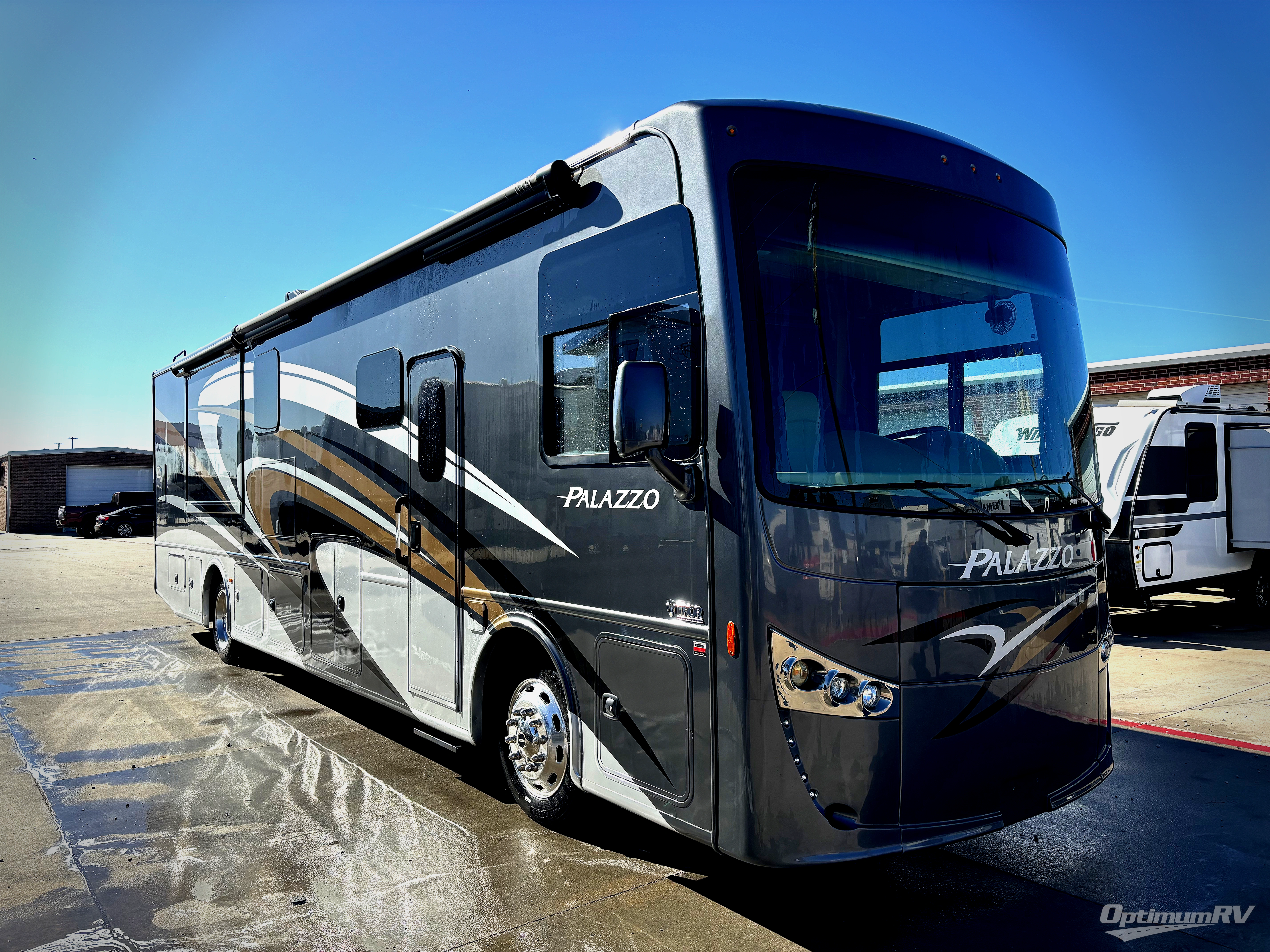 With any Palazzo motorhome by Thor Motor Coach you will be impressed with every inch of space, inside and out. Thought has been given to making life more enjoyable on the open road. From the touchscreen dash radio with Bluetooth, GPS Navigation, and back-up monitor to the dash workstation with 110-volt and 12-volt outlets allowing the passenger to work while moving down the road. There is a Cummins Onan RV QD 6000 diesel generator for those times you are not at a campsite or RV park. You will find a lateral arm awning which allows you more room underneath without having to duck under the arms to get to the entry. Inside you will be able to relax and sleep on a Denver Mattress, watch TV, and charge your electronics with the USB ports in the nightstands. Come choose your favorite coach today!