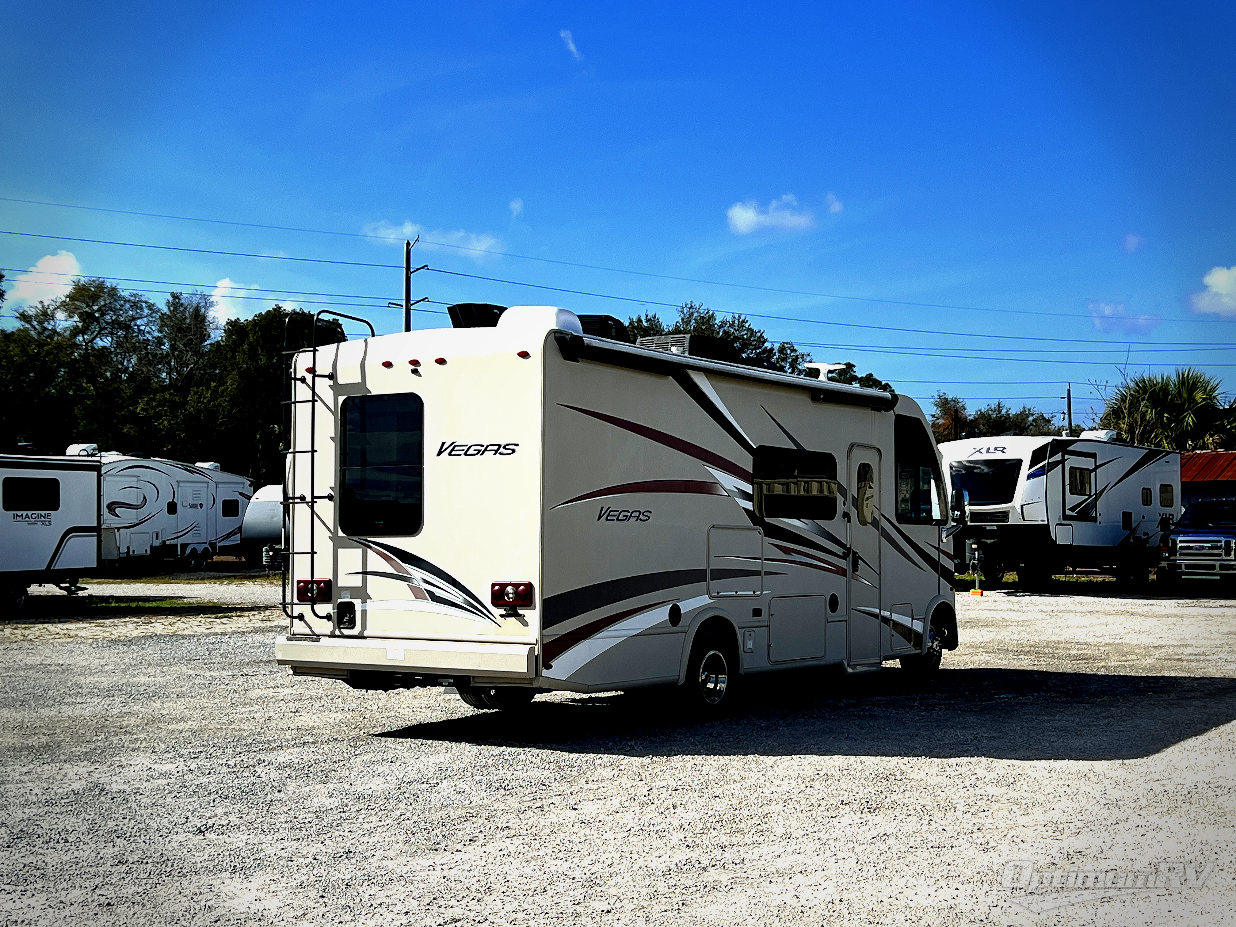 This Thor Motor Coach Vegas RUV model 25.3 class A gas motorhome features a rear bedroom with a flip-up queen bed slide out, a rear corner bath, plus all of the amenities you need to comfortably spend time on the go.