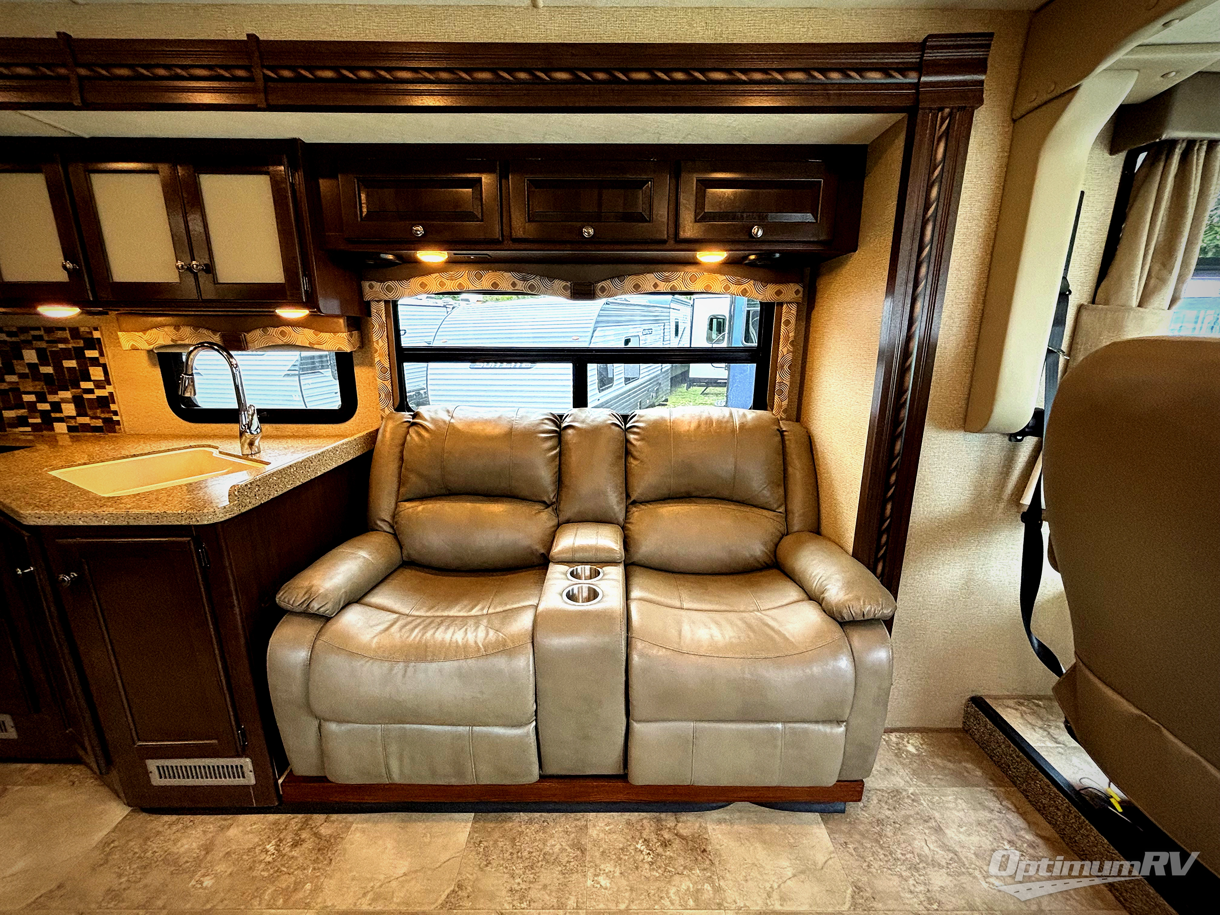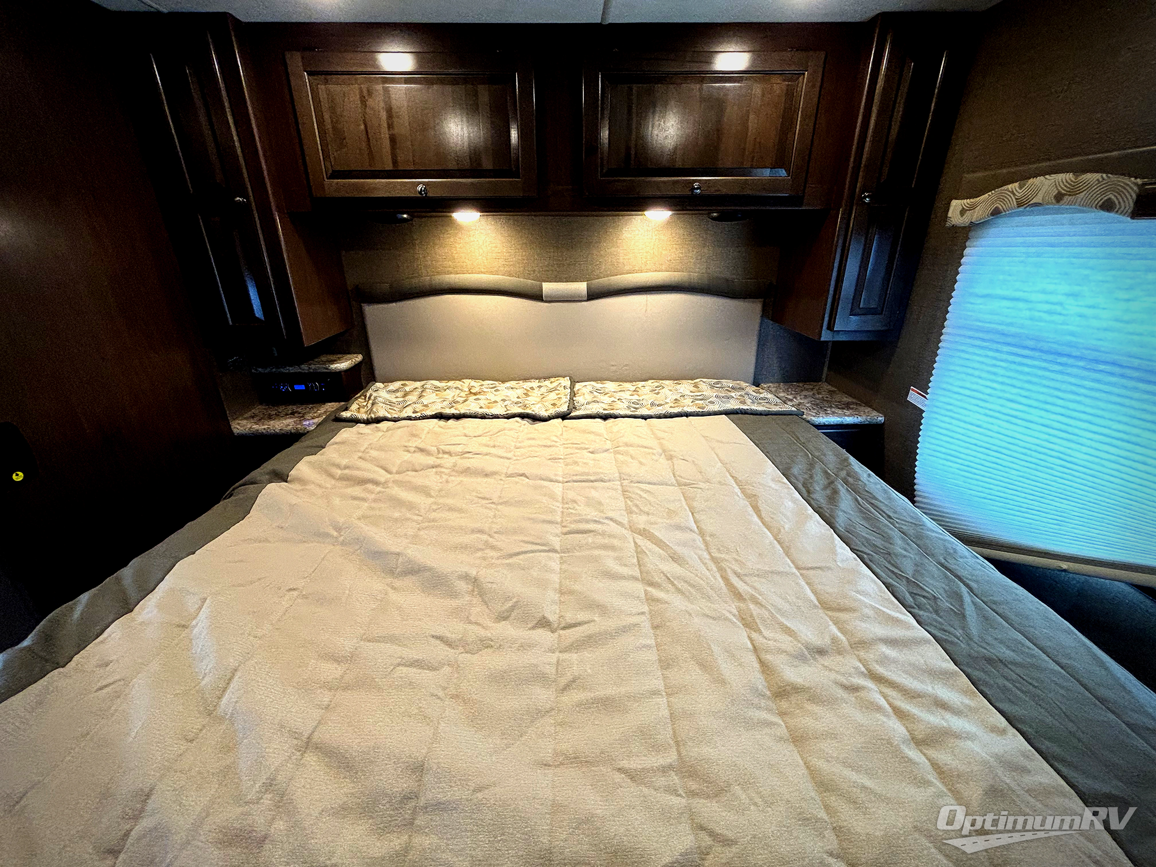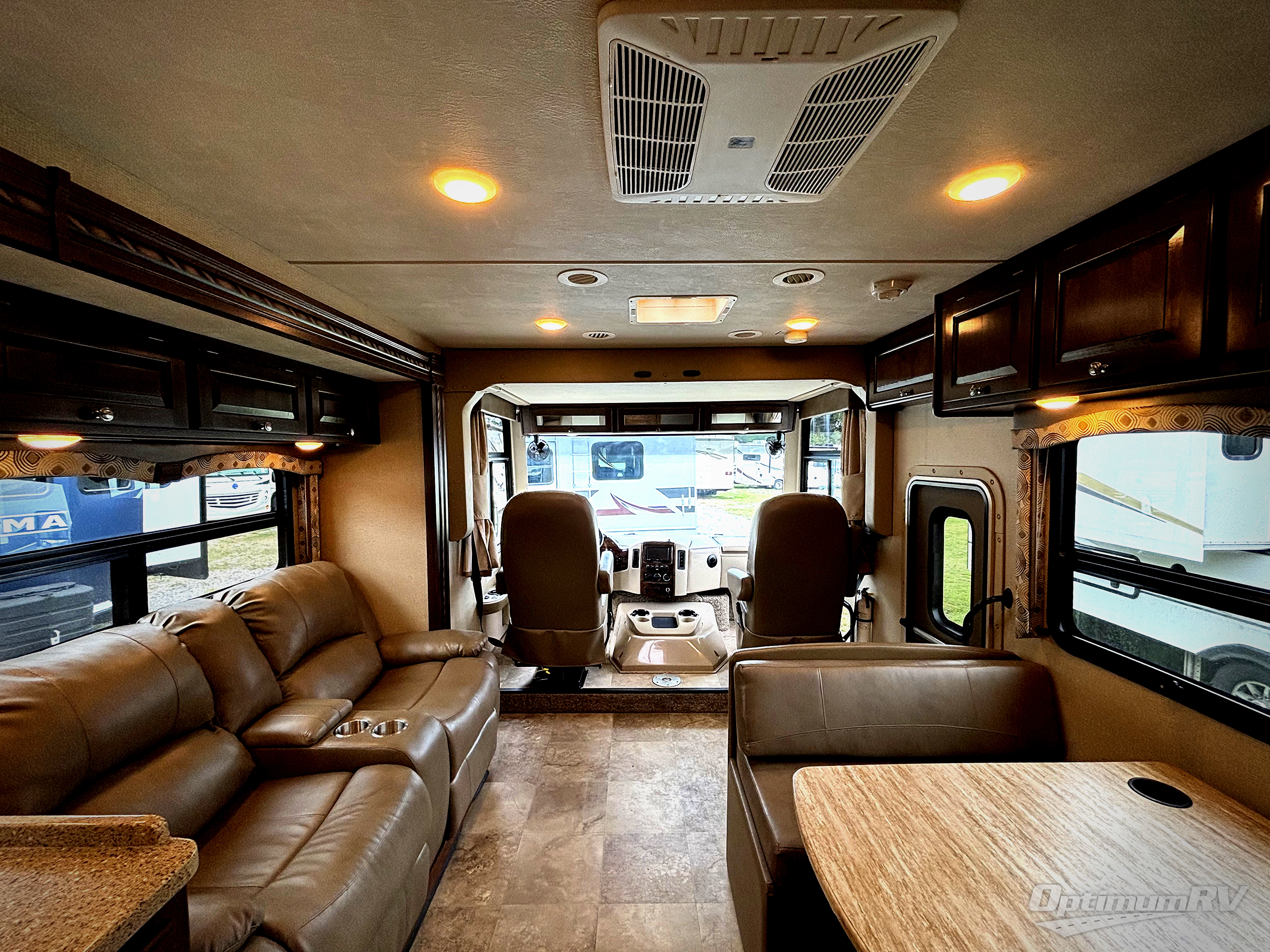 You will find much to love about all Windsport models whether you are out for a long road trip across the country, or a weekend tailgating party close to home. All Windsport models feature Leatherette furniture, solid surface countertops, and raised panel upper cabinet doors with nickel finish hardware and glass inserts on select doors. You will also find added sleeping space in the drop-down cabover bunk that the kids are sure to love. With the swivel and reclining captain's chairs you can easily bring them into a conversation area in the living space once parked, and there is a dash workstation with 110-volt and 12-volt outlets at the passenger side for those who need to do a bit of work while traveling, or for those who just enjoy surfing the internet. On the outside, enjoy Robocast storage compartments, an outdoor shower, plus a 32" LED TV on a manual swivel, and a legless lateral power awning with integrated LED lighting. Make any Windsport class A gas motor home by Thor Motor Coach your new home-away-from-home today!