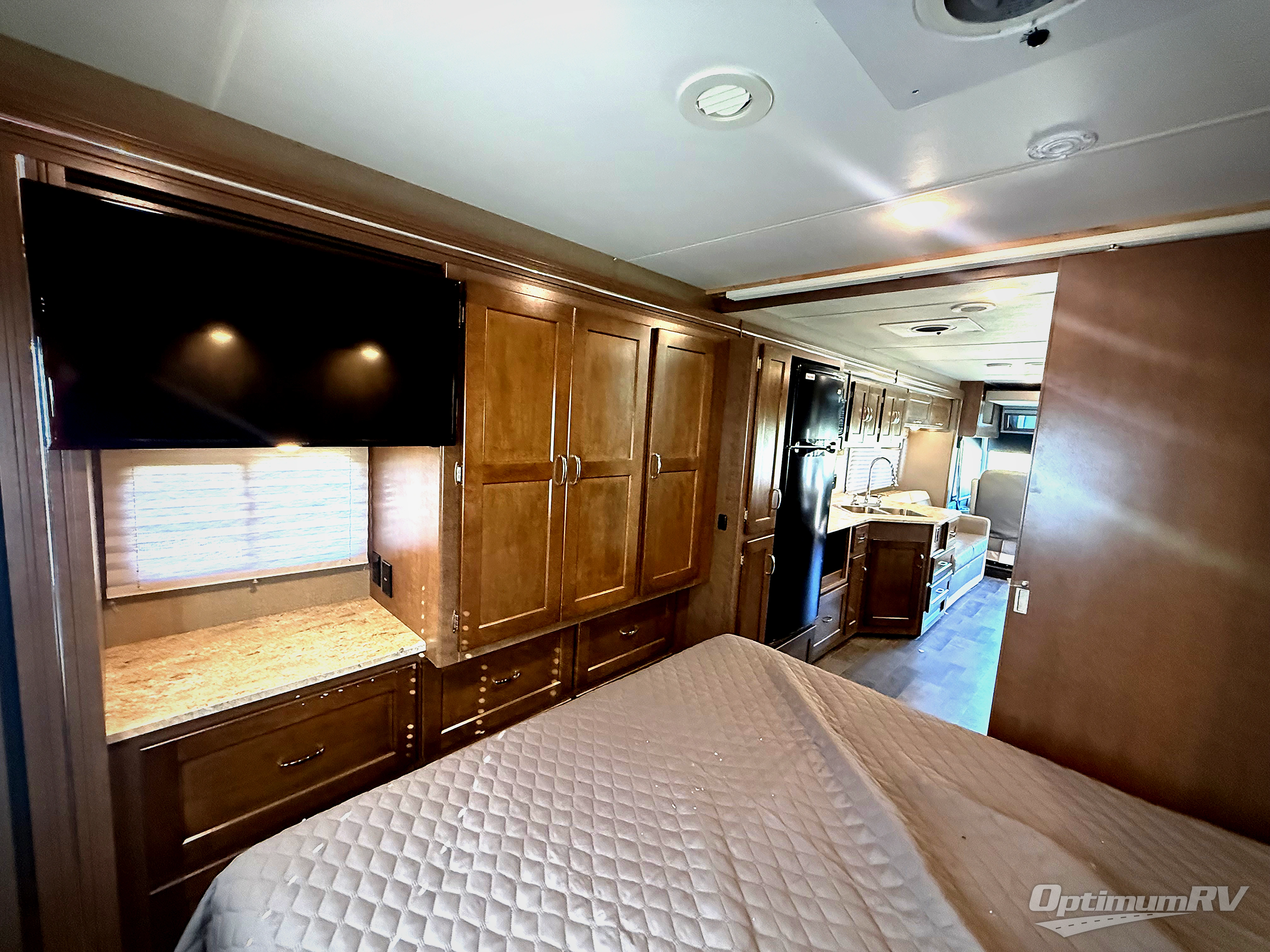When you travel in this Intent Class A Gas motorhome, you are traveling in an exceptional RV that contains all of the amenities you want and need, plus many extra. The fully-stocked kitchen, which is located on the full-wall slide out, contains a residential refrigerator that gives you the space you need to keep your perishable items from spoiling, and everyone will love gathering together each evening in the warm summer air as you party underneath the 22' electric awning with LED lights.