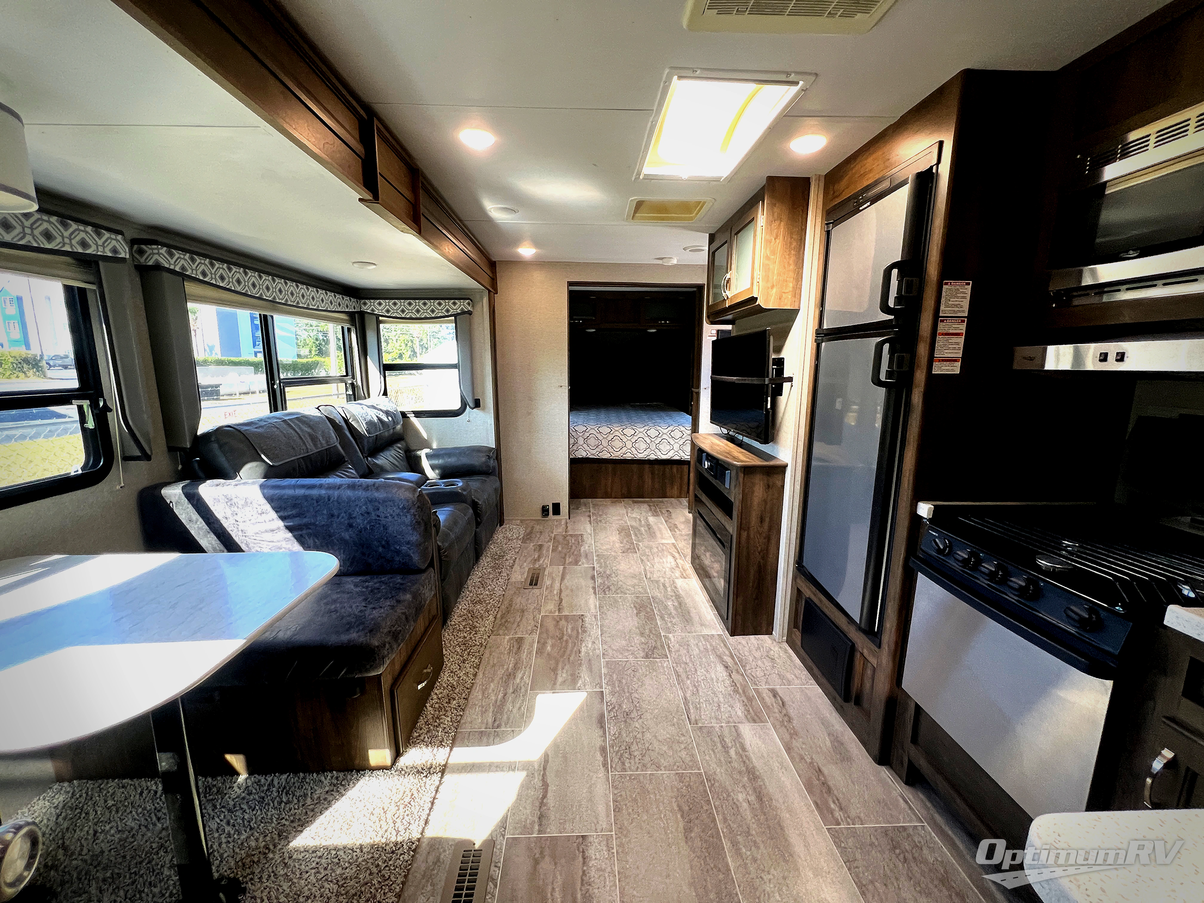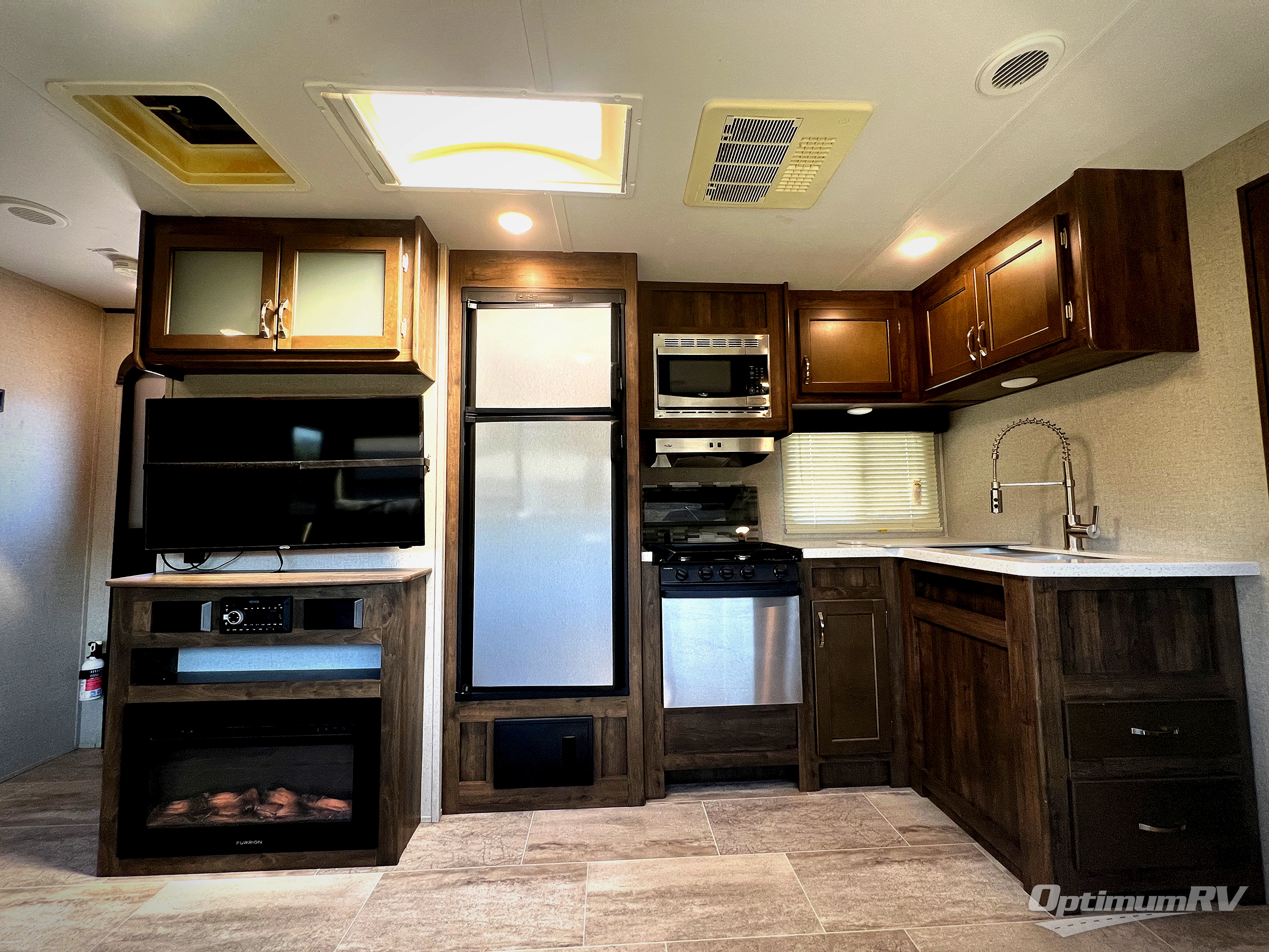 With the Dutchmen Aerolite travel trailer, you will always find exceptional interior comforts, like the 6' 10" ceiling height that delivers a residential feel, the stainless steel appliances, and the LED lighting throughout. The family will enjoy listening to the superb quality coming from the Jensen soundbar, and you will be thoroughly impressed by the iN-Command control system that allows you to monitor and change various electrical functions throughout the Aerolite with the ease of your smart phone. And the Industry-Best 3-year limited structural warranty that comes with each Aerolite allows you to enjoy your travel trailer for years to come!