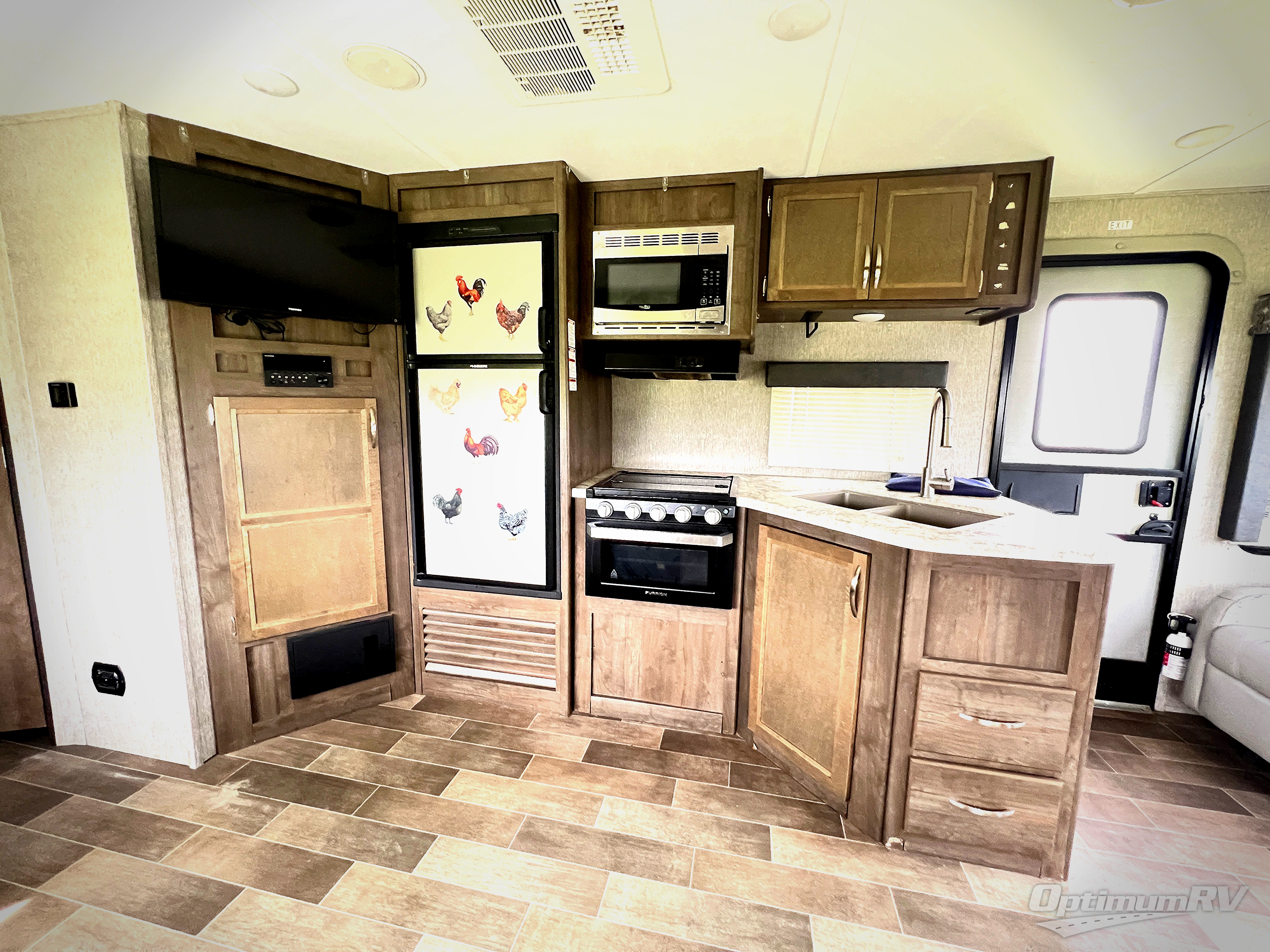 Are looking for your own travel trailer to take to state parks? This unit provides a couple or a family the comforts of home and the ability to travel during any season. You can prepare a meal on the three burner range, and with a double sink, clean-up is a breeze. This model includes two lounge chairs in the rear living area, so after a long day you can relax. There are two entries, allowing you quick access to the main area, or the bedroom and double entry bath. You'll also enjoy a sofa and dinette within the large slide out, and a pantry for all your dry goods.