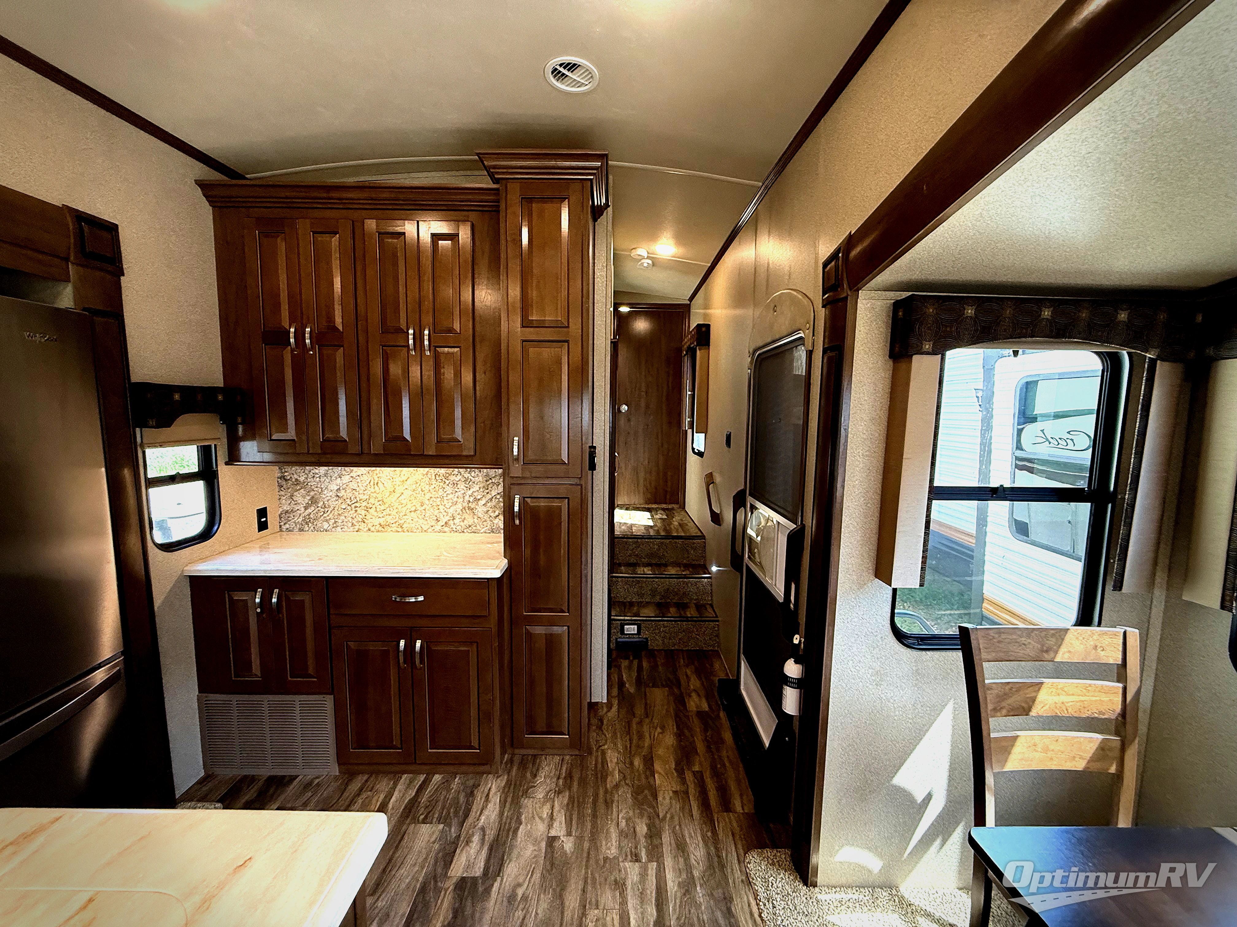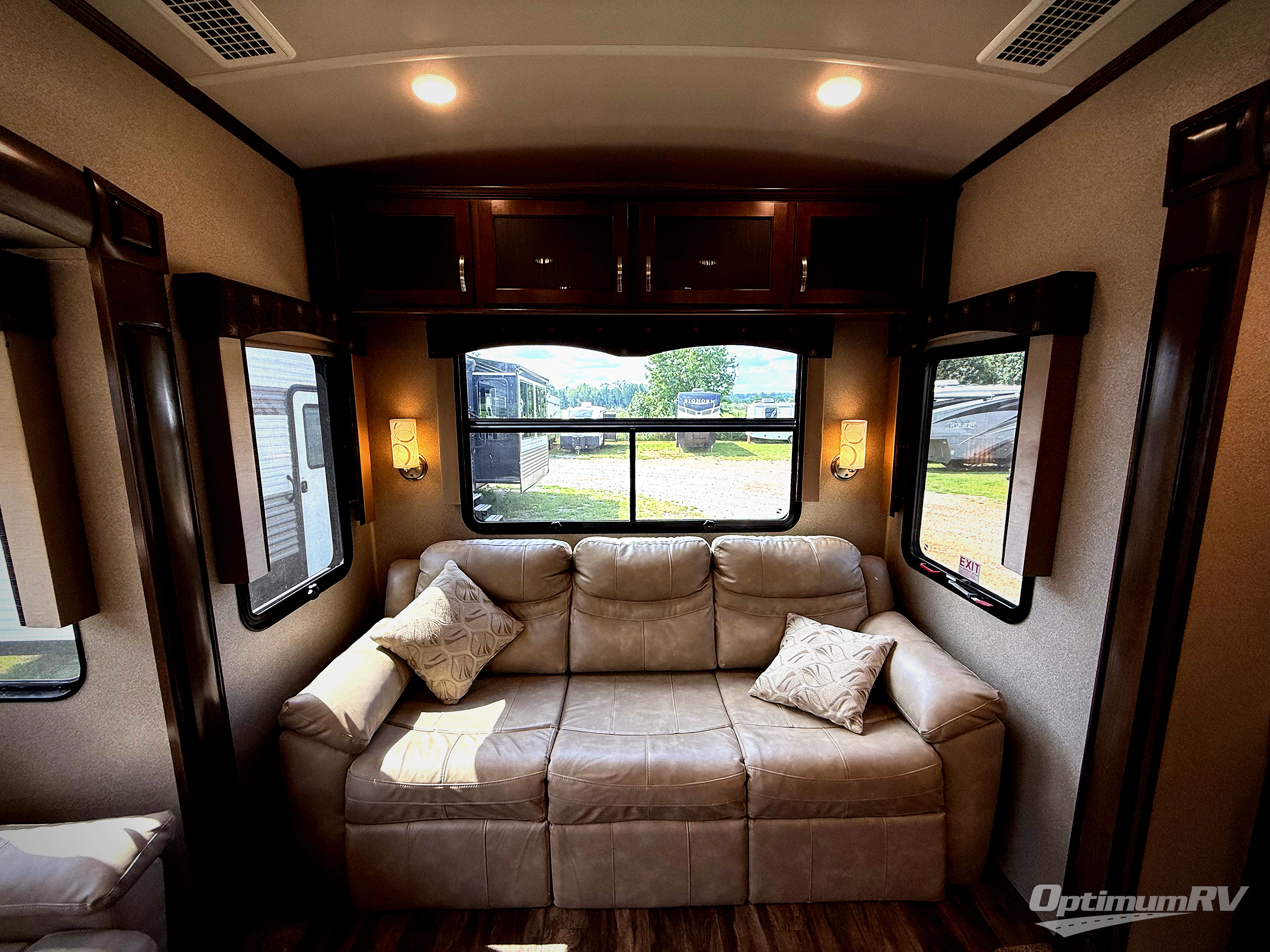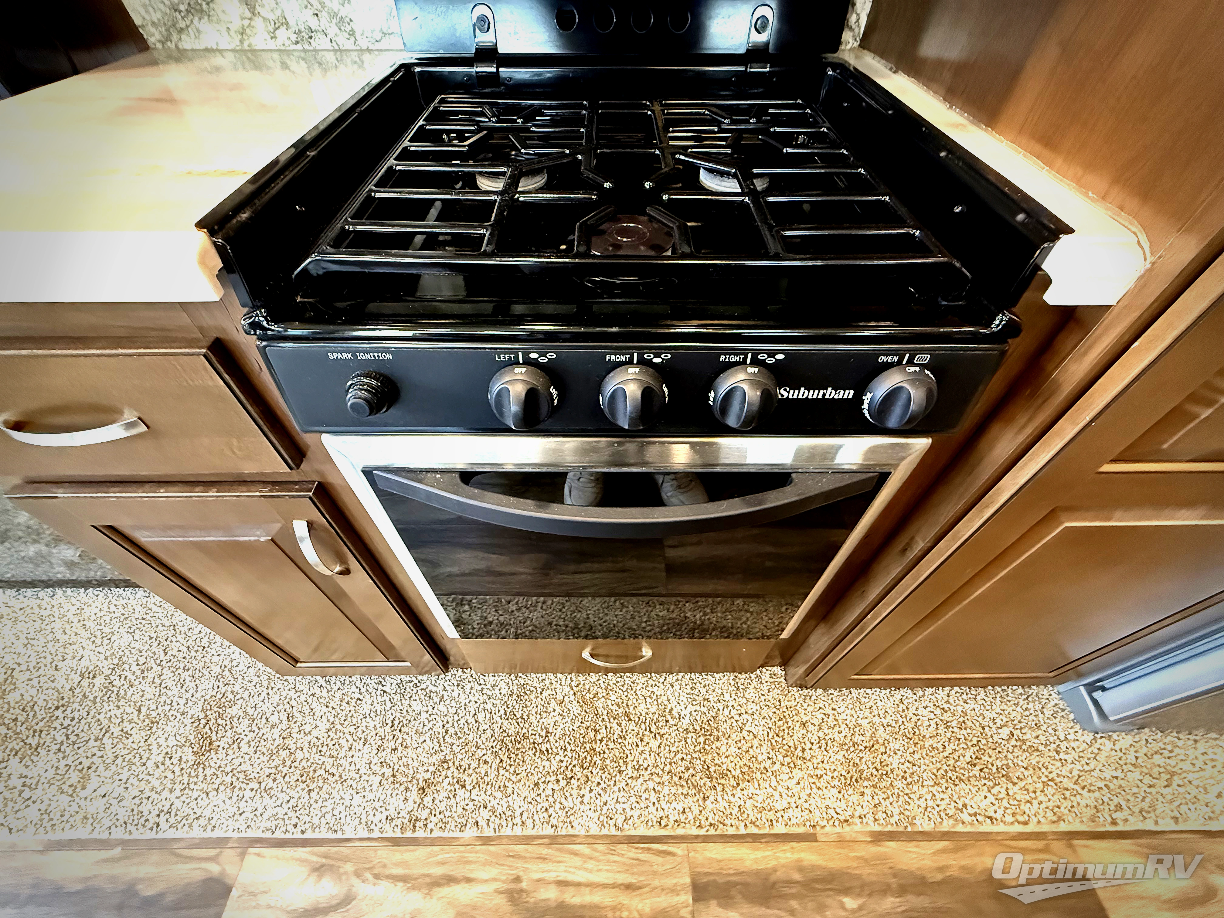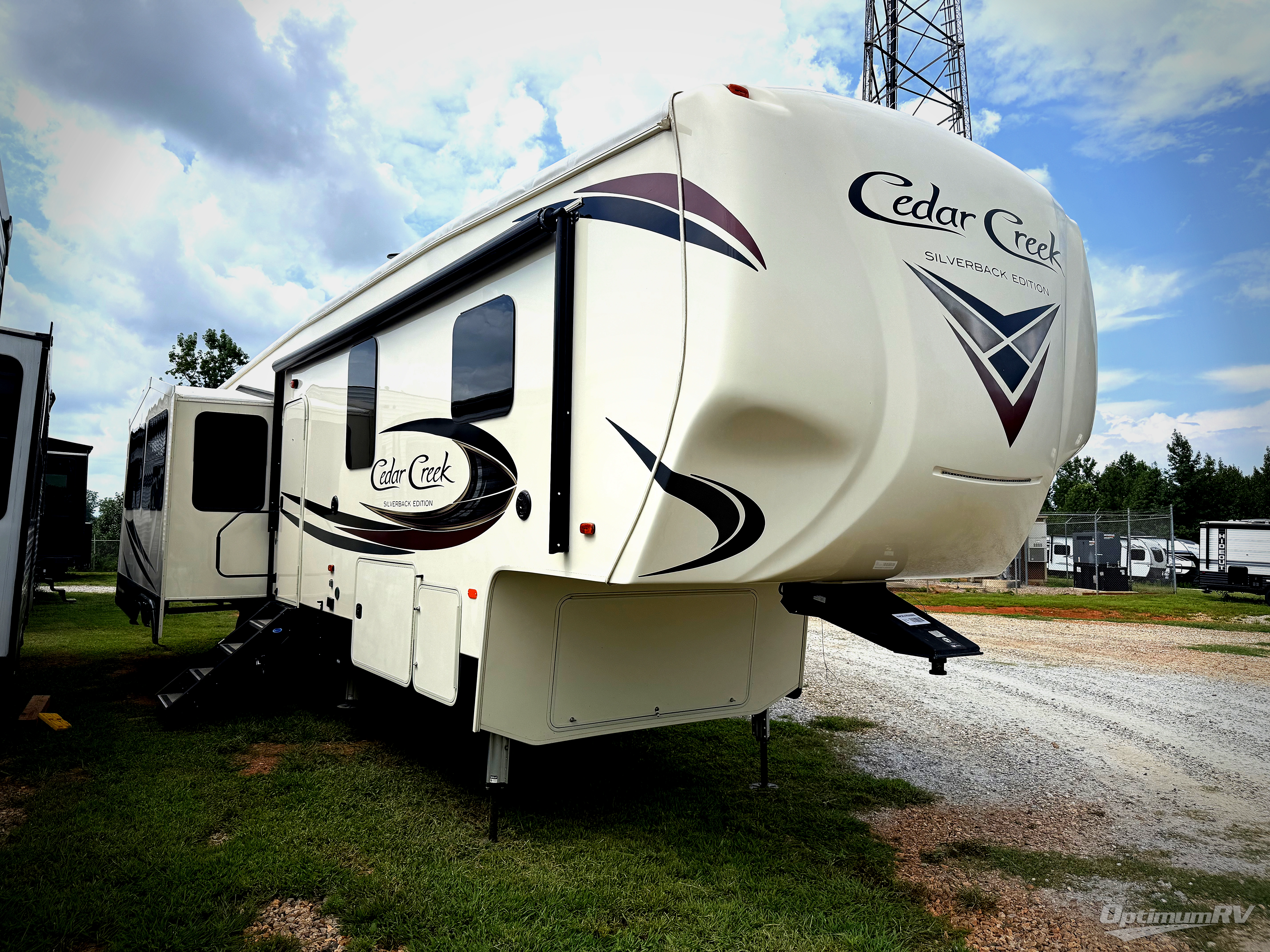 With any Forest River Cedar Creek Silverback Edition fifth wheel you will find Congoleum carefree flooring throughout and in the dining slide there is Shaw carpeting. The kitchen has everything that you would expect to find at home and more from the Furrion chef's kitchen with a gas cooktop, to the full panel backsplash, you won’t be disappointed! The 36" electric fireplace, the Jensen 12 volt CD/DVD/AM/FM/MP3/USB stereo system with a smart control app and Bluetooth, and the 50" LED TV with a swing arm in the living room are sure to be crowd pleasers! Each fifth wheel is constructed with Cedar Creek's famous all aluminum super-structure with a radius wrap metal skirt, and a Z-frame. Plus each comes with a Dexter safety and performance package which includes Dexter axles/brakes/suspension, and a Dexter E-Z flex rubber equalization system with bronze bushings and six greased zerks per side. You are sure to love camping in any one of these Forest River Cedar Creek Silverback fifth wheels so come choose your favorite one today!