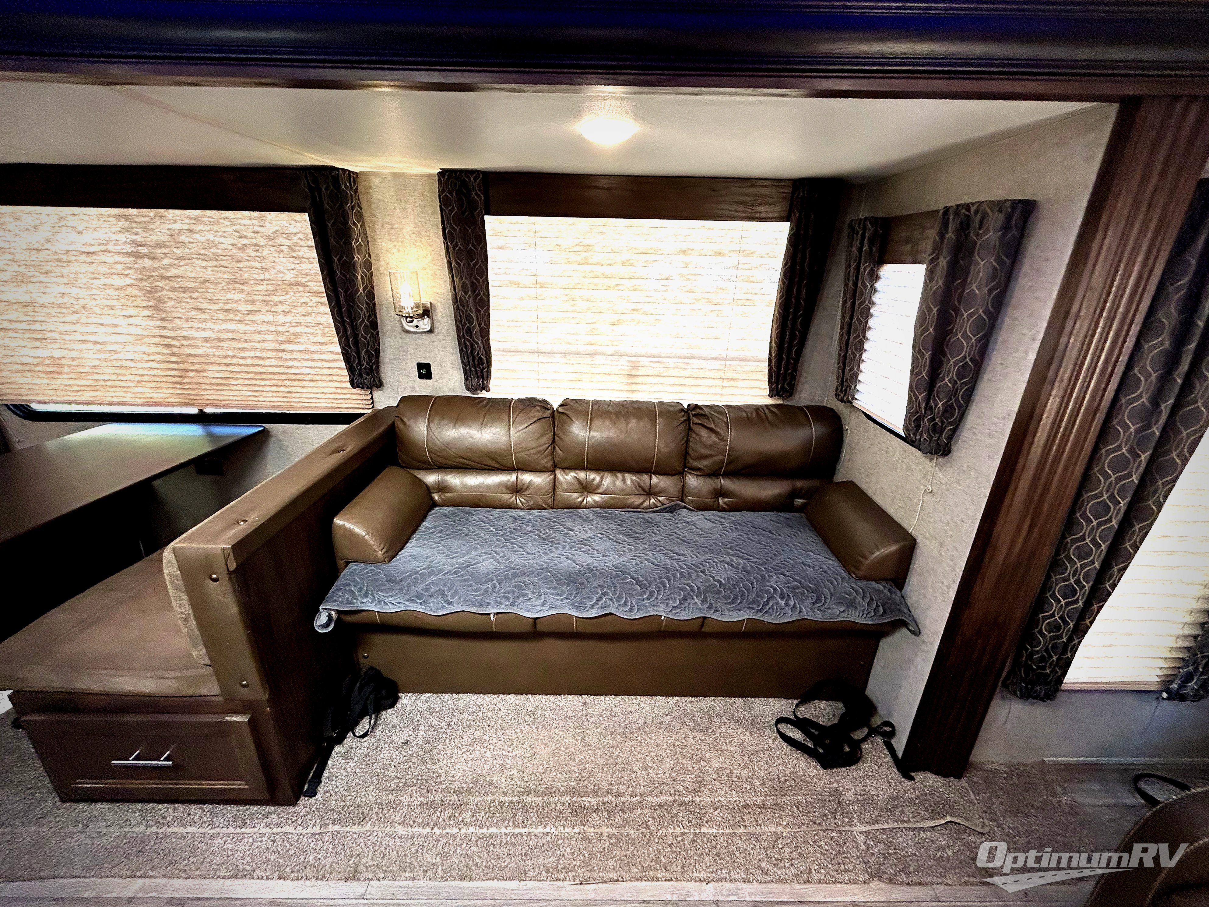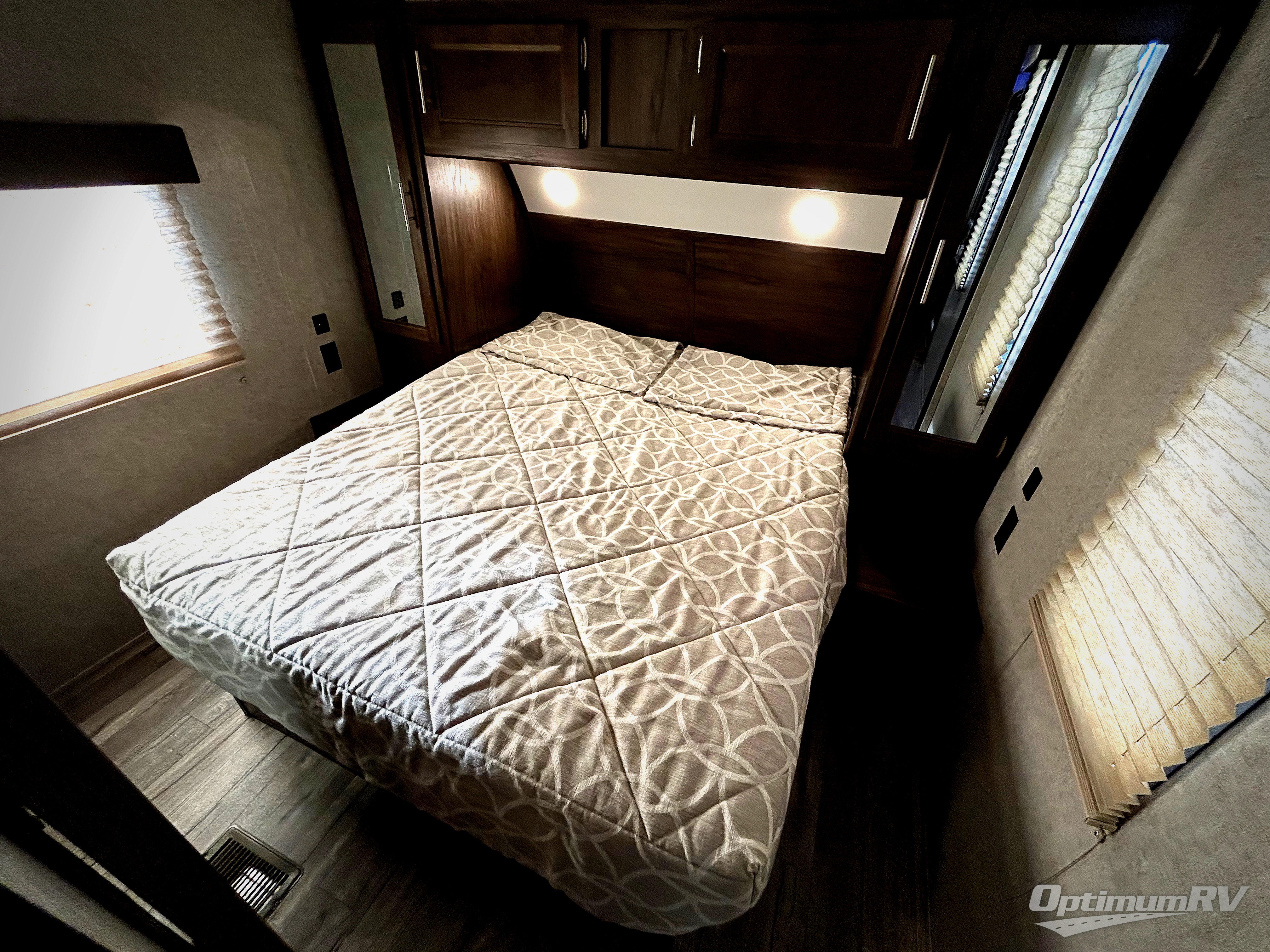 When you are ready for your next camping trip, this Cherokee travel trailer by Forest River can meet your needs. With two opposing slides, a rear living area, and a private master suite, you have everything that you need right at your fingertips. In the kitchen there is a rollaway island which allows you to work where you want and provides you with extra counter and storage space. When you're ready to hit the sack, you can head into the front master suite and enjoy a good night's rest on the queen bed with wardrobes on either side, and you will also enjoy the convenience of having a private entrance into the dual-entry bath!