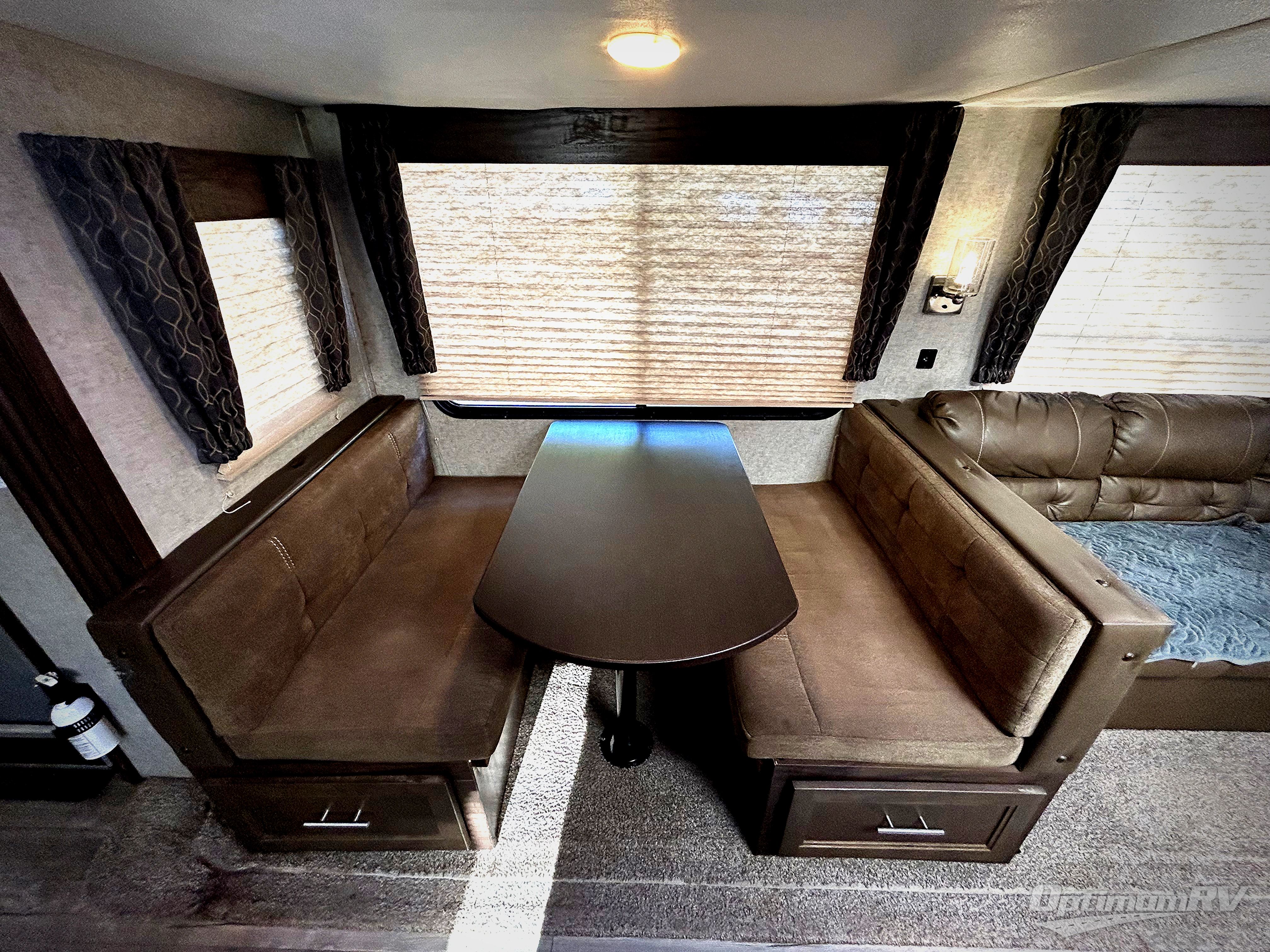 No matter which Cherokee model by Forest River you choose, you can rest assured knowing that each unit is built to provide you with great value, comfort, and style making it easy to get up and go as soon as the urge strikes. Each model features two-toned exterior metal and upgraded graphics, a one-piece rubber roof with 3/8" walkable roof decking, and a front stone guard for protection. Inside of each unit, you will enjoy comfortable seating and mocha-stained shaker-style cabinets. There are also a variety of optional packages available that will provide additional features, like the Base Camp Package, the Campfire Package, and the Limited Package. So when the open road calls, answer with your very own Cherokee travel trailer or toy hauler in tow!