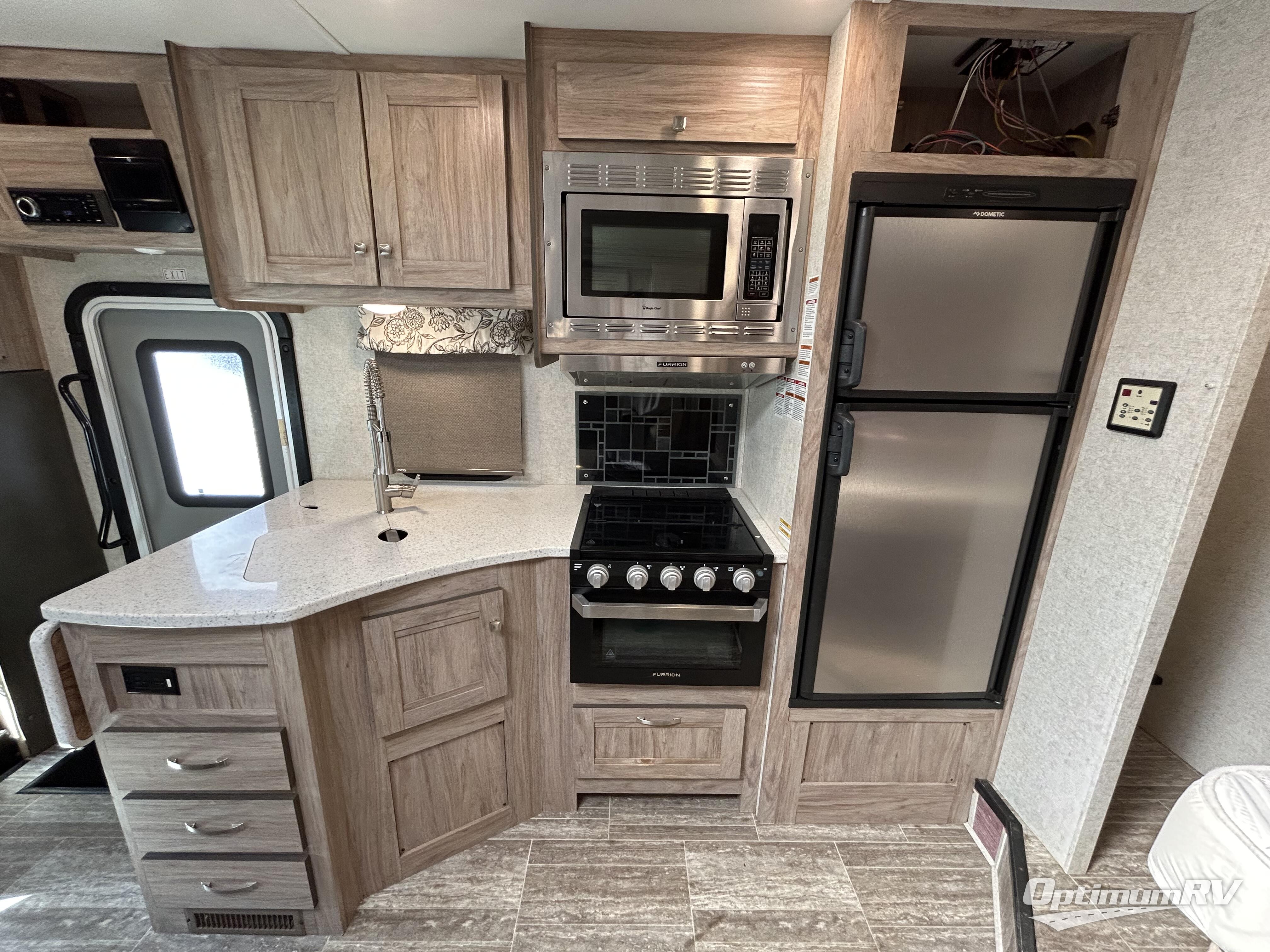 These Forest River Forester motorhome class C's are what you should be looking at when it comes to tasteful style and design. The split level design allows you to have a 7' ceiling in the living area and pass through storage underneath. The side view and back-up cameras will come in handy when parking your RV into your campsite. The inside of these motorhomes have some beautiful colors to choose from that will make you feel like you are at home. You will have all stainless steel appliances, solid countertops, and a 1.3 cu. ft. microwave. All of the Foresters are "Certified Green" by TRA Certification.