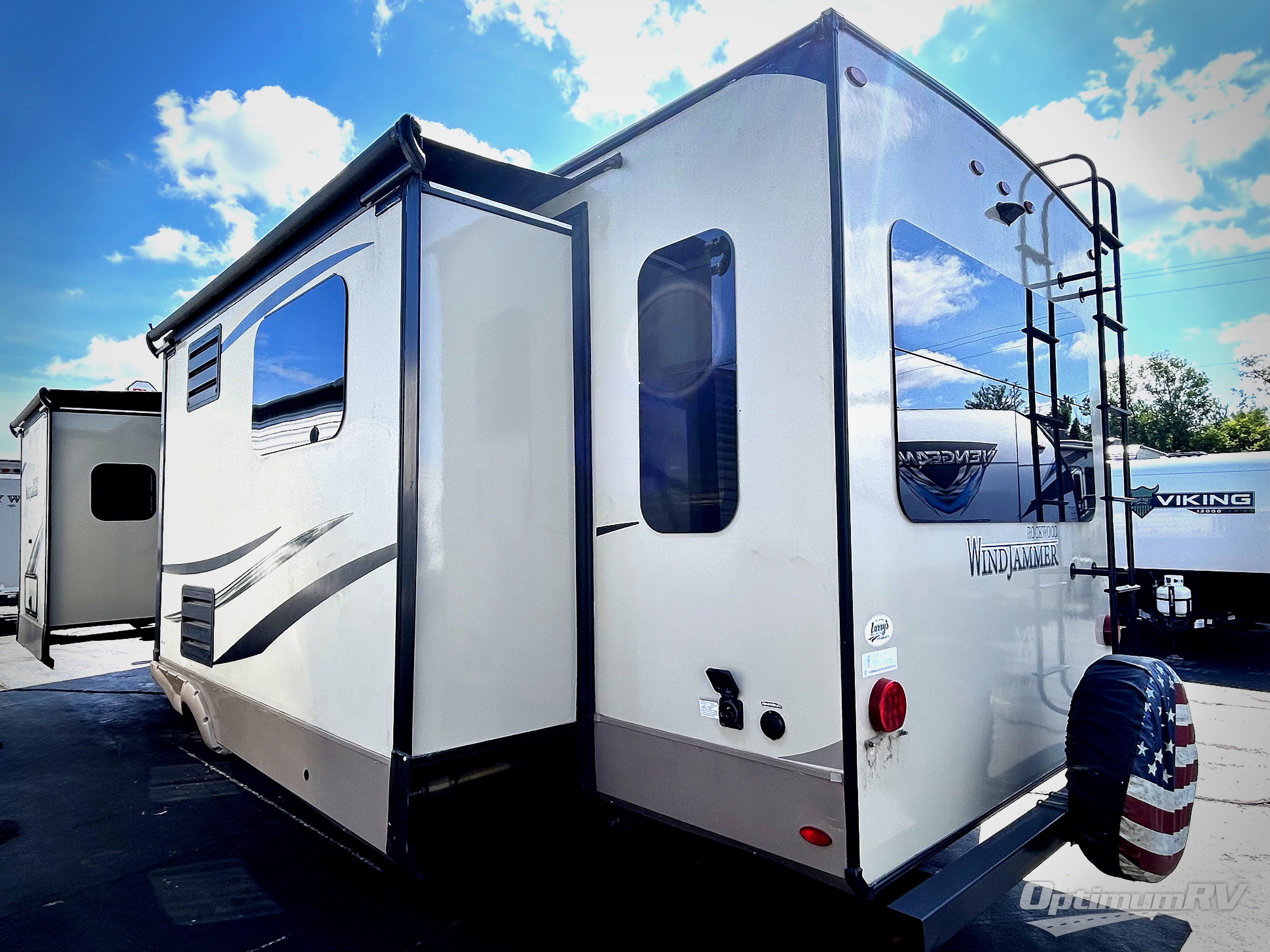 When you choose a Forest River Rockwood Windjammer you know that you are getting a quality travel trailer! Each model features a v-nose design which allows every possible space to be used for interior room and storage. This v-nose design also allows for better aerodynamics. Along the exterior there is a fully aluminum frame as well as a one-piece seamless roof, and MORryde strut assist fold-out steps. The Standard Package include the following - a power awning with adjustable rain dump and LED light strip, flush mount stainless steel sinks with "high rise" lift-off, LCD TV with upgraded sound bar speaker system and multi-directional antenna, a multi zone stereo with DVD/CD/AM/FM and Bluetooth control, plus so much more!