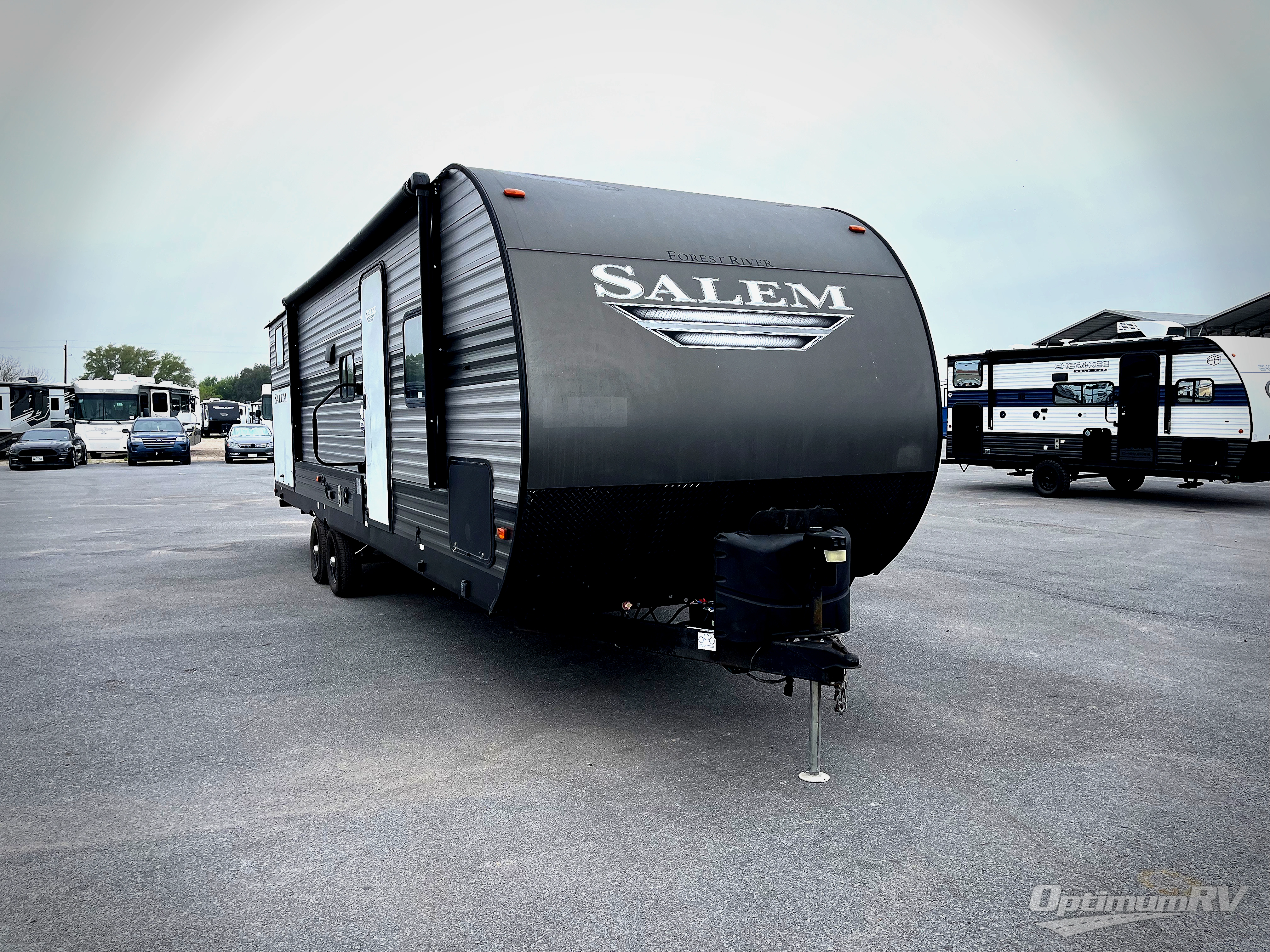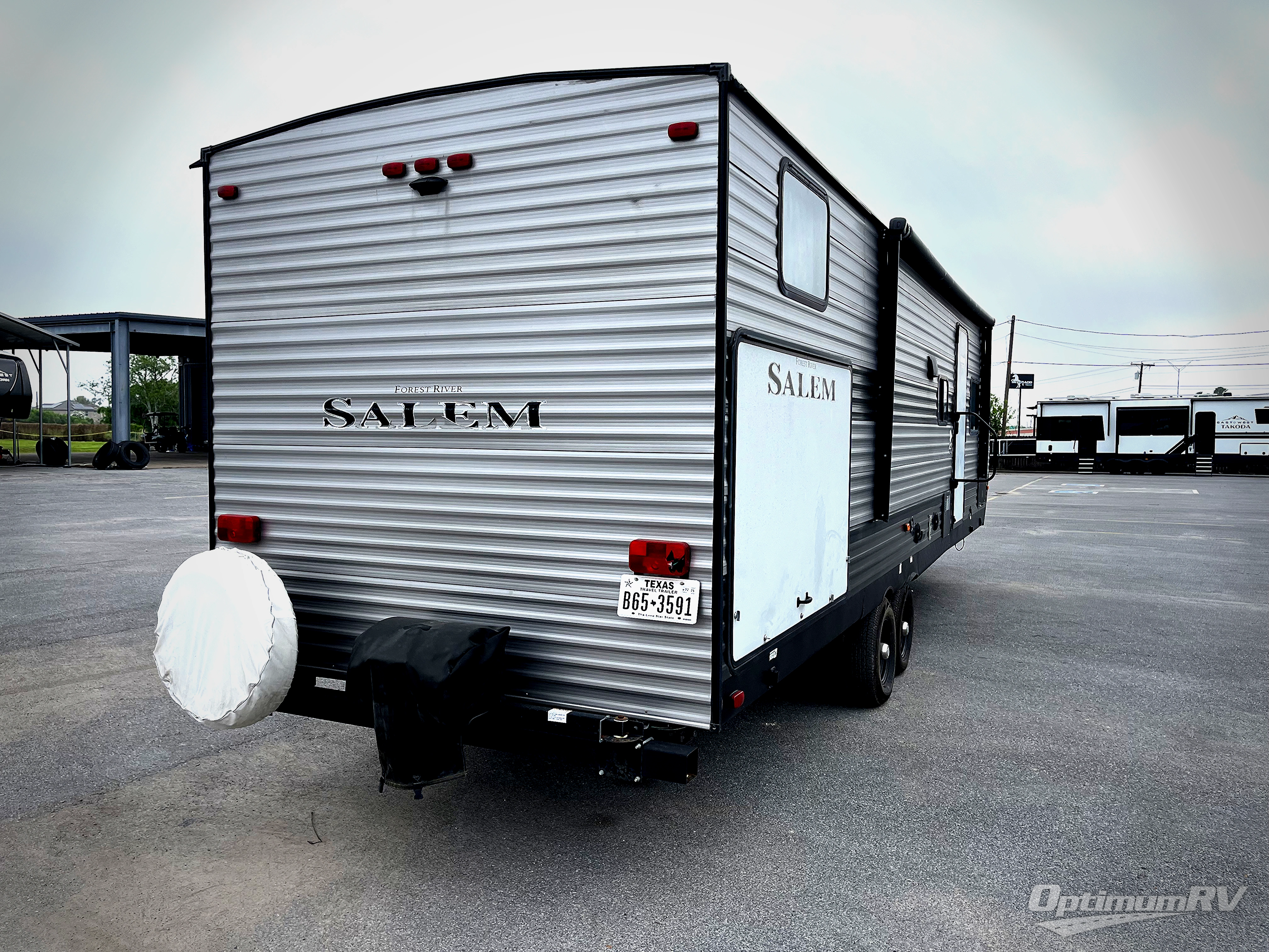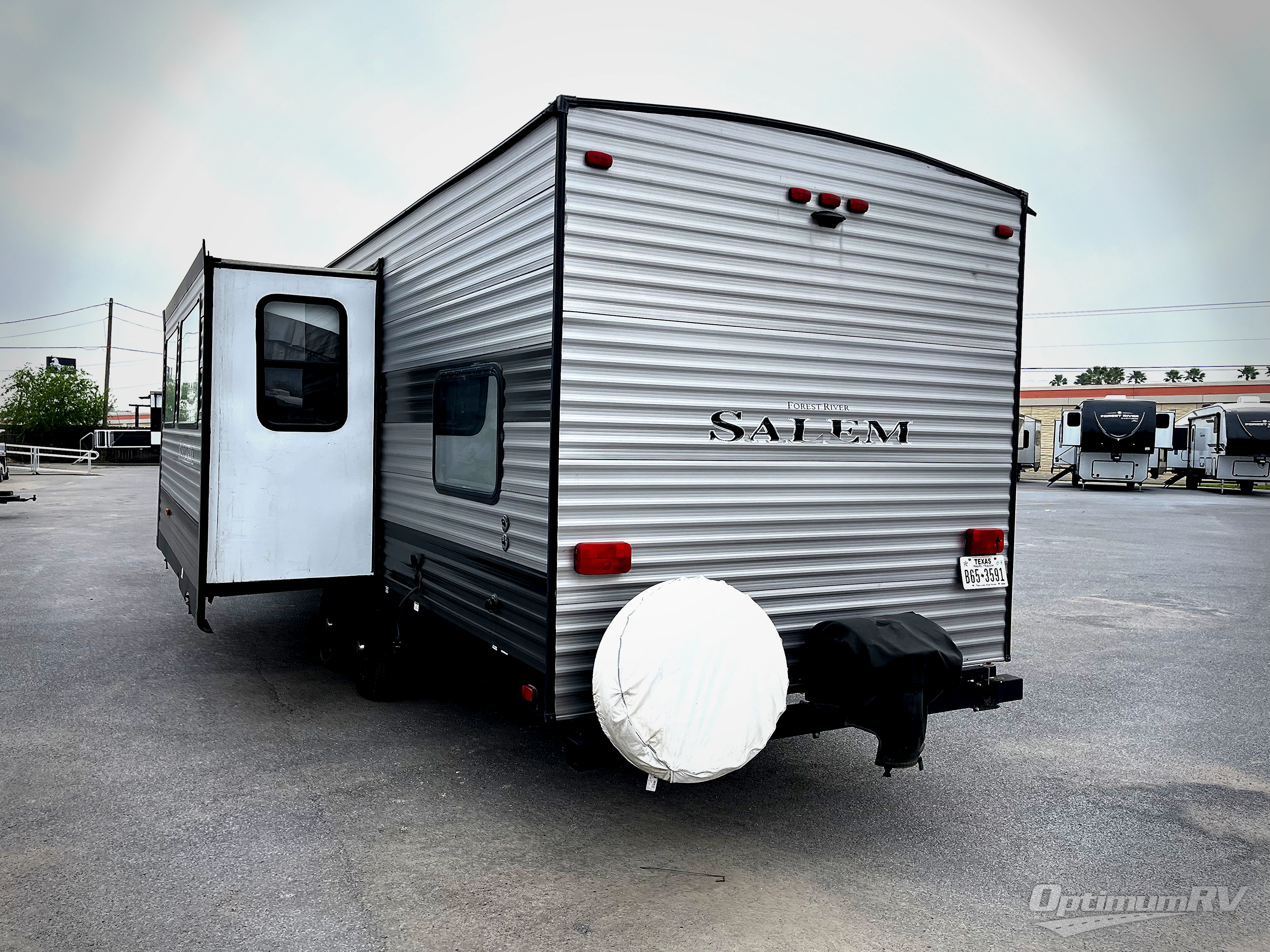 Plan to make plenty of memories with your family when you choose to camp in a Forest River Salem travel trailer! A few key features on the interior include large overhead cabinets in the kitchen, high-definition countertops, and a radius entertainment center. Throughout each model you will also find wood plank lino flooring and a Central Switch Command Center.