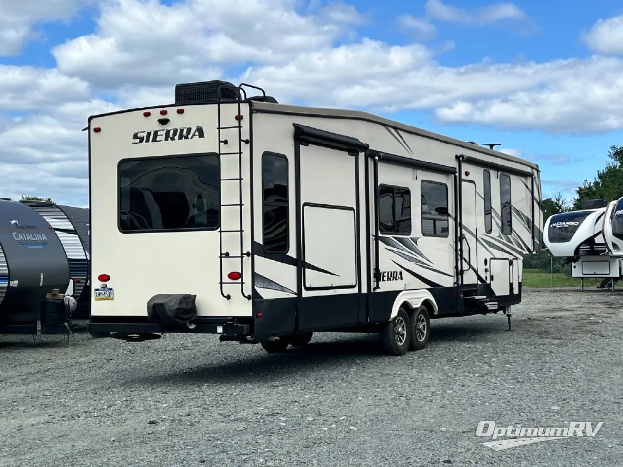 Plan to make plenty of memories with your family while you camp in this Sierra. From the exterior kitchen offering more space to prepare meals including having a microwave, and bumper-mount swivel gas grill, to being about to separate yourself from the combined full kitchen and second living area when relaxing, you will love all the features in this fifth wheel. You will also find two fireplaces, two sets of theater seats, and plenty of storage throughout. The master bedroom and full bathroom offer everything you will need to stay clean and refreshed for shopping in town, entertaining family, and hiking the trails.