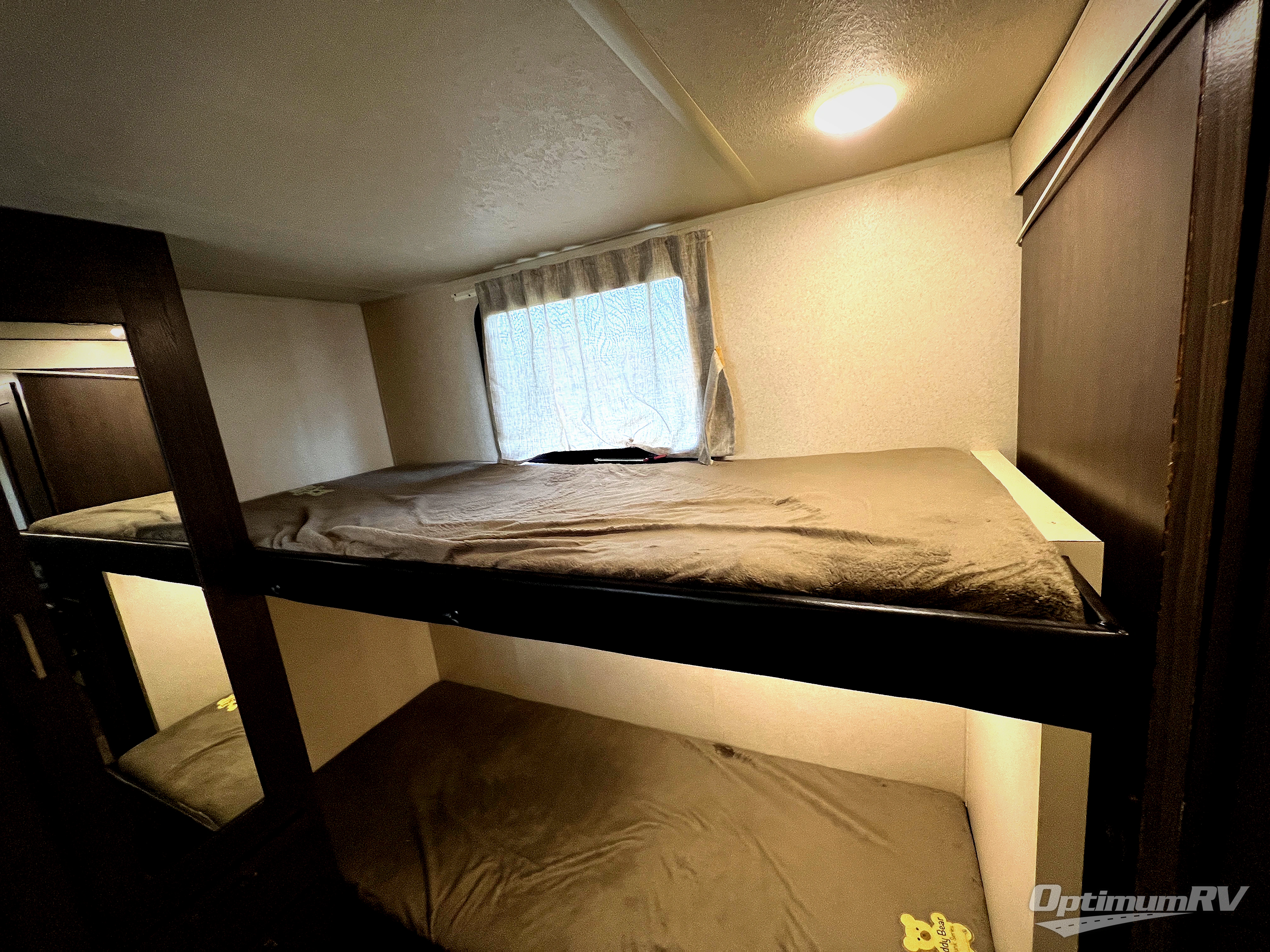 Enjoy camping with the whole family, or even a few extra guests in this Wildwood X-Lite travel trailer by Forest River. Model 282QBXL offers sleeping for nine with the rear private bunkhouse, plus a large slide out for added space inside making it comfortable for everyone! Along the right side of the entertainment center there is a sliding door which closes off the front bedroom. Outside there is a large pass-through storage area for your extra camping gear. You can enjoy the shade from the 16' awning and if you enjoy the ability to cook outdoors then you will want to add the optional camp kitchen!