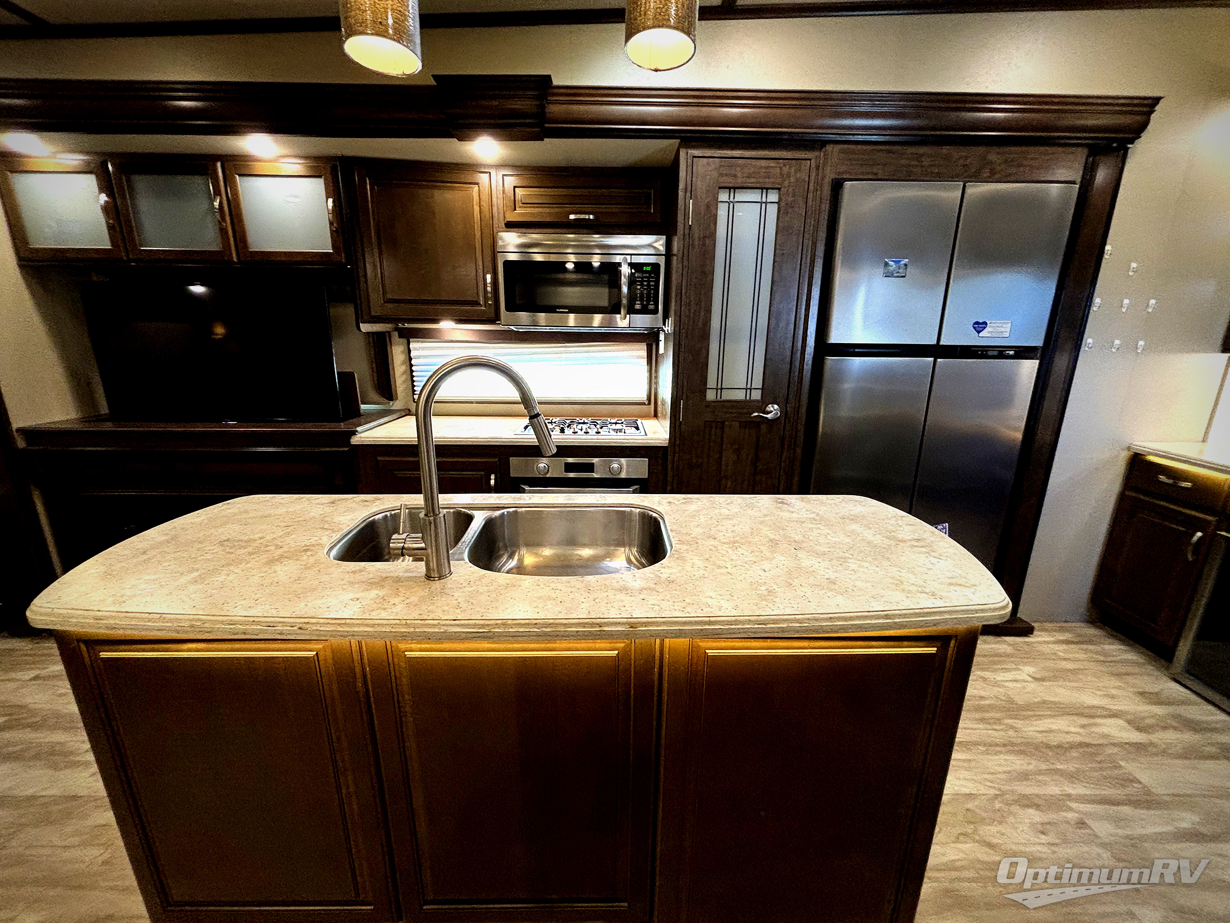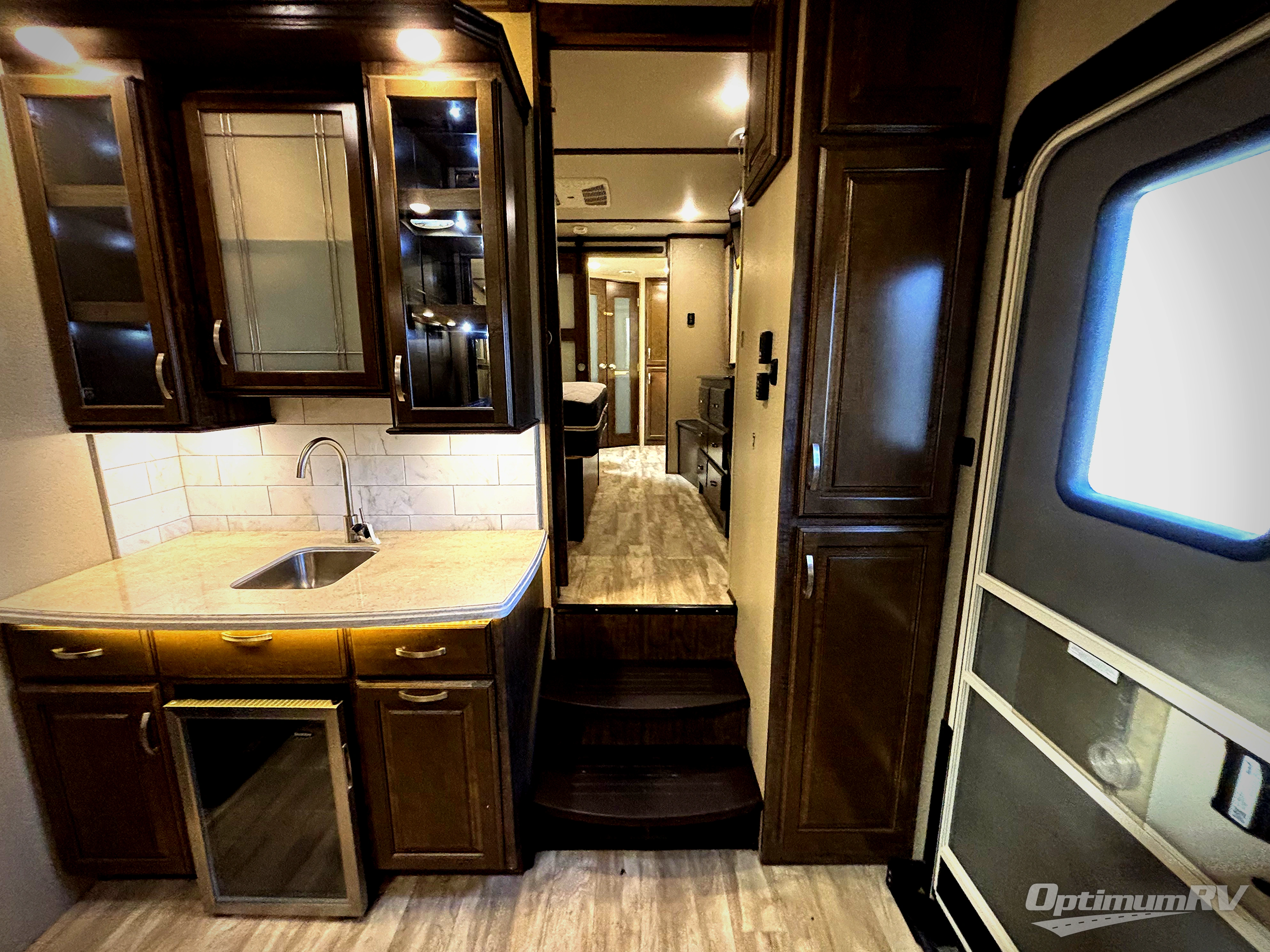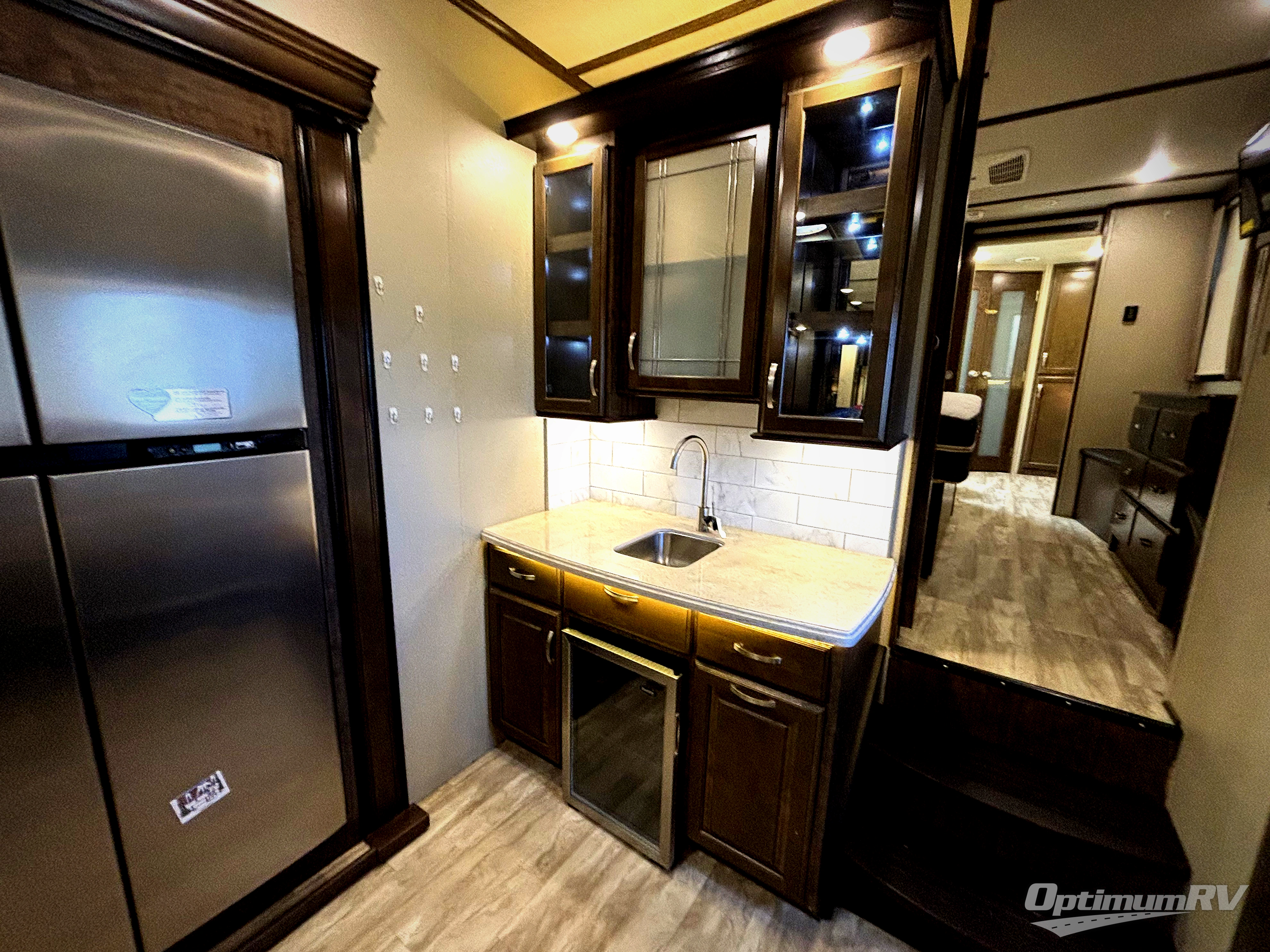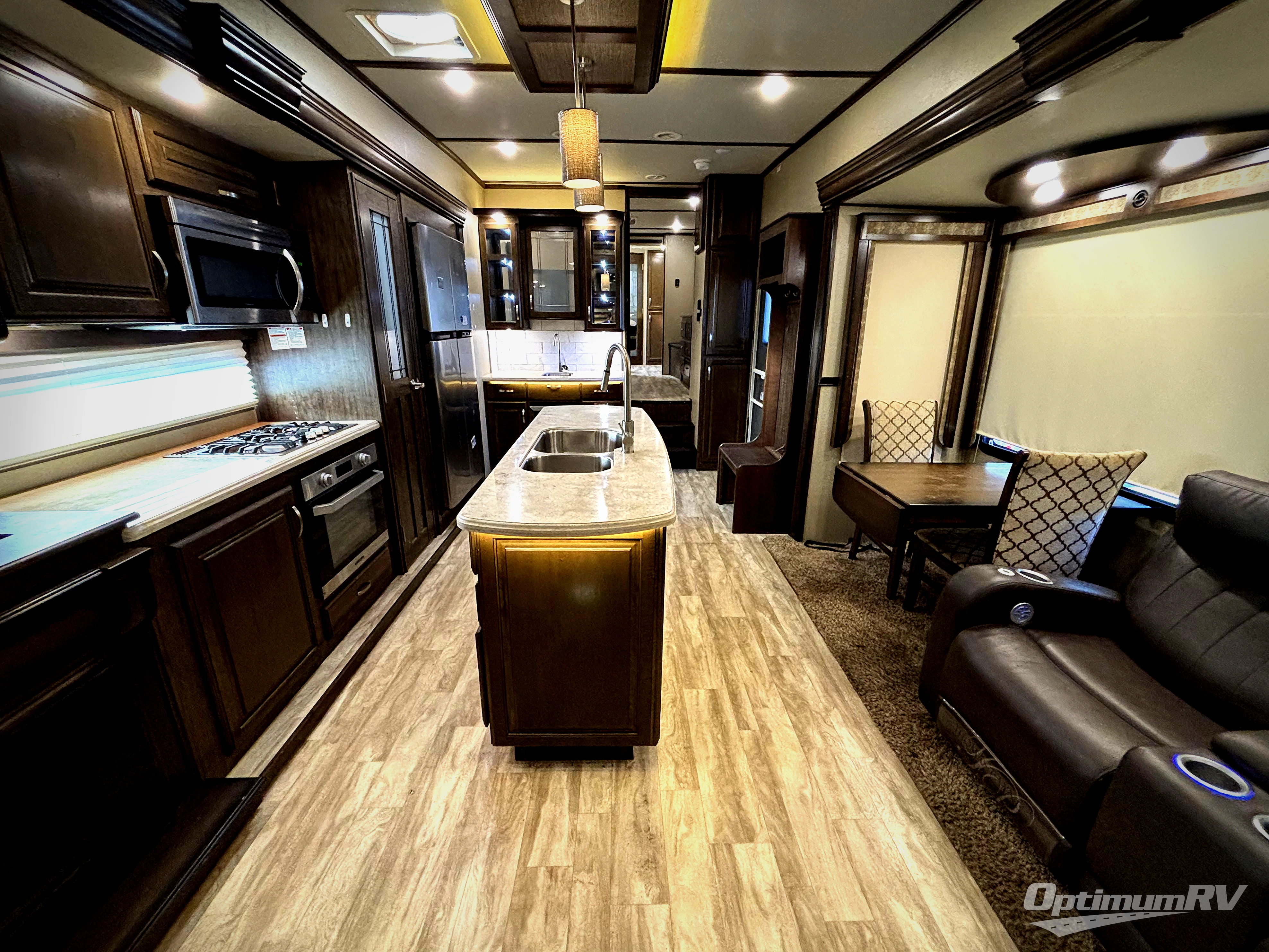 If you are looking for a full-time RV with luxury and comforts like home, this fifth wheel might just be the one. Imagine having a full master bathroom with dual sinks and plenty of storage, plus a washer/dryer if you decided to add those optional appliances to the prepped space. Now start thinking about how you will enjoy the walk-through master bedroom with a flip-top dresser, dual seats, and an LED TV. The cook will have a professional grade stainless steel cooktop, built-in oven and convection microwave to make meals. This model even includes a beverage cooler in the wine bar, dishwasher prep in the kitchen island, a stainless steel 18 cu. ft. four door refrigerator, and a large pantry. You will find plenty of seating to entertain your friends, plus a fireplace to keep everyone cozy on those chilly nights. Come see how this Solitude offers conveniences and comfort throughout, plus plenty of storage for all your things.